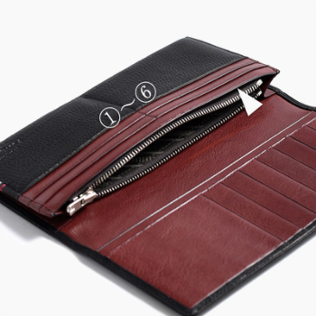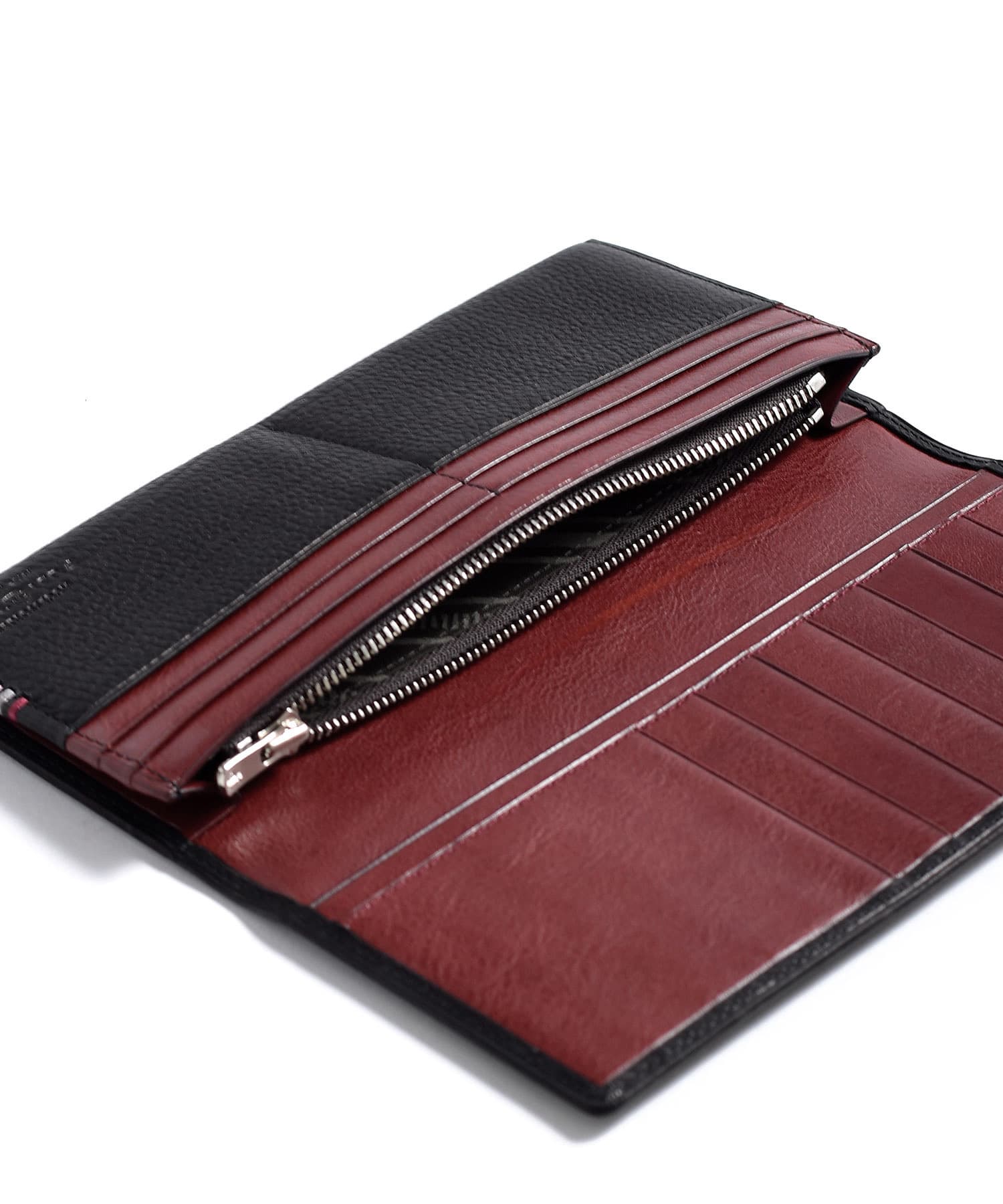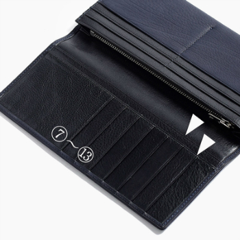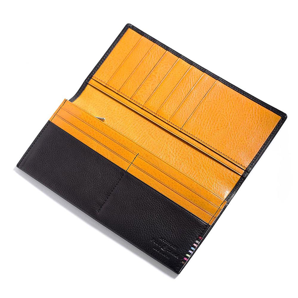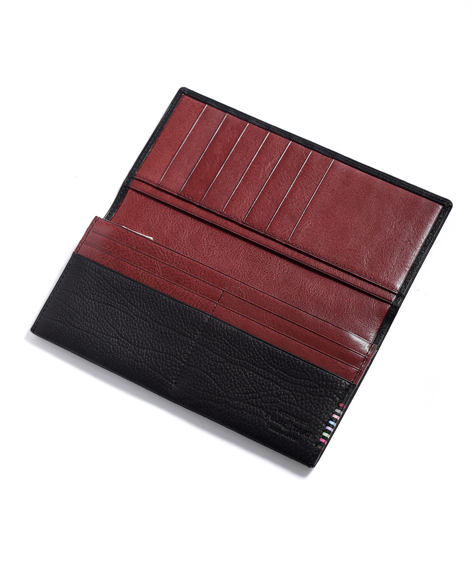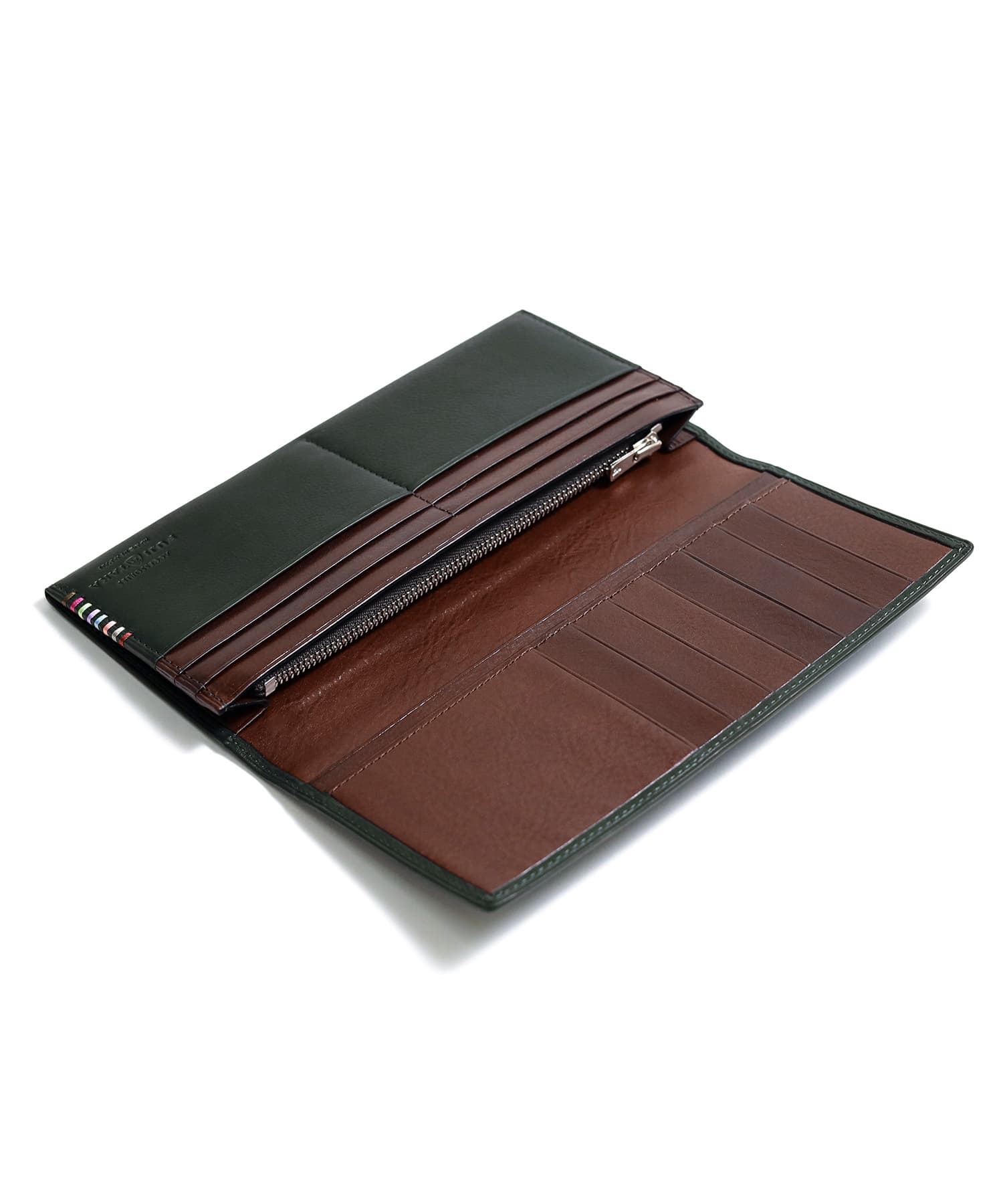 国産カーフ×イタリアンレザーのコンビネーションで仕上げられたFUJITAKA ACCESSORIESのバイカラーデザインが美しい長財布。フジタカのイメージカラーのかがりステッチがデザインのワンポイント。日本独特の優しい色合いがお手元をさりげなく彩ります。