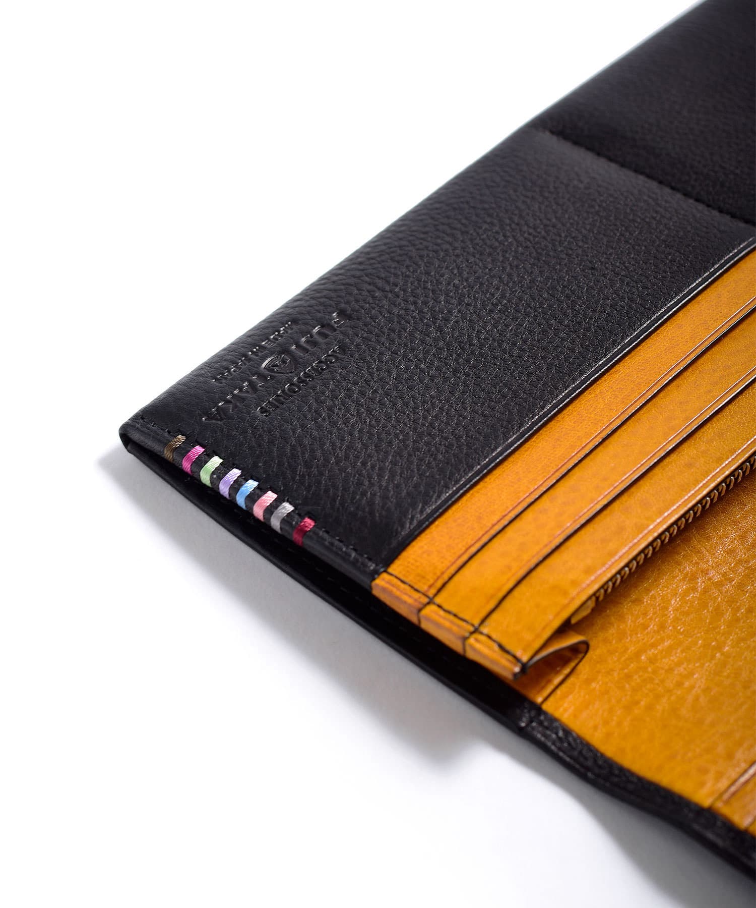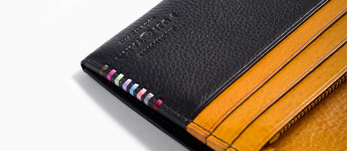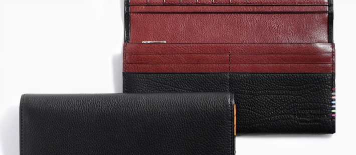 職人が一針一針、丁寧に縫い上げたカラフルなかがりステッチ。日本の”美”を、その絶妙な色合いで奏でる「藤」「桜」「梅」「若竹」「小豆」「銀鼠」「臙脂」「漆喰」「漆黒」などは、日本古来より自然の中にある身近な土・石・草花の色をイメージしたカラーです。主張しすぎない上品な色遣いが、お会計時のお手元をさりげなく彩ります。