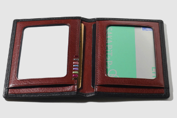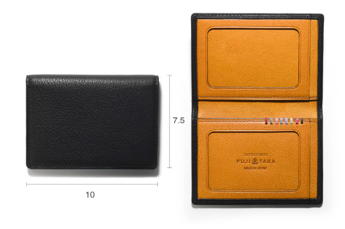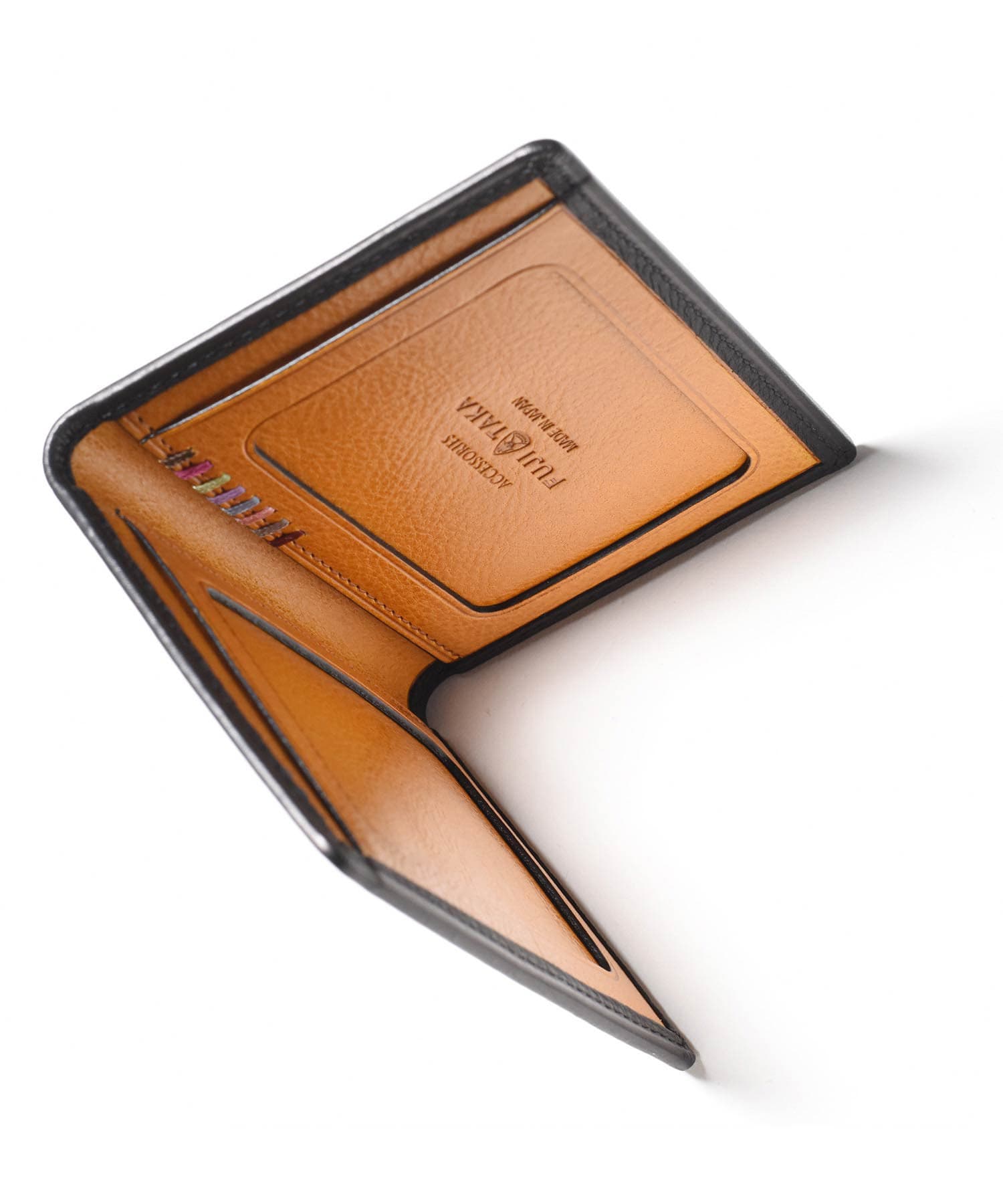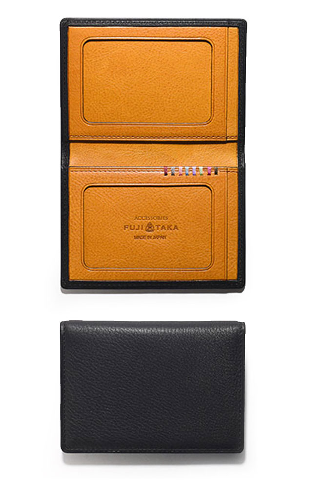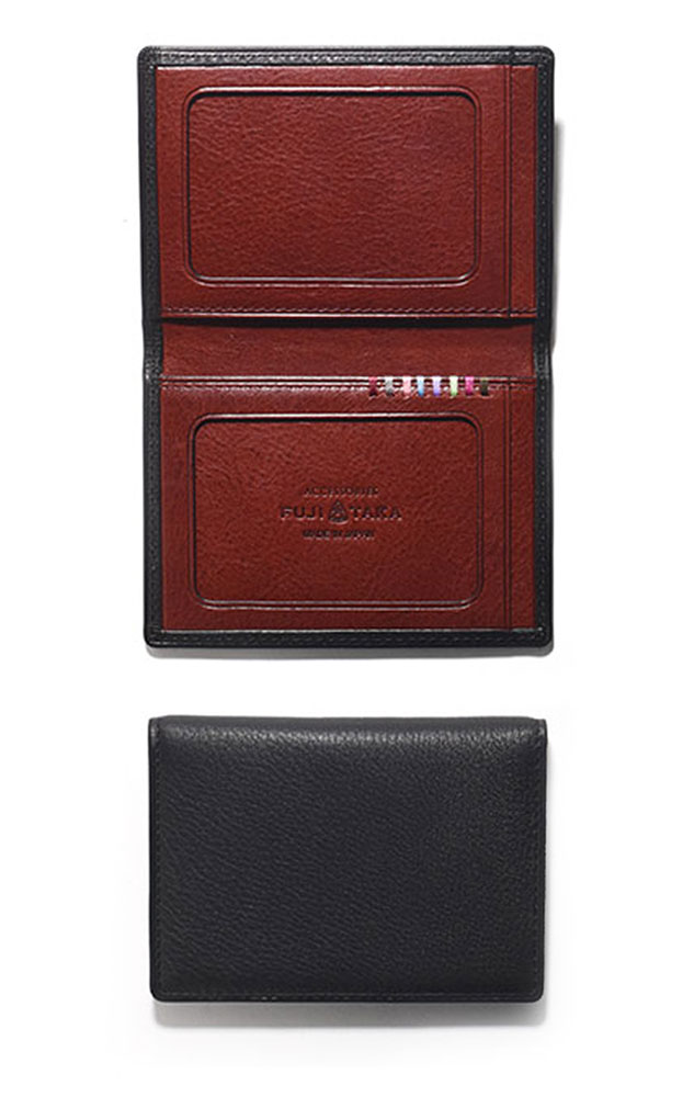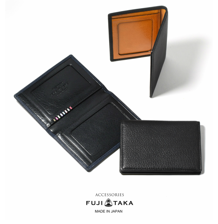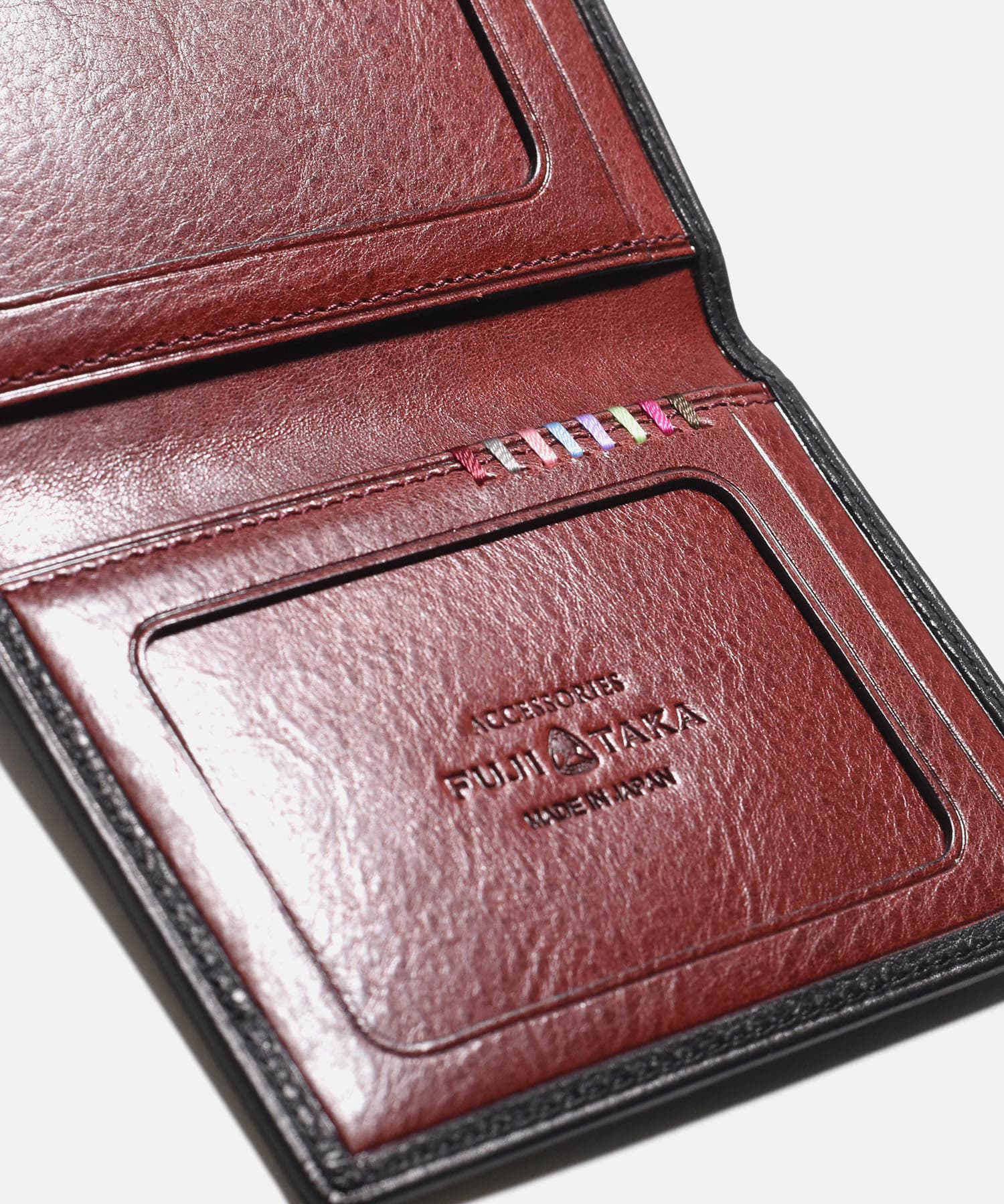 国産カーフ×イタリアンレザーのコンビネーションで仕上げられたフジタカアクセサリーズのバイカラーデザインが美しい2面パスケース。フジタカのイメージカラーをかがりステッチで表現。日本独特の優しい色合いがお手元をさりげなく彩ります。