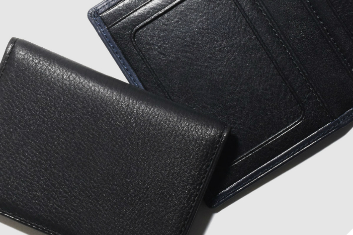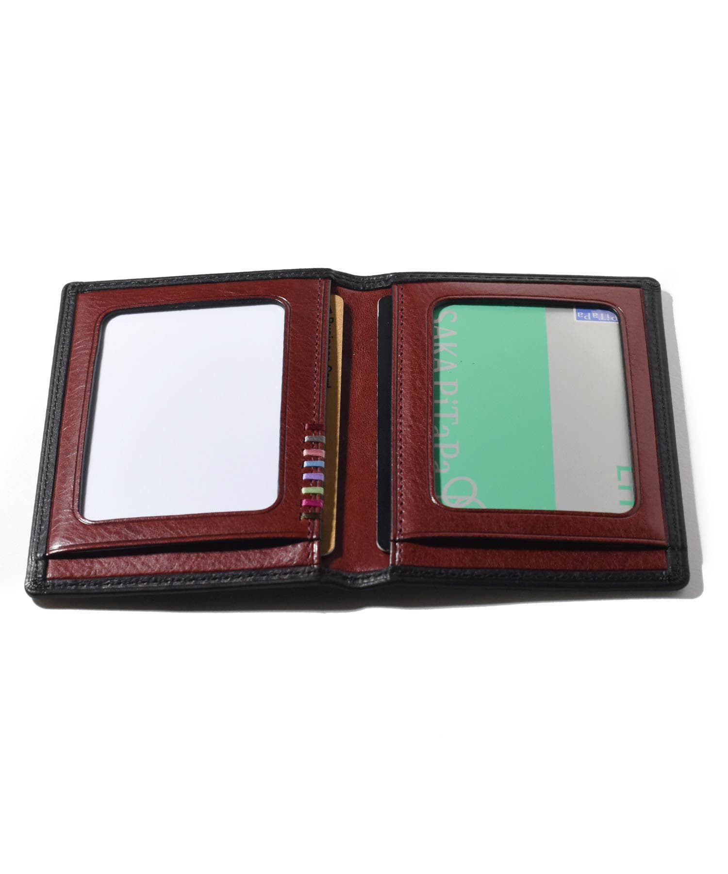 窓付きカードポケットが2つ、カードポケットが2つのシンプルな構成のパスケースです。色目はインクブルー・ワイン・イエロー・グリーンの4色展開です。