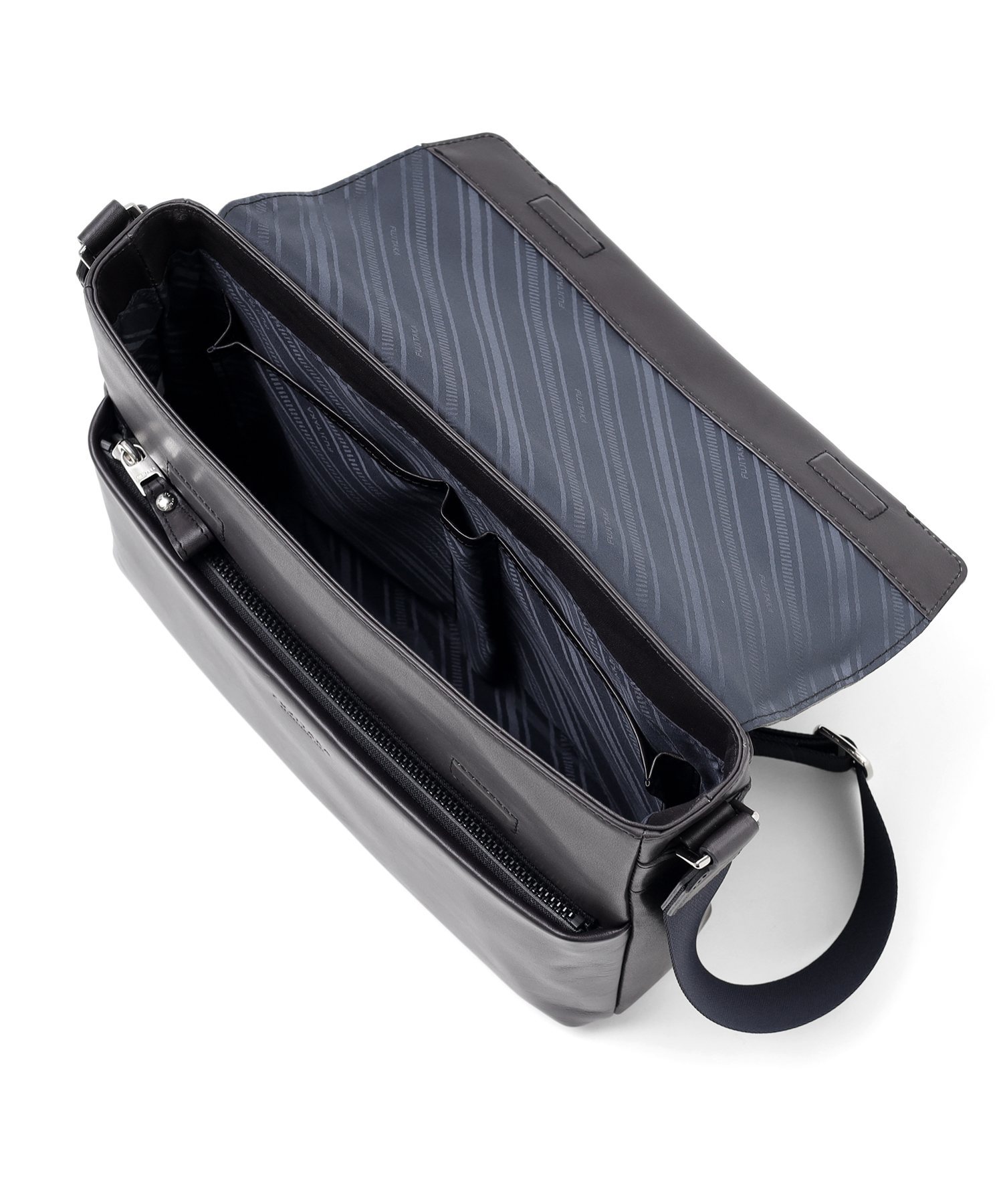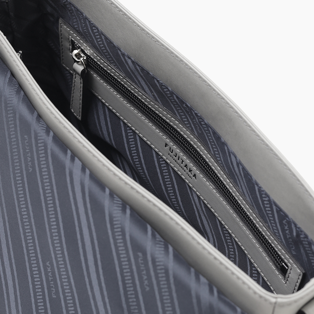 ミニマルなデザインと使いやすさを追求したフジタカのB5サイズのレザーショルダーバッグ。革職人の技術と繊細さが表れる、メイドインジャパンならではの革鞄の良さを感じていただけるよう丁寧に仕立てました。