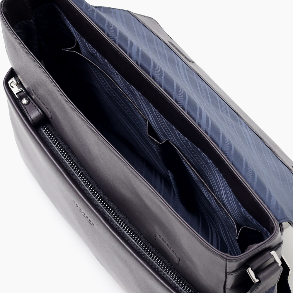 革の厚み・芯材料の選定を吟味することでオールレザーのかぶせ仕様でありながら約720gと軽量に仕上げました。また、かぶせの開閉をせず荷物の出し入れが出来るフロントポケットや、A4クリアファイルを収納できるよう背面ポケットには隠しマグネットを採用するなど収納面にもこだわりました。