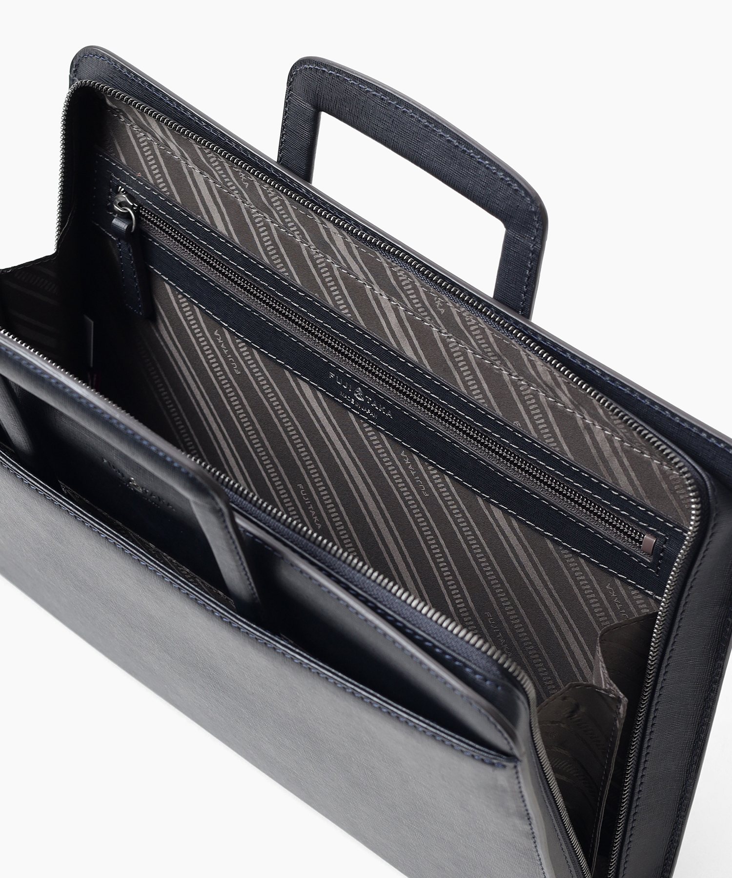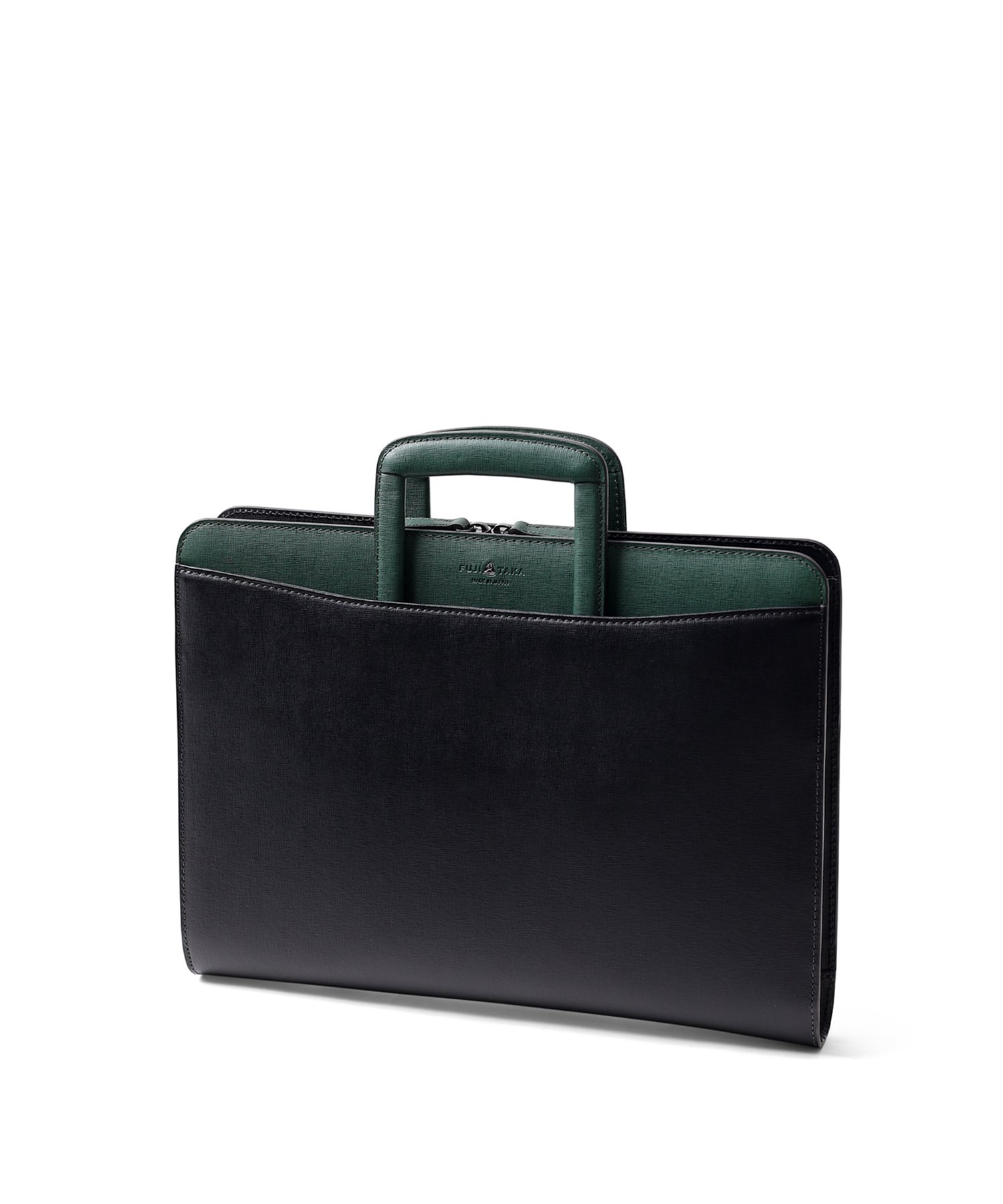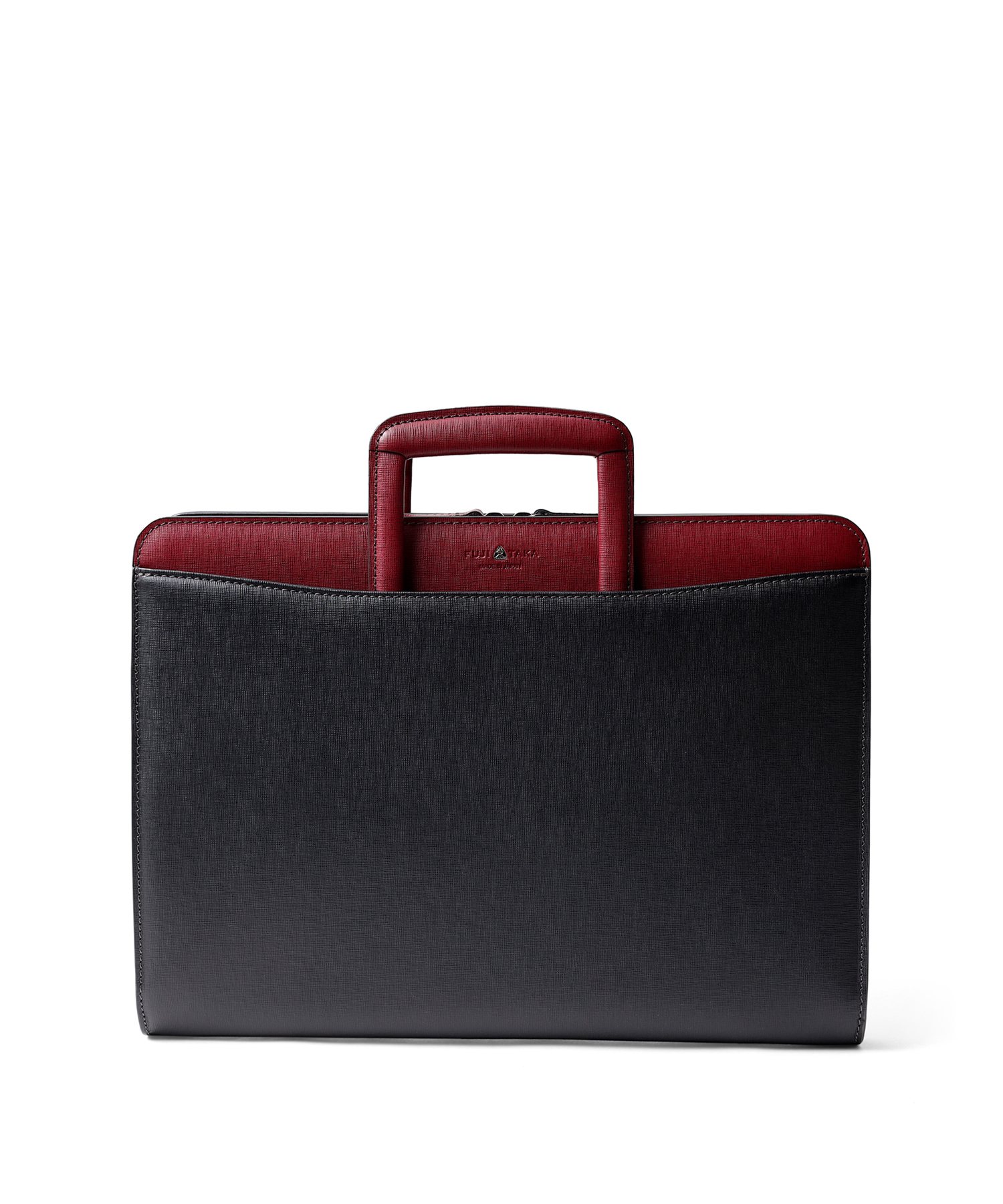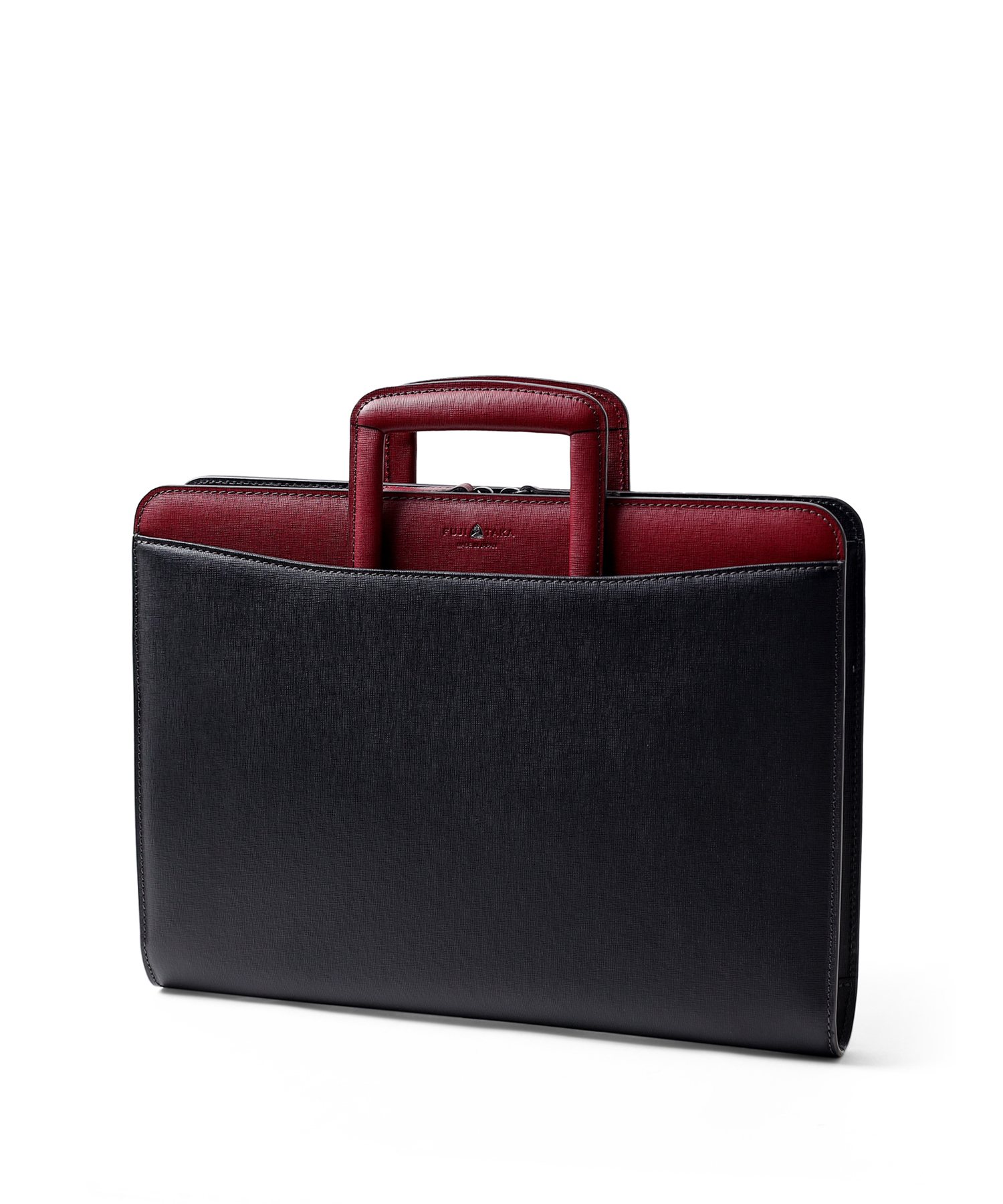 コンパクトなA4サイズビジネスバッグは抜き手タイプとなっており、持ち手を収納すればクラッチバッグとして2WAYでお使いいただけます。縁起が良く、開運のシンボルとして知られる「逆さ富士」。ディアマンシリーズのバッグには、その逆さ富士をイメージした、なめらかな曲線を描くカッティングデザインが取り入れられています。ハードなビジネスバッグの中にも遊び心の見える、フジタカらしい鞄です。