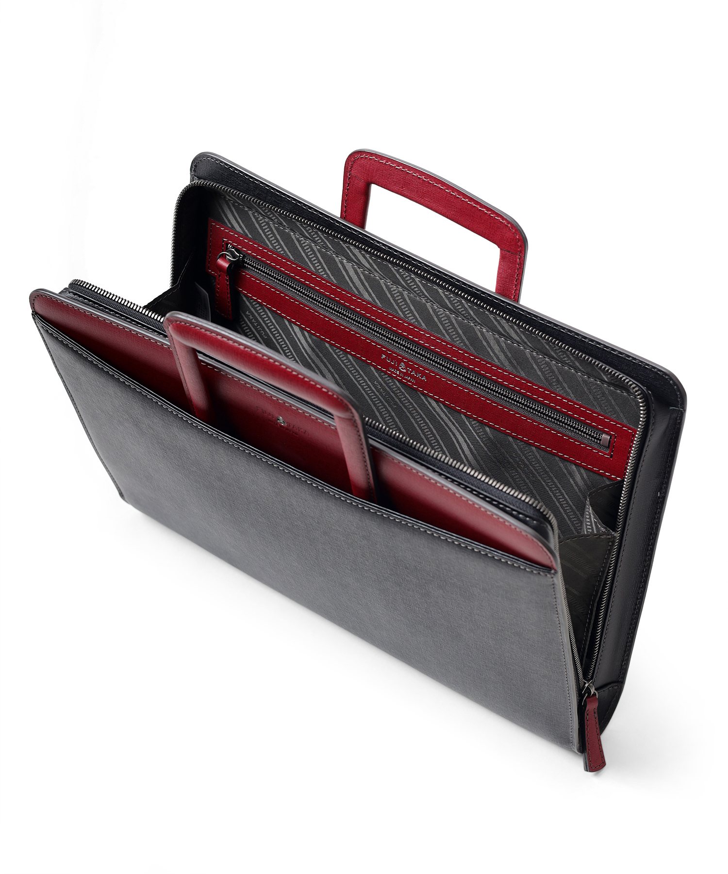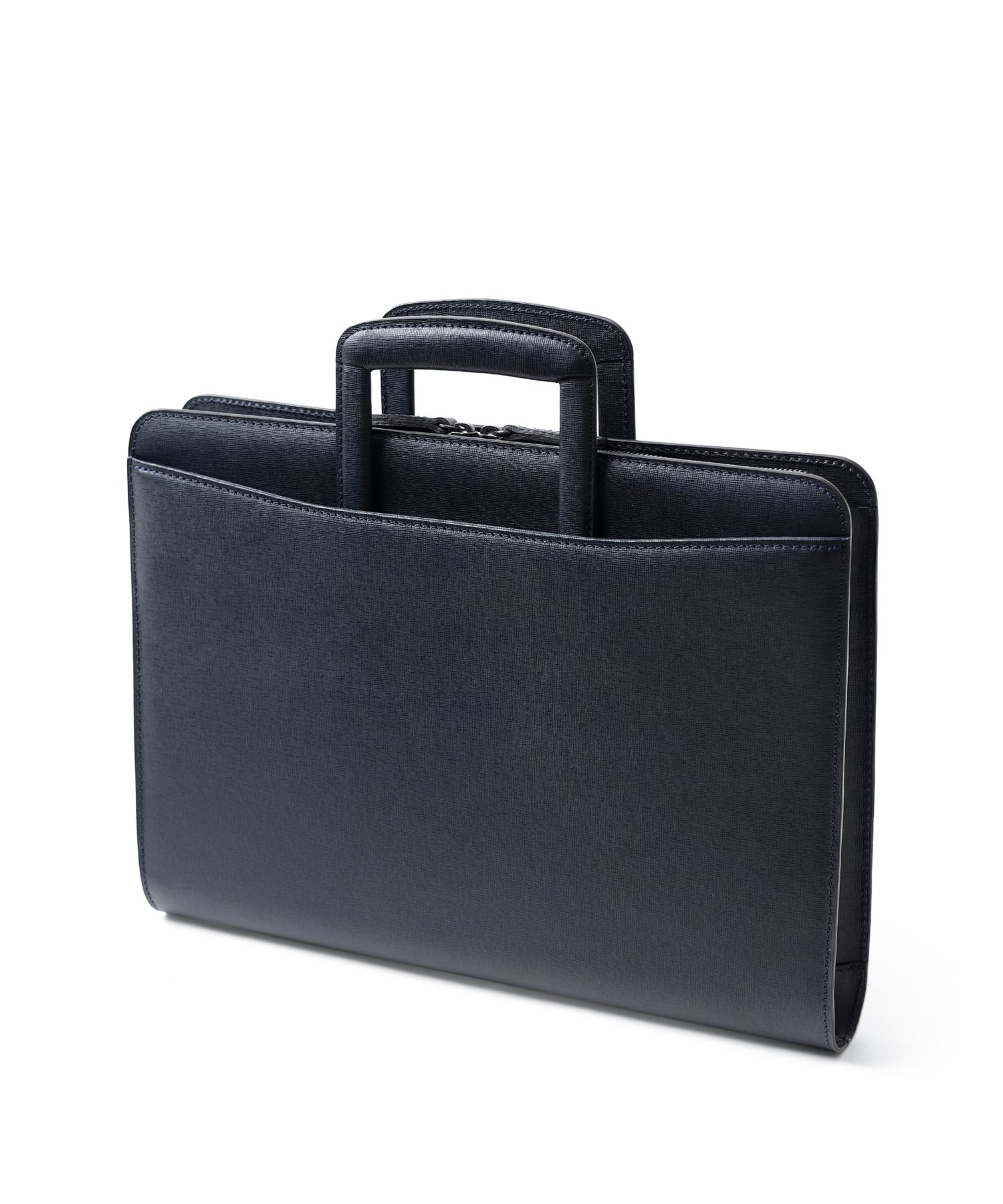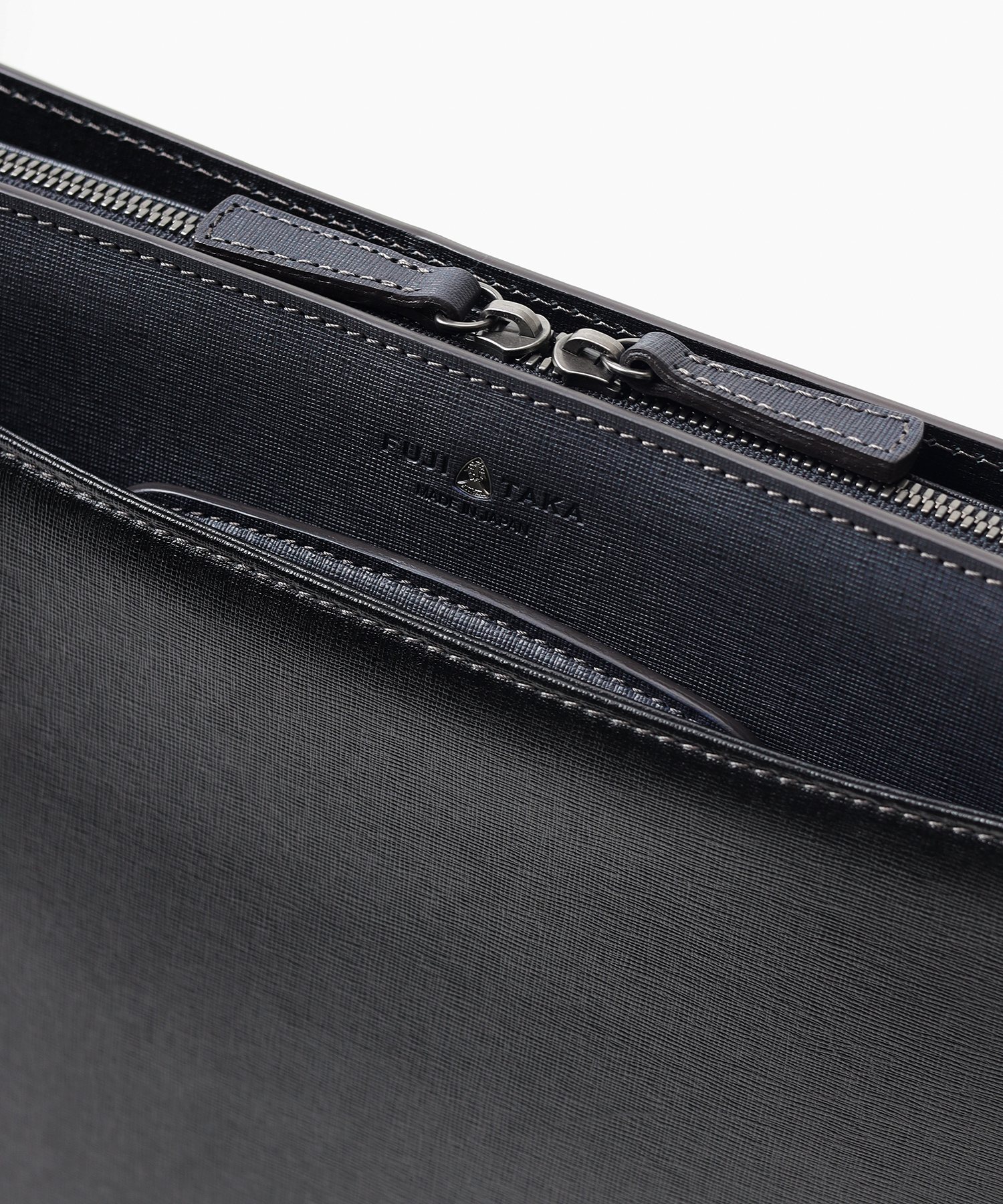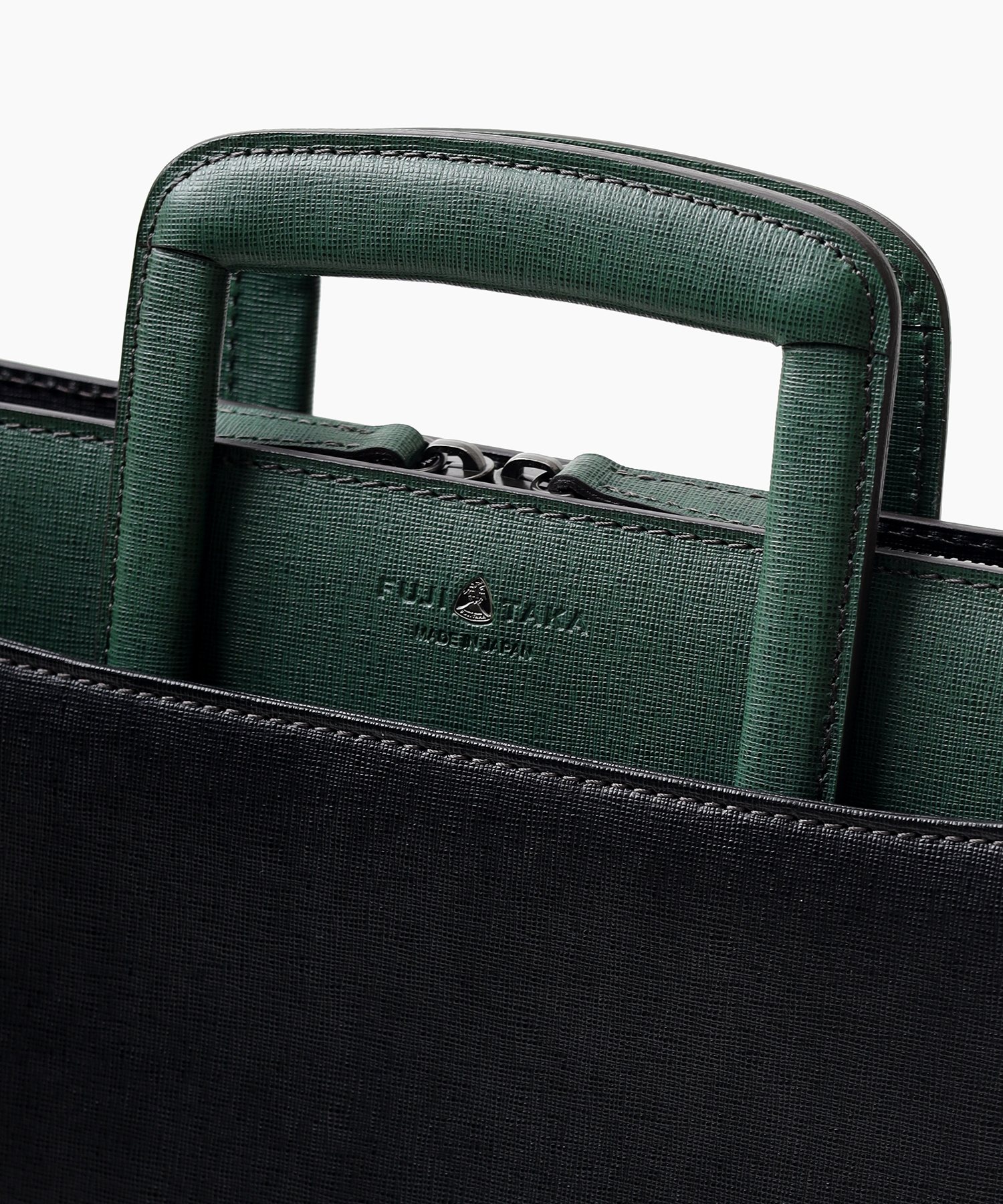 コンパクトなA4サイズビジネスバッグは抜き手タイプとなっており、持ち手を収納すればクラッチバッグとして2WAYでお使いいただけます。縁起が良く、開運のシンボルとして知られる「逆さ富士」。ディアマンシリーズのバッグには、その逆さ富士をイメージした、なめらかな曲線を描くカッティングデザインが取り入れられています。ハードなビジネスバッグの中にも遊び心の見える、フジタカらしい鞄です。