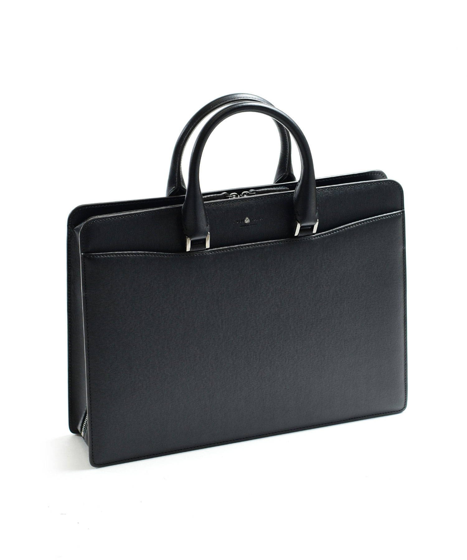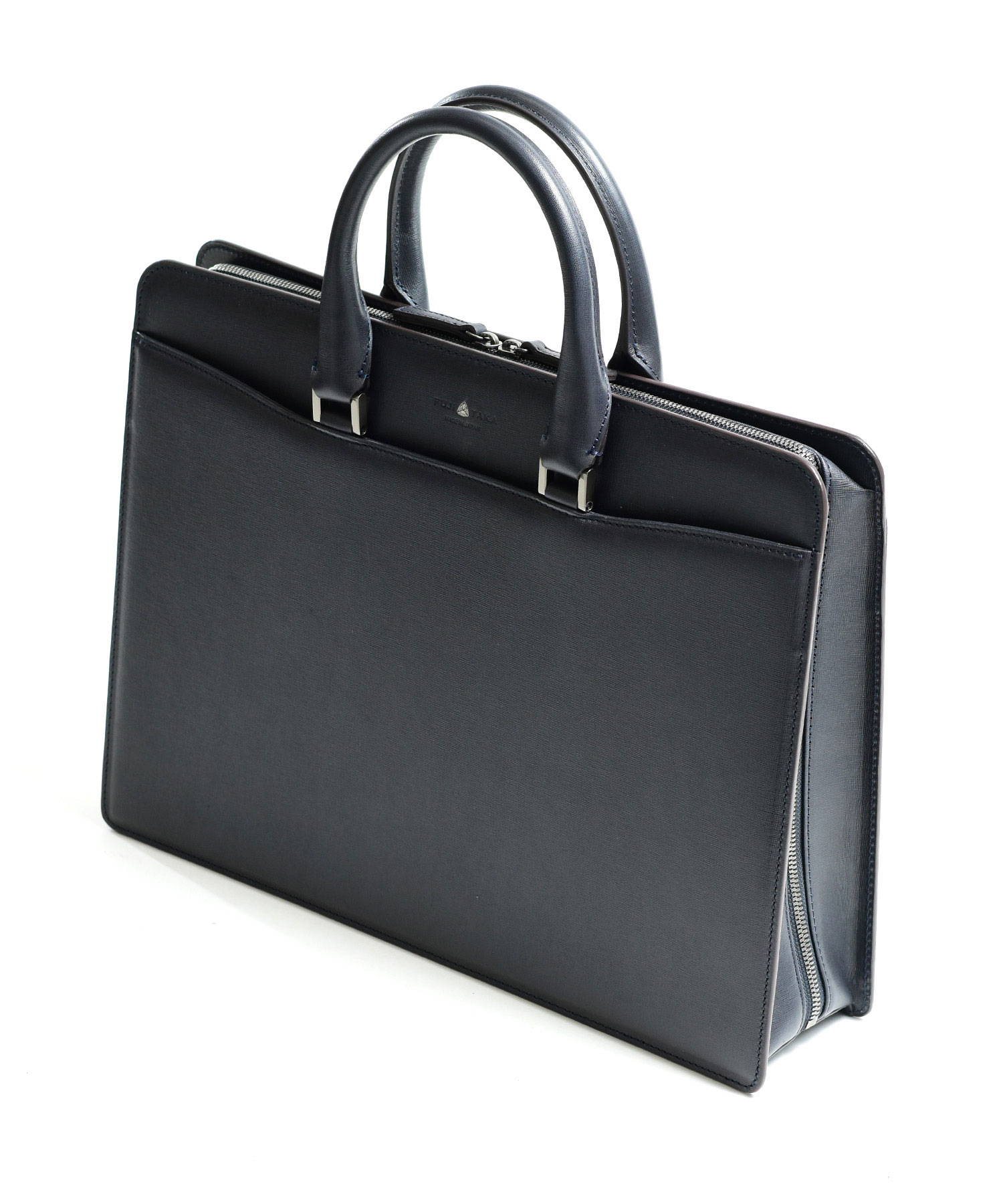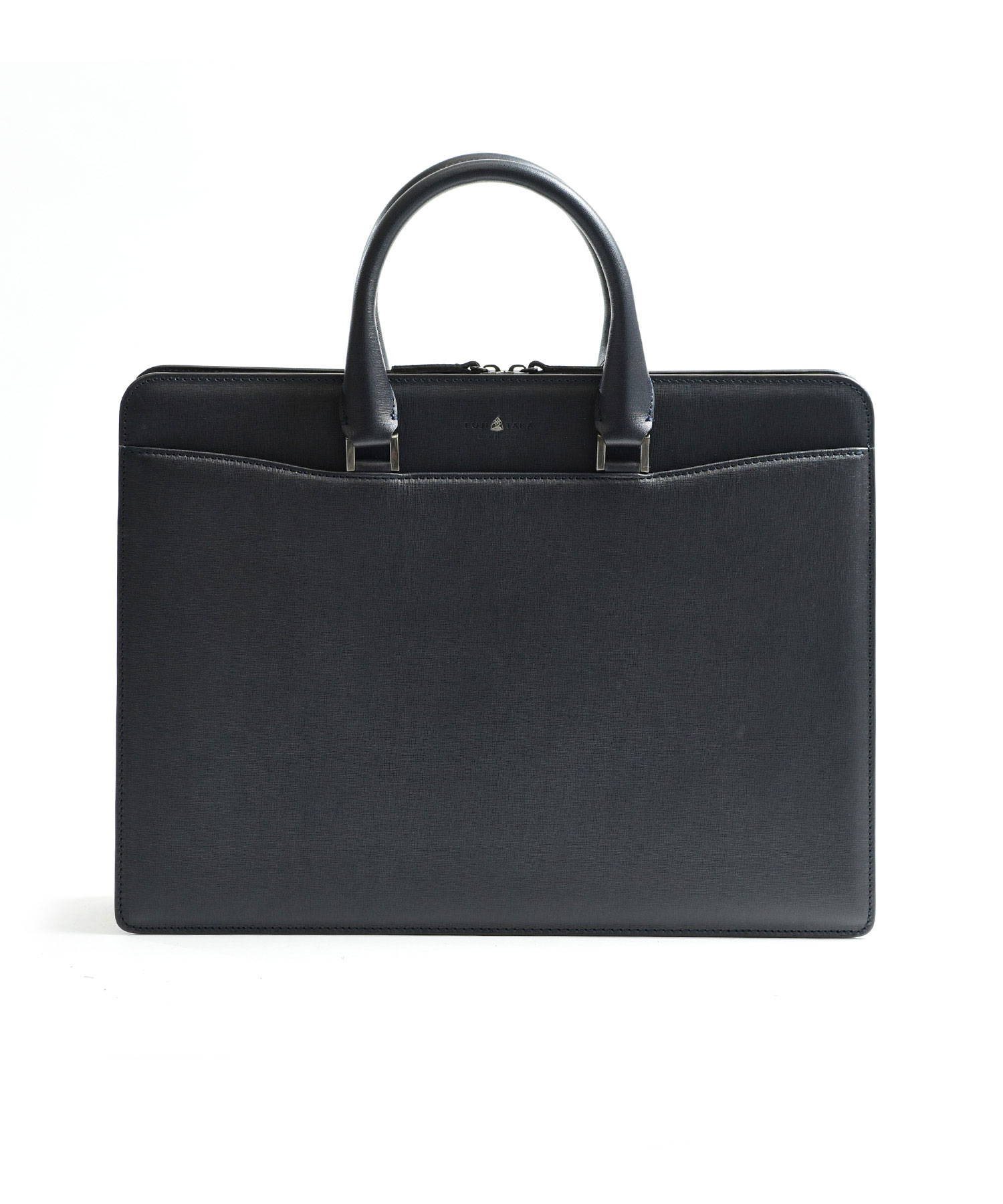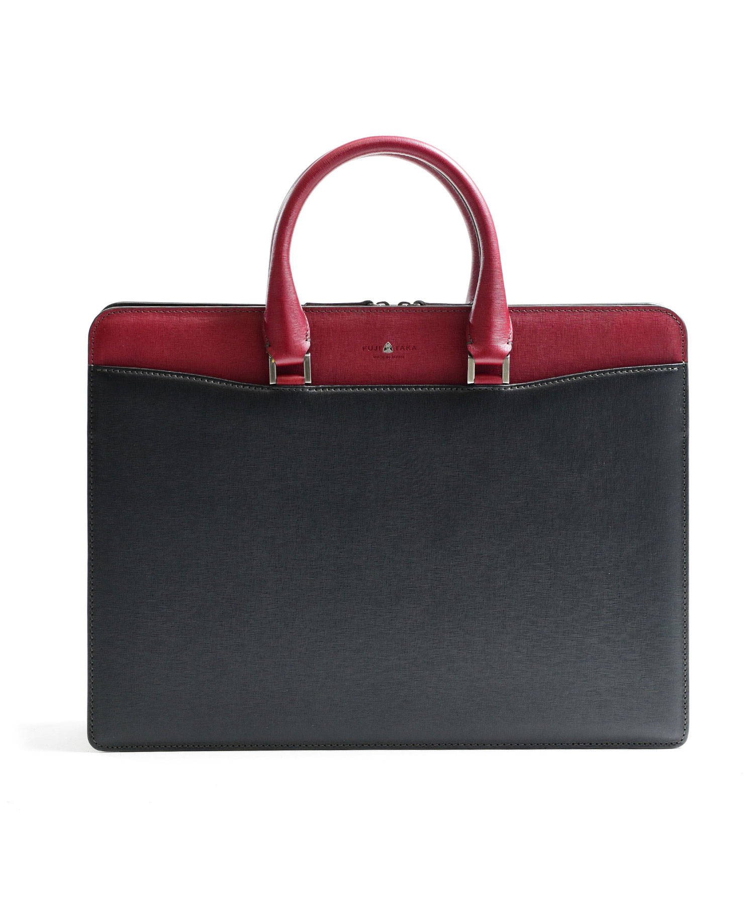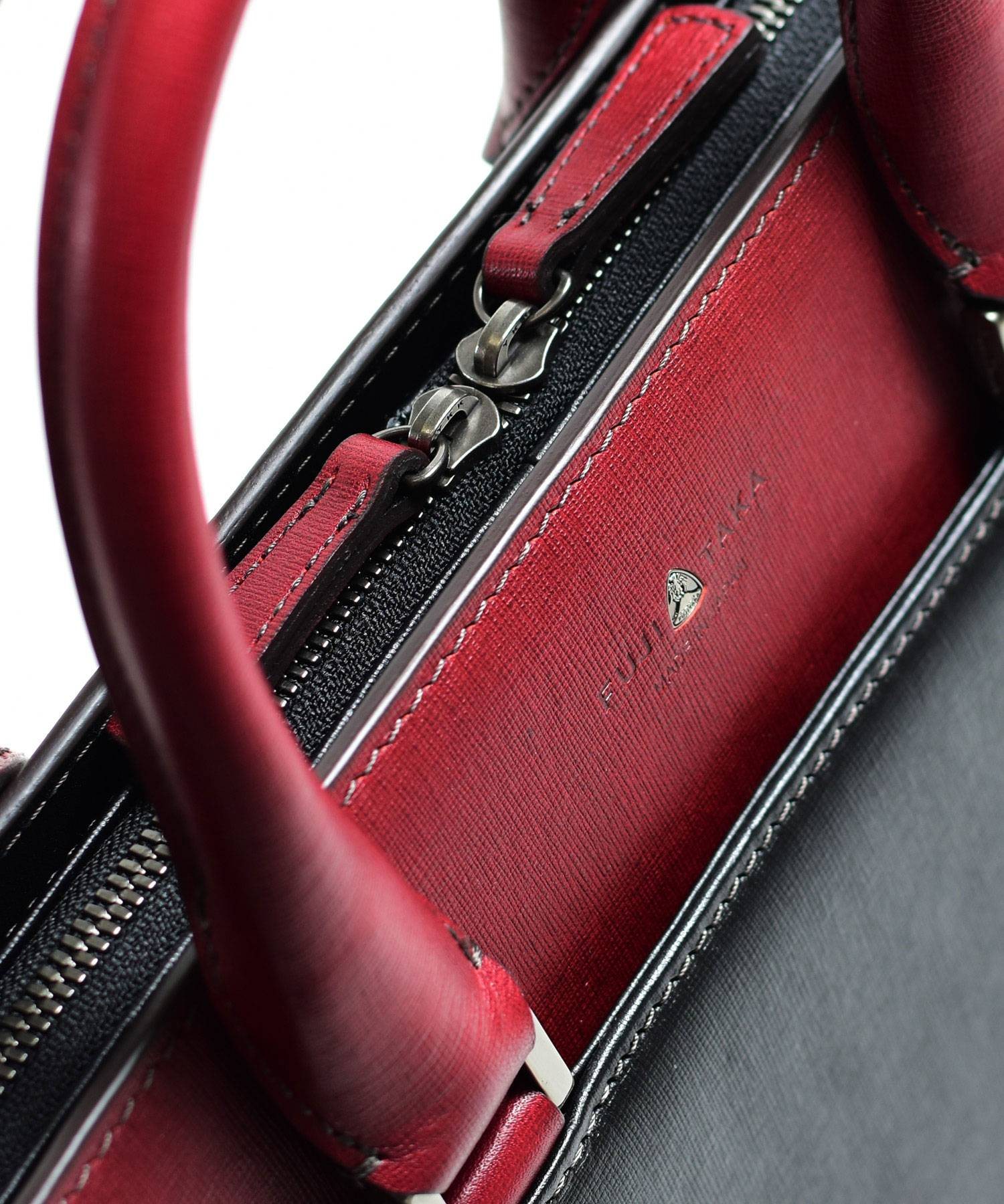 "逆さ富士"をイメージしたカッティングデザインを取り入れた、フジタカのレザービジネスバッグ。A4サイズの書類に対応しております。素材から生産まで国産にこだわり、金具のデティールや革の裁断面の仕上げなど細部まで職人技が光ります。フォーマルなシーンやスーツスタイルに負けない重厚感と品格あるハードタイプのバッグです。