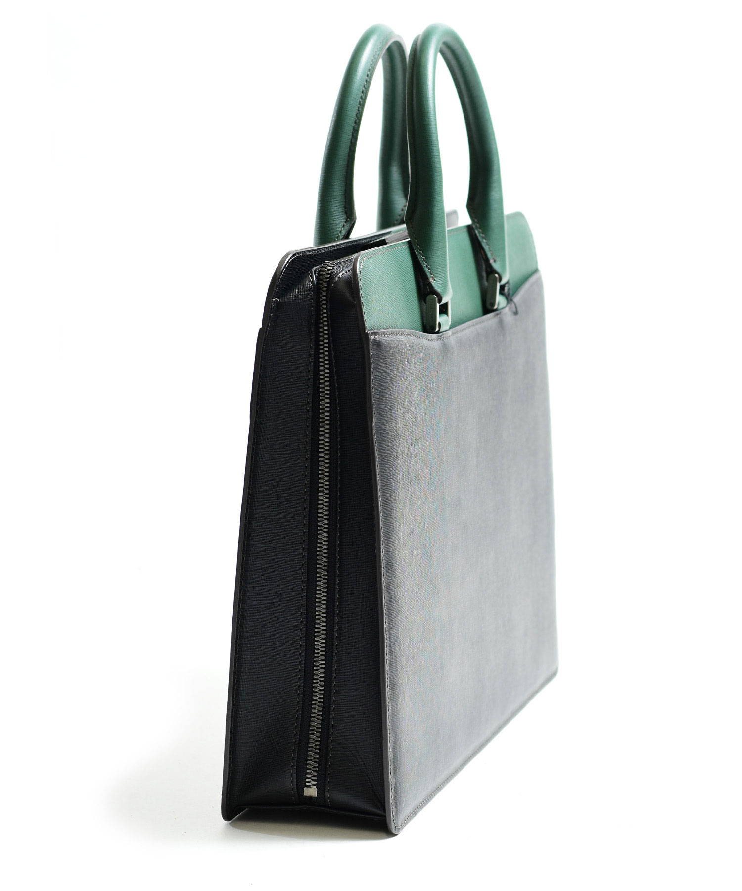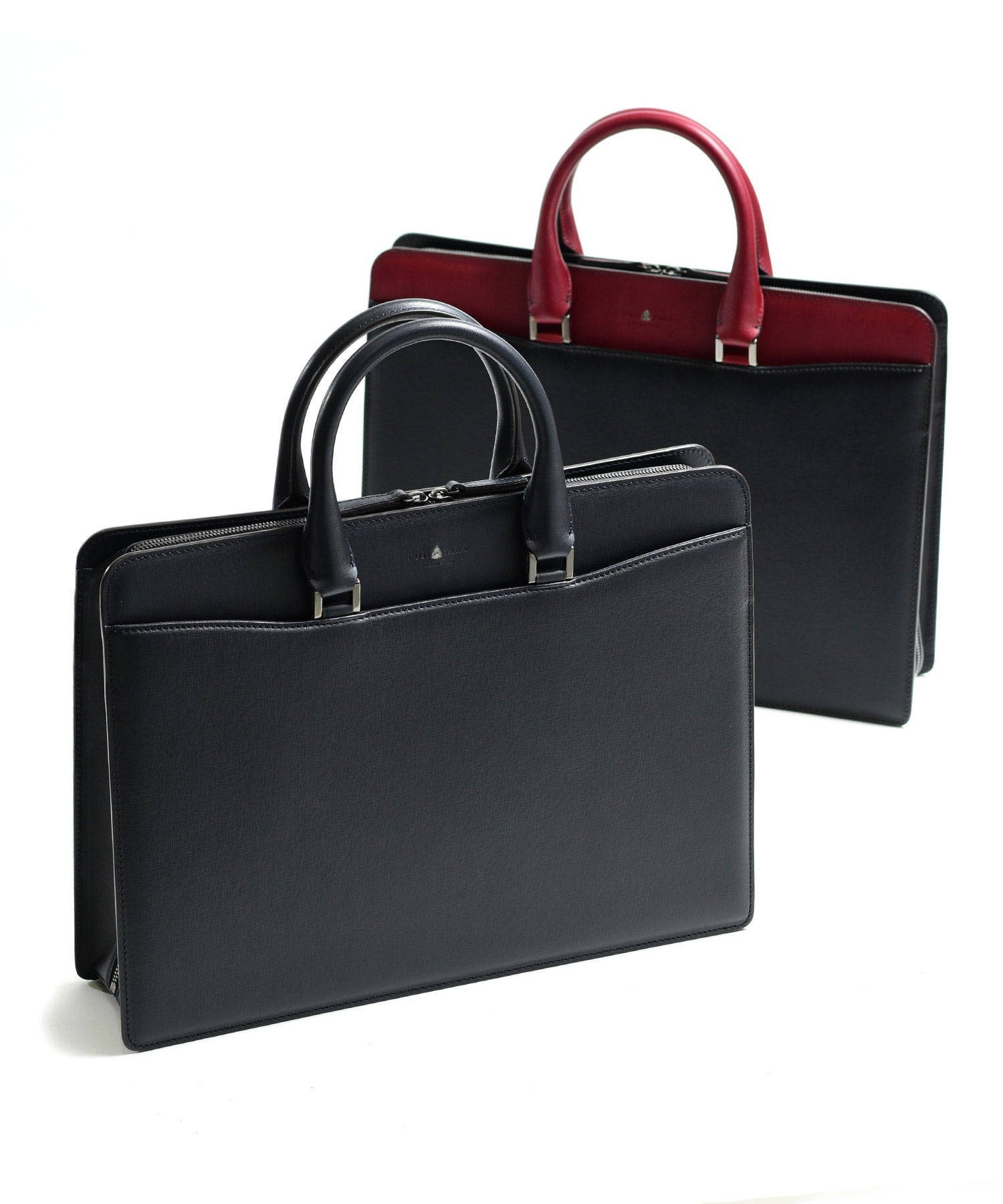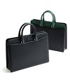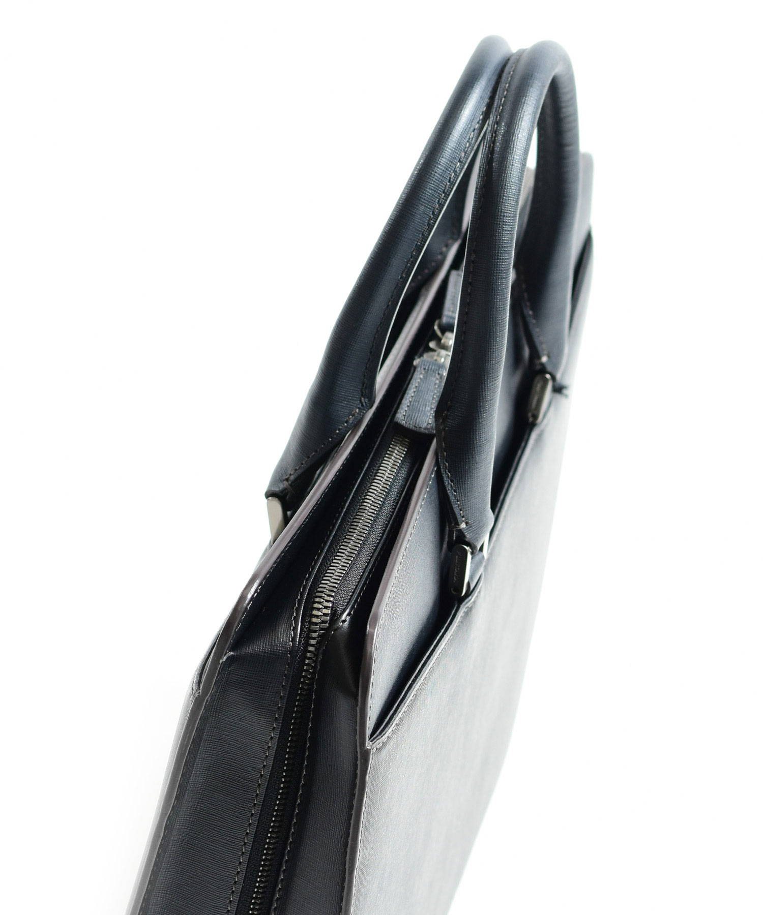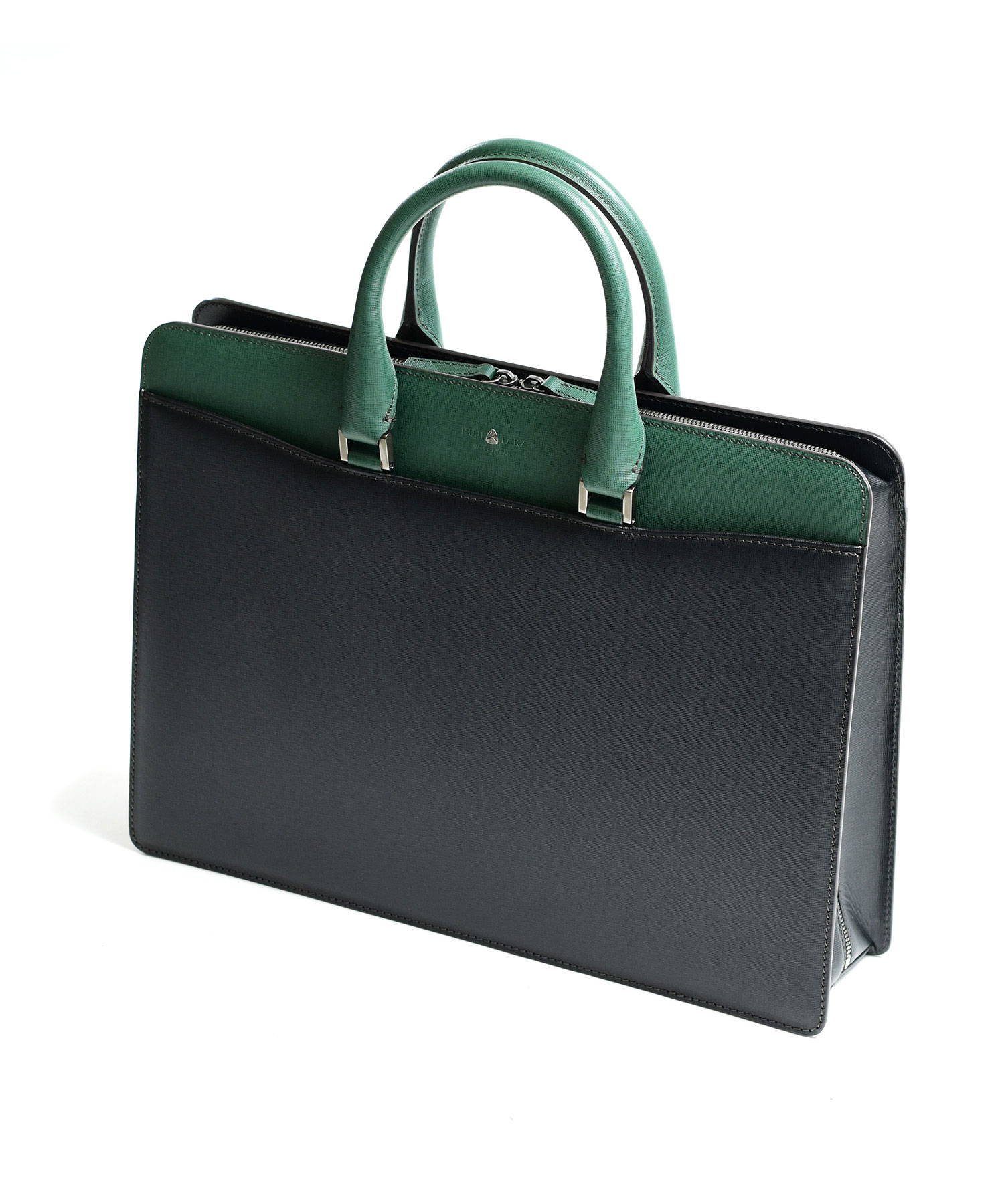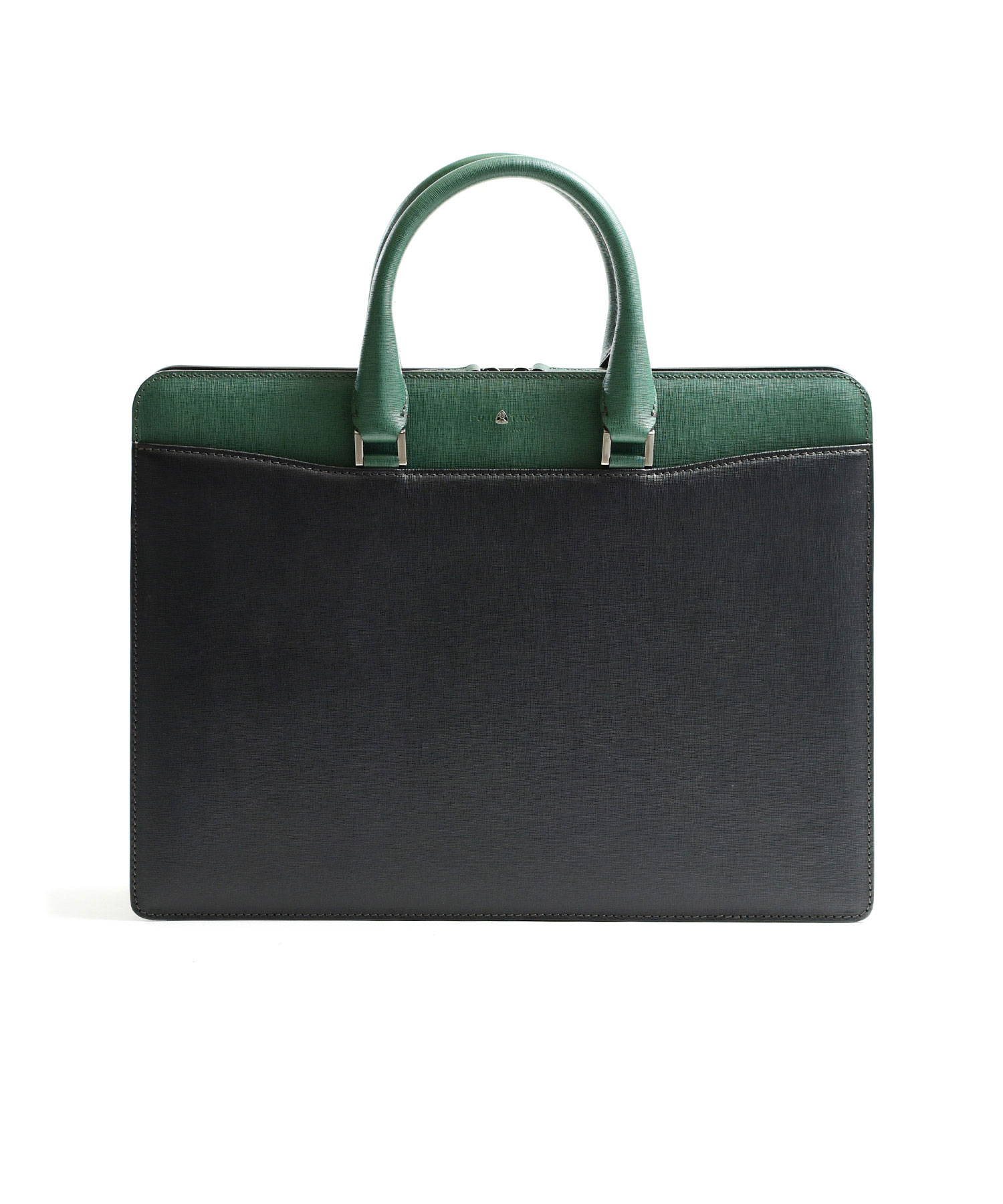 "逆さ富士"をイメージしたカッティングデザインを取り入れた、フジタカのレザービジネスバッグ。A4サイズの書類に対応しております。素材から生産まで国産にこだわり、金具のデティールや革の裁断面の仕上げなど細部まで職人技が光ります。フォーマルなシーンやスーツスタイルに負けない重厚感と品格あるハードタイプのバッグです。