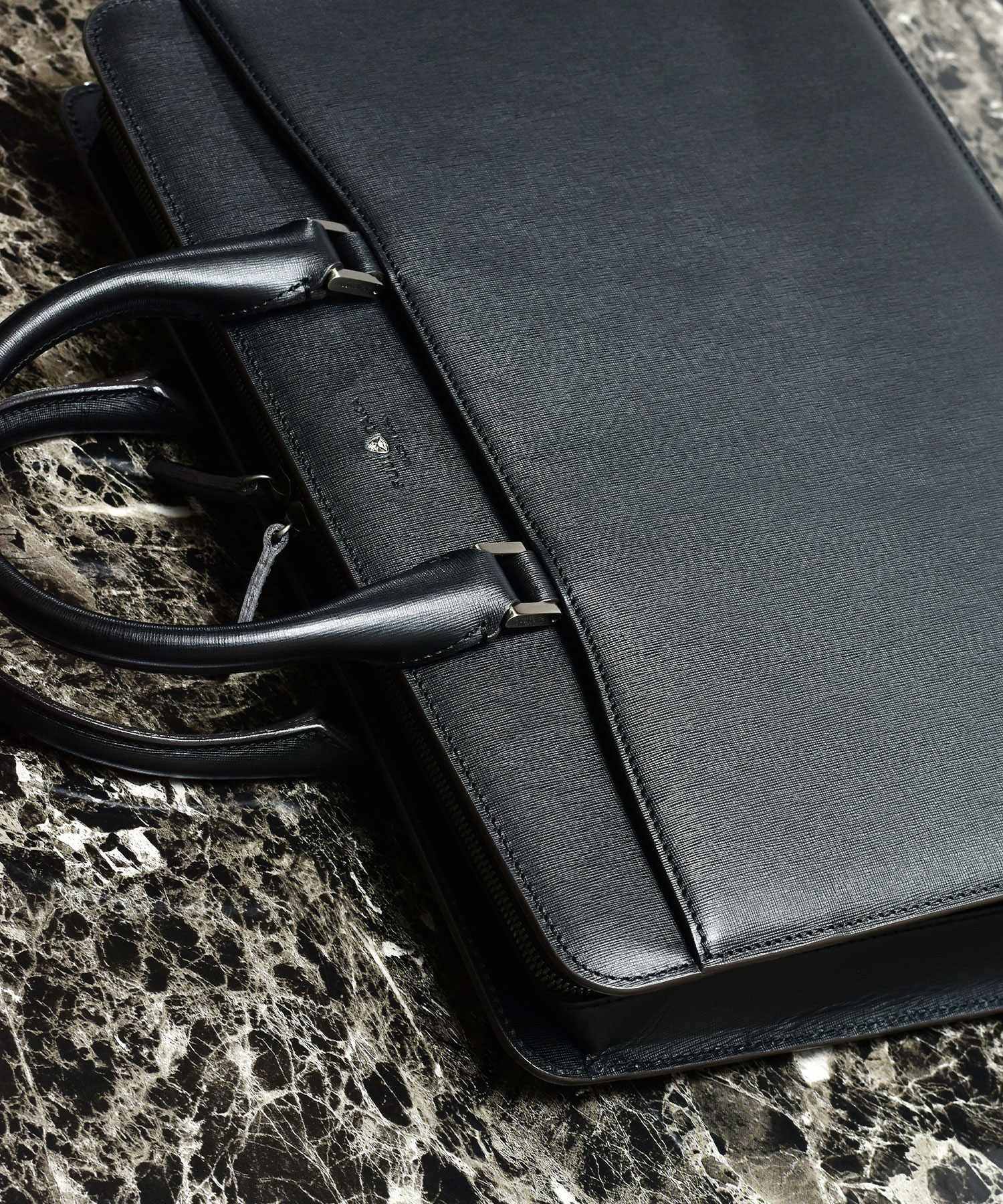メイン素材として使用されているのは、このシリーズのためにオリジナルで開発された純国産レザー。国内の上質な原皮を厳選し、国産鞣しの最高峰といわれるタンナーでじっくりと作りこまれた素材です。イタリアの伝統的な製法をベースに、それを伝承した日本の職人がお互いの国が持つ技術を最大限に活かせるよう生み出した独自の製法で鞣しています。