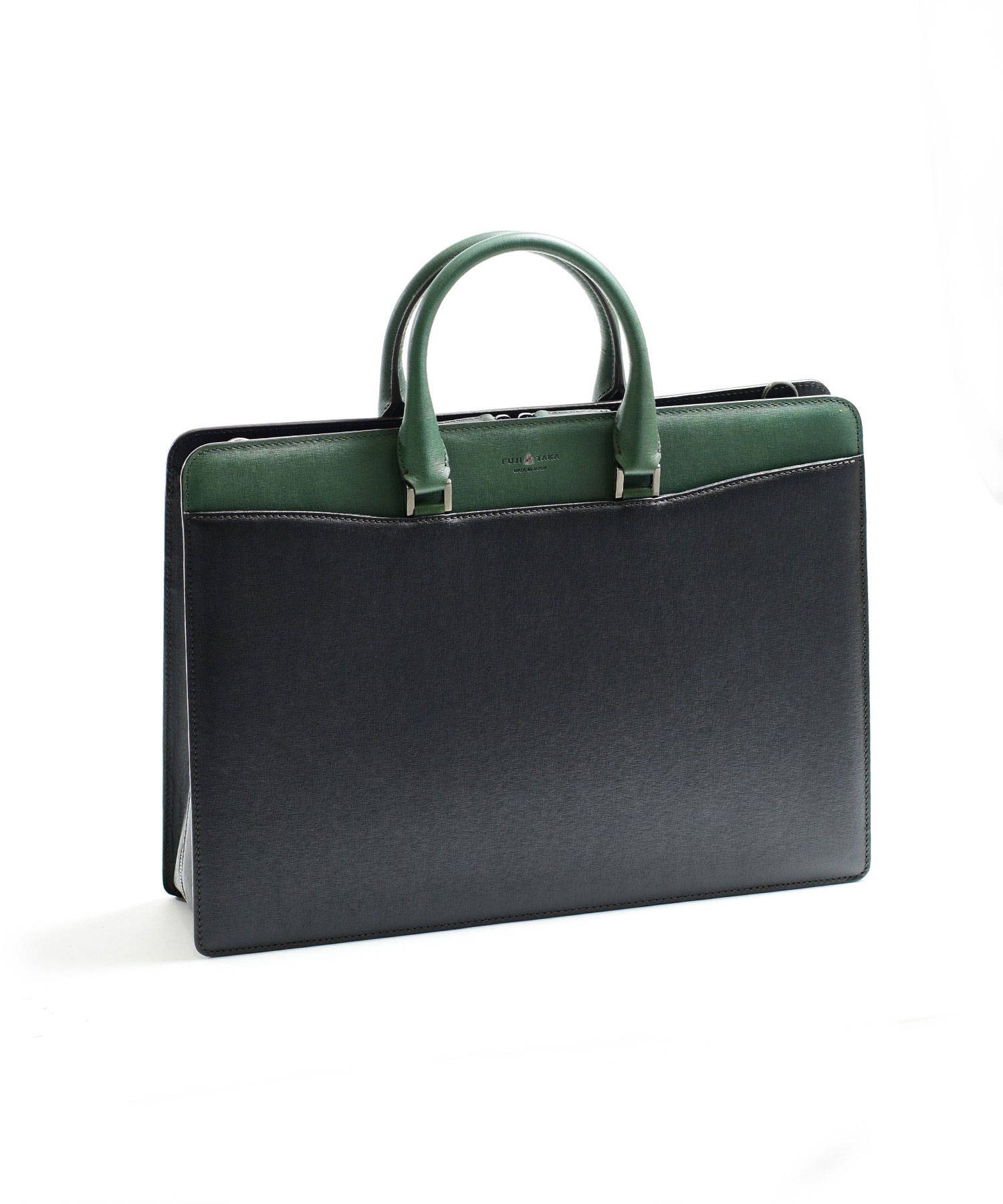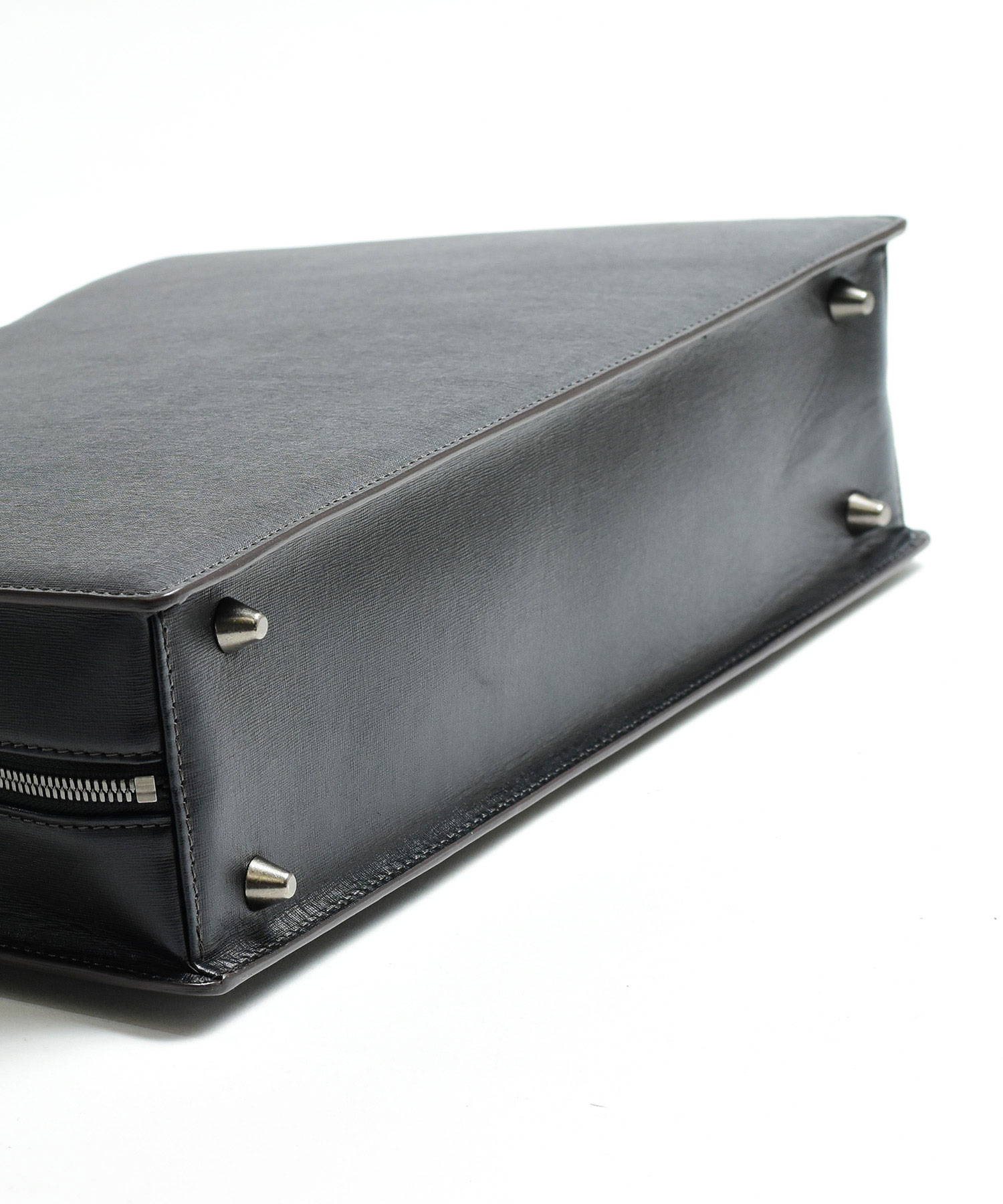 "逆さ富士"をイメージしたカッティングデザインを取り入れた、フジタカのレザービジネスバッグ。B4サイズの書類に対応しております。素材から生産まで国産にこだわり、金具のデティールや革の裁断面の仕上げなど細部まで職人技が光ります。フォーマルなシーンやスーツスタイルに負けない重厚感と品格あるハードタイプのバッグです。
