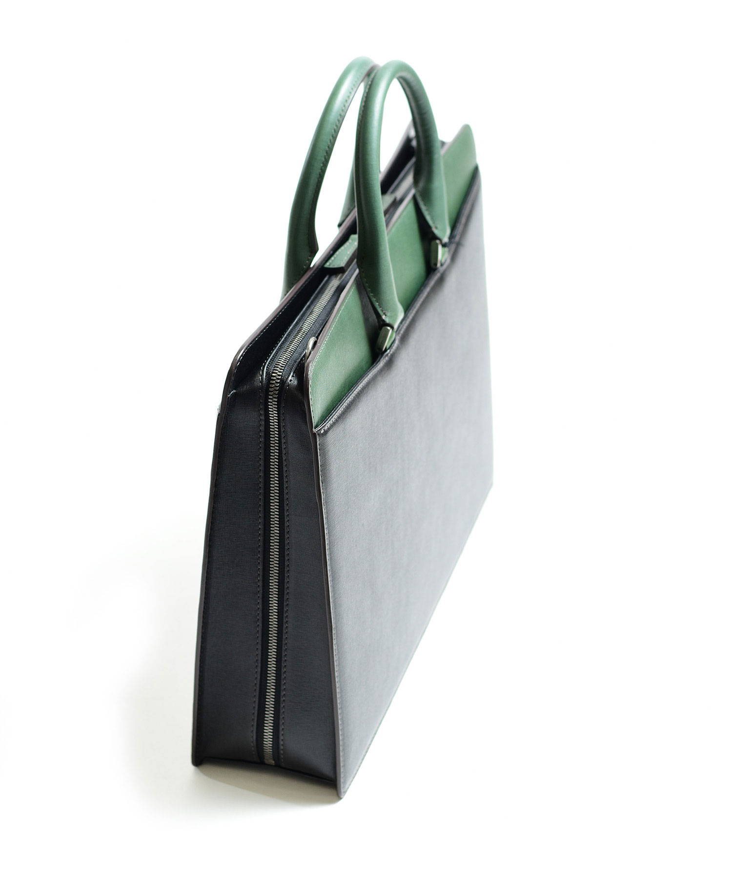 メイン素材として使用されているのは、このシリーズのためにオリジナルで開発された純国産レザー。国内の上質な原皮を厳選し、国産鞣しの最高峰といわれるタンナーでじっくりと作りこまれた素材です。イタリアの伝統的な製法をベースに、それを伝承した日本の職人がお互いの国が持つ技術を最大限に活かせるよう生み出した独自の製法で鞣しています。
