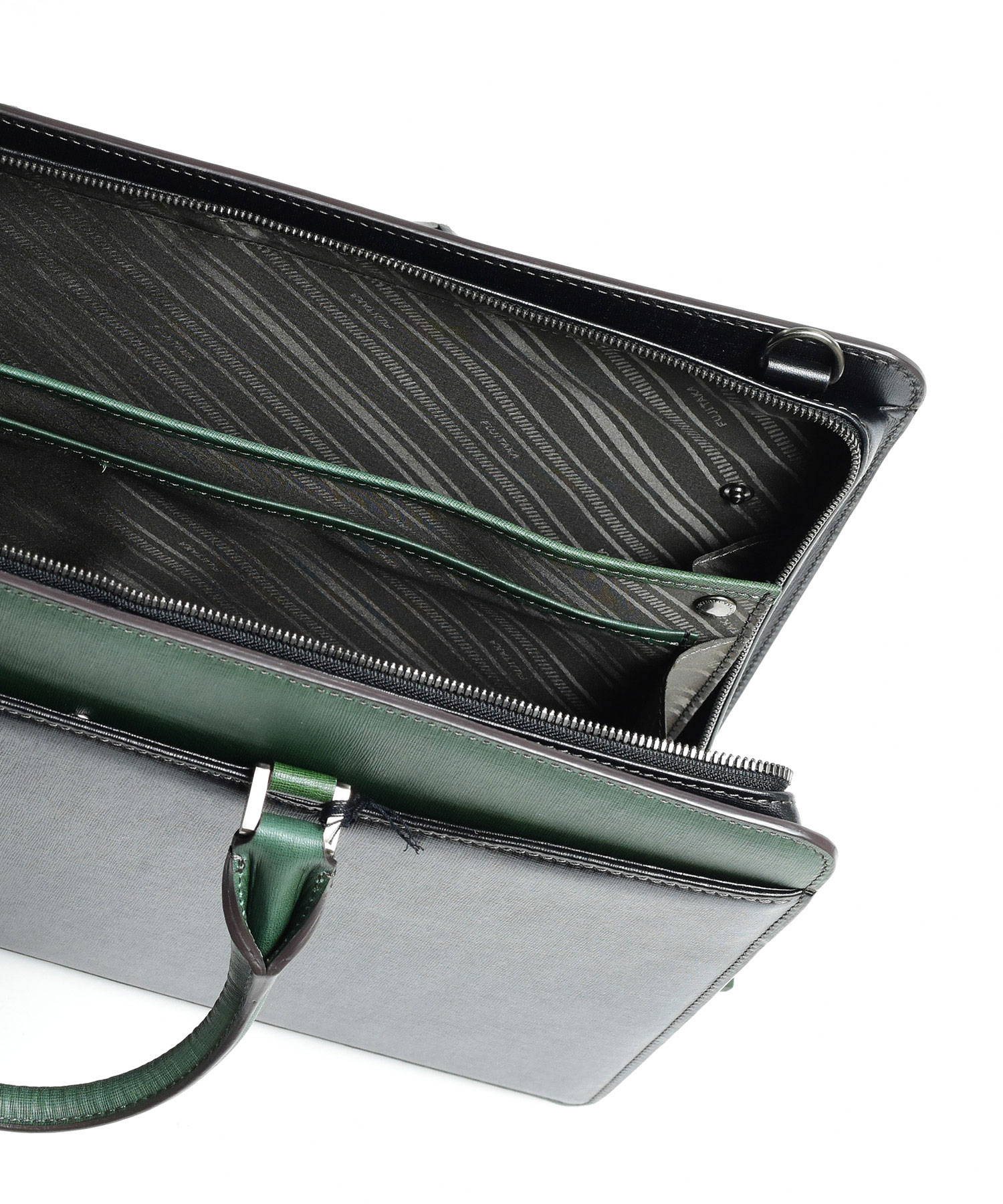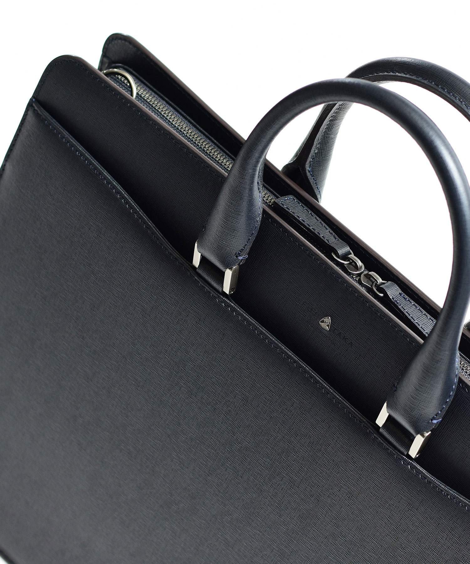 ファスナーポケットやマチ付きのポケット、ペン差しなど、ビジネスに欠かせないものを整理しやすい収納が揃っています。