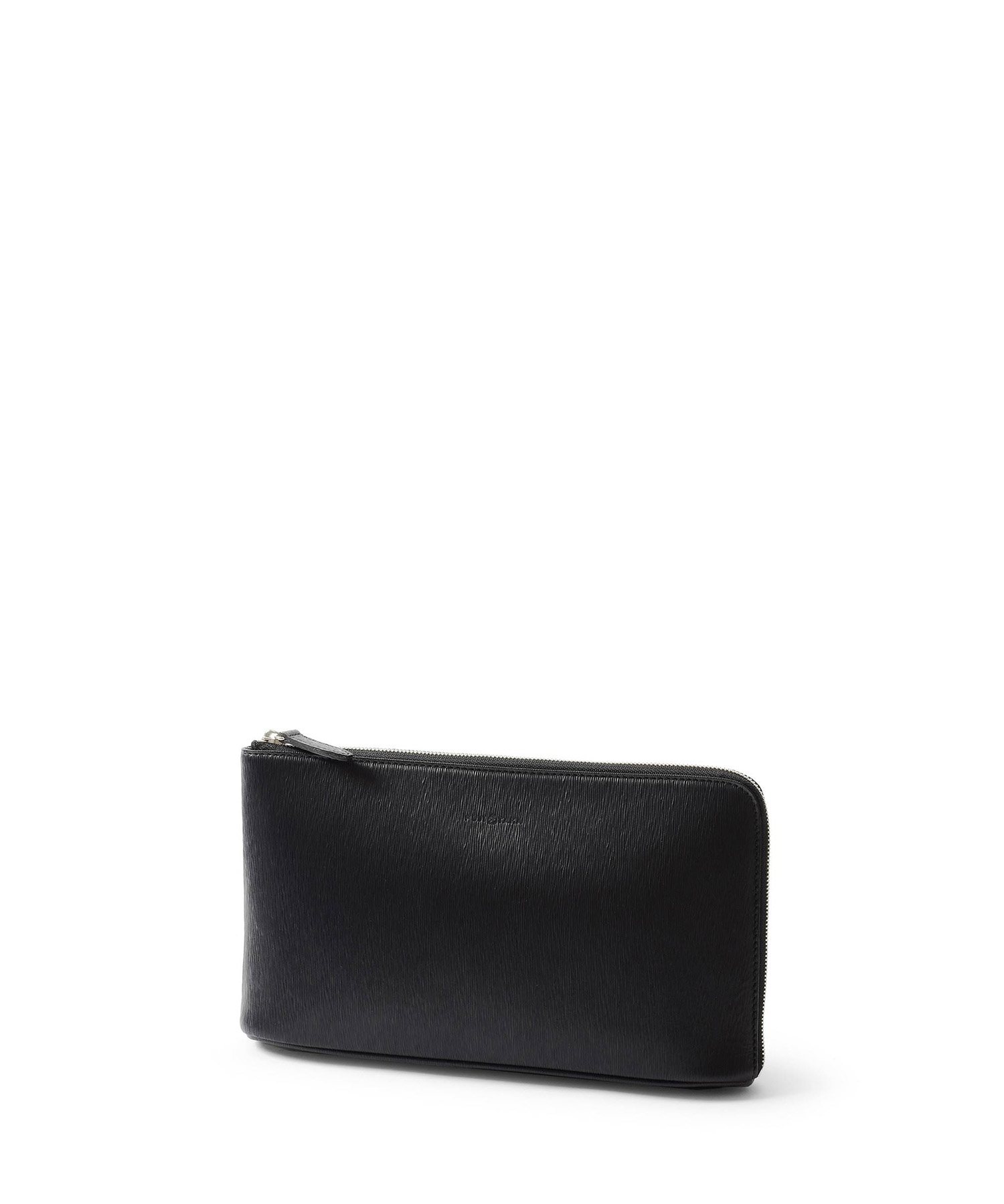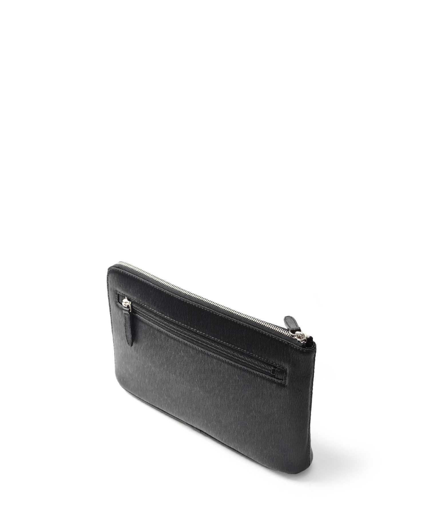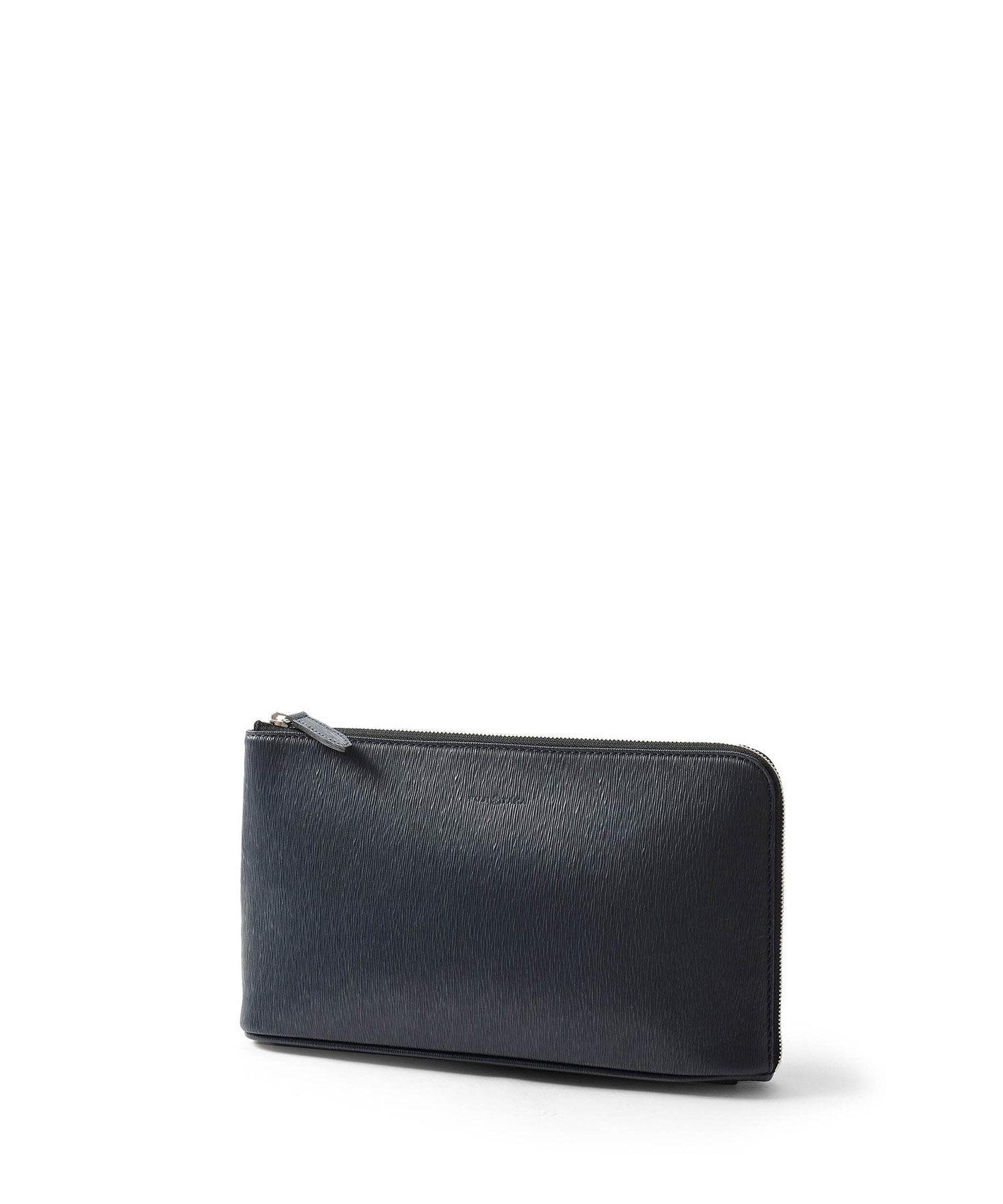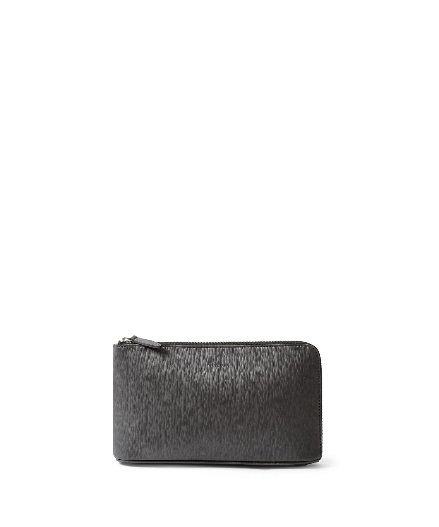 すっきりとしたデザインながら、L字に通ったファスナーのおかげで口開きの良い仕様。中身が見やすく、かつ荷物の出し入れもスムーズに行えます。長札や祝儀袋、袱紗など収納可能なサイズ感です。クラッチバッグの背面にファスナーポケット、内装にはファスナーポケット、オープンポケットが2つあります。