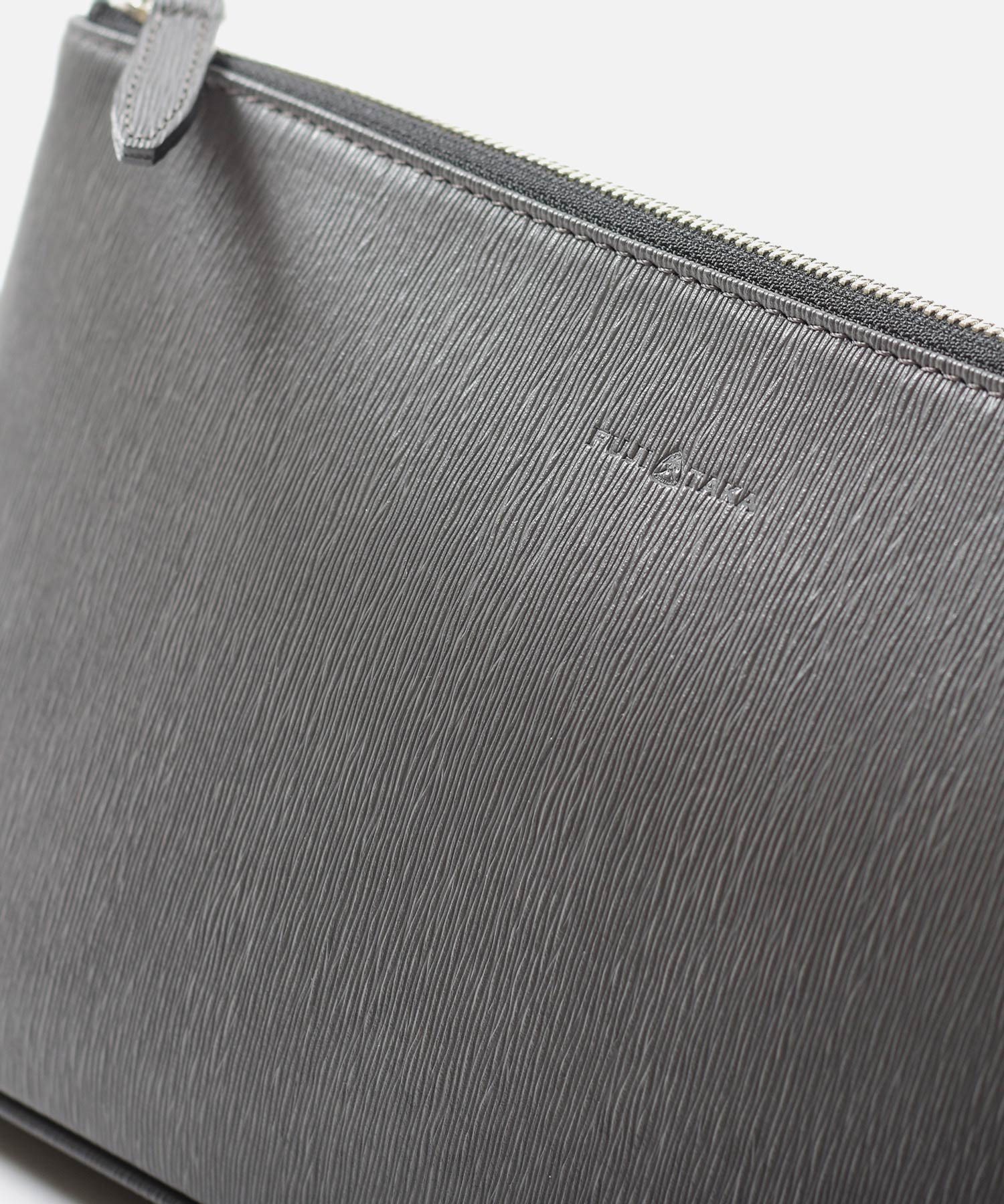 厳選された国産原皮にスコッチガード加工(3M)を施した防水レザーを使用した、フジタカのレザークラッチバッグ。上品なエンボス加工により、透明感と奥行きを出し高級感を感じられる表情に仕上げました。L字タイプのファスナーで、すっきりとしたデザインながら口開きが良く、使いやすさにもこだわっています。