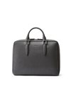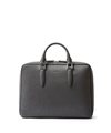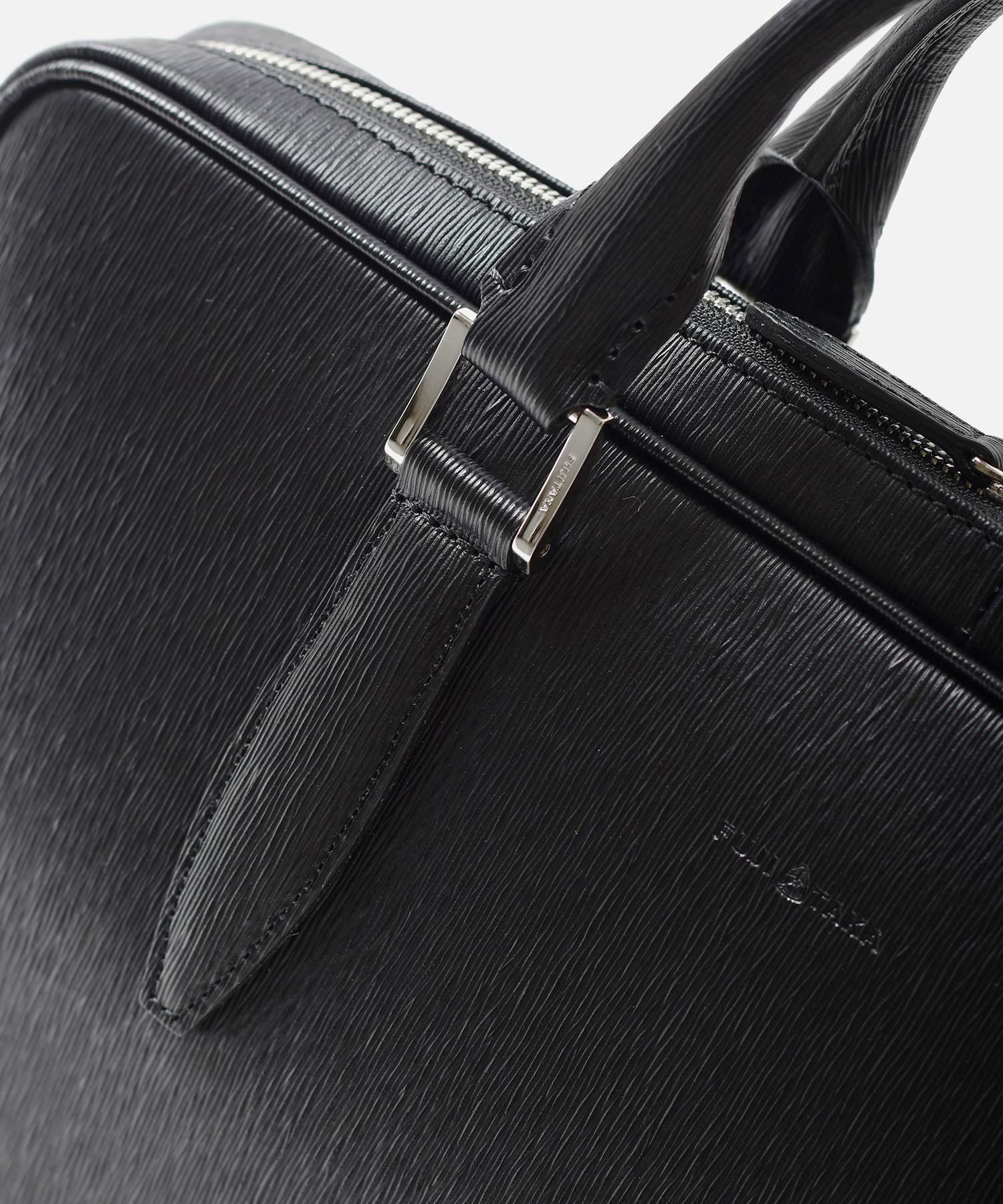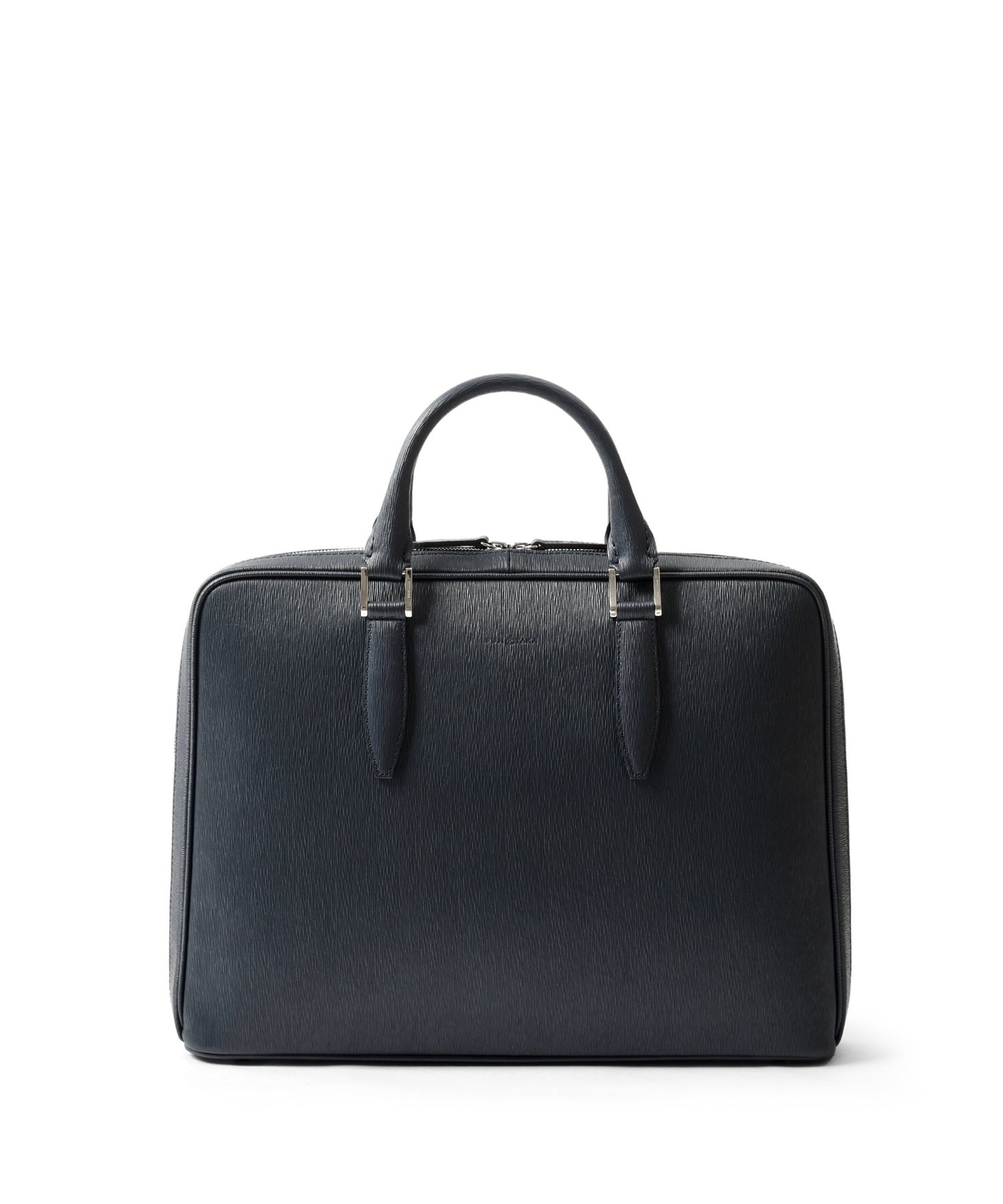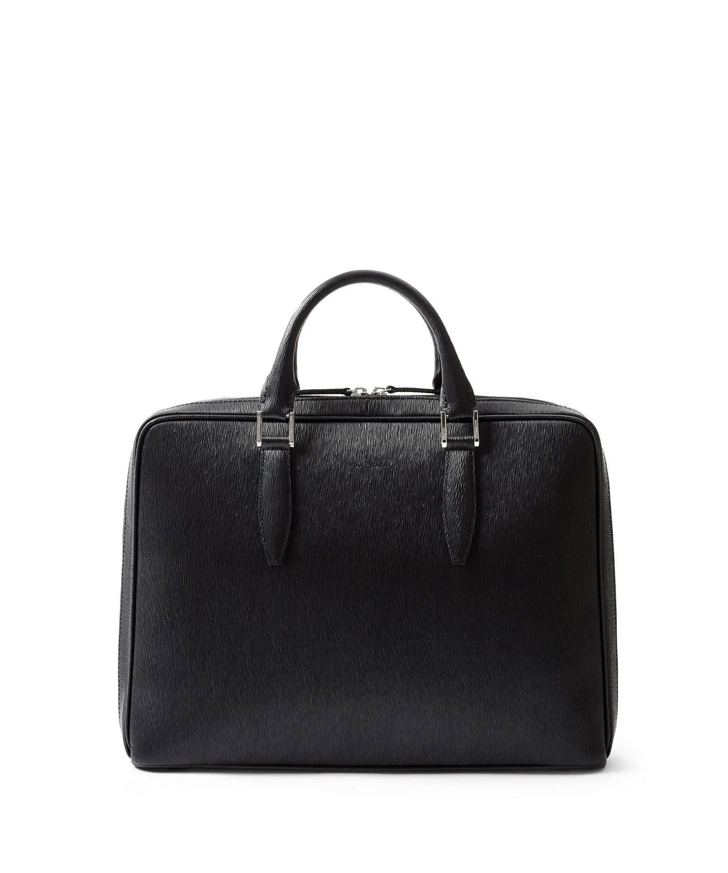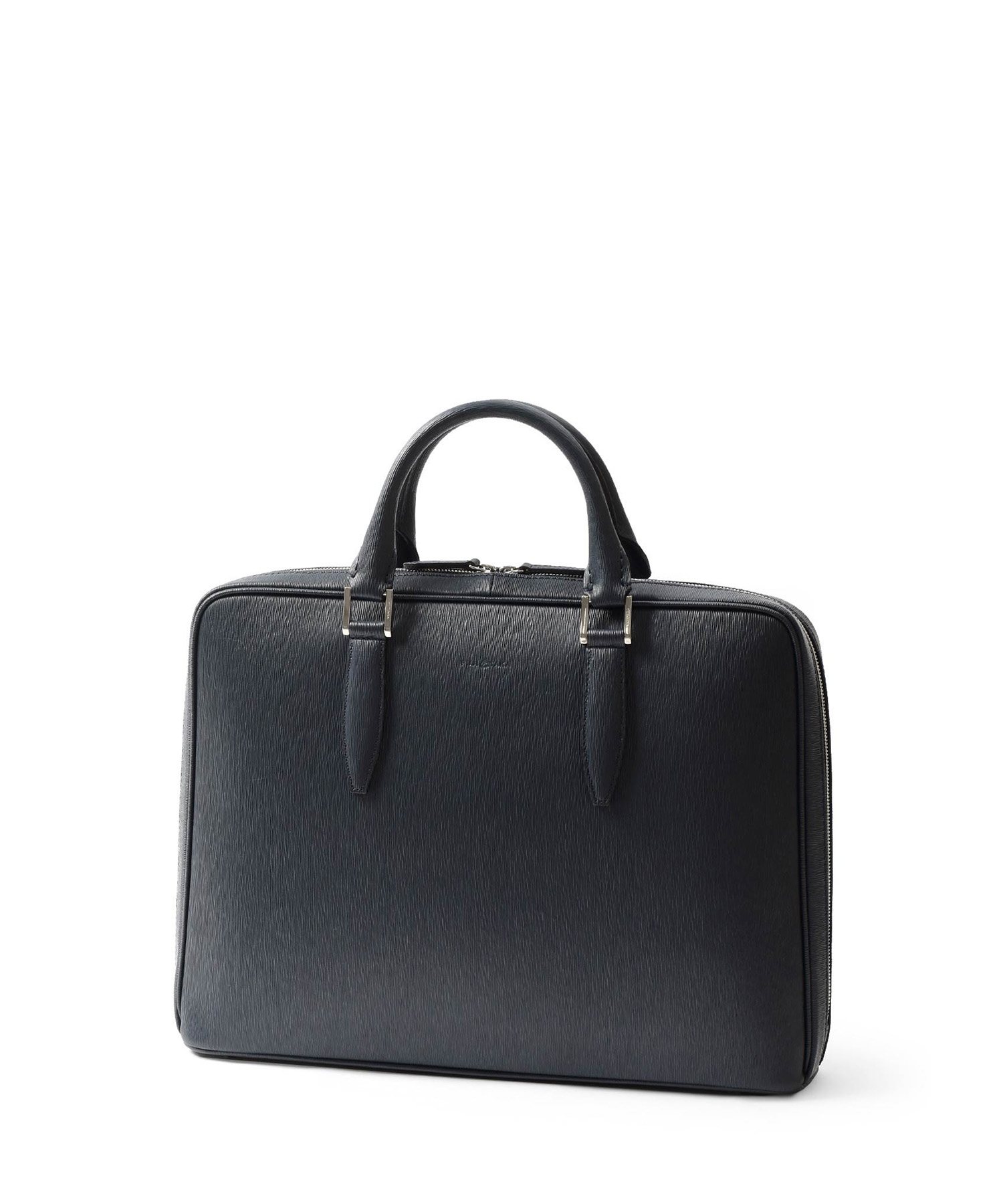 厳選された国産原皮にスコッチガード加工(3M)を施した防水レザーを使用した、フジタカのA4レザービジネスバッグ。上品なエンボス加工により、透明感と奥行きを出し高級感を感じられる表情に仕上げました。職人の高い技術で施された底部分をぐるりと一周する縫製、「パイピング」によってしっかりと自立する作りです。