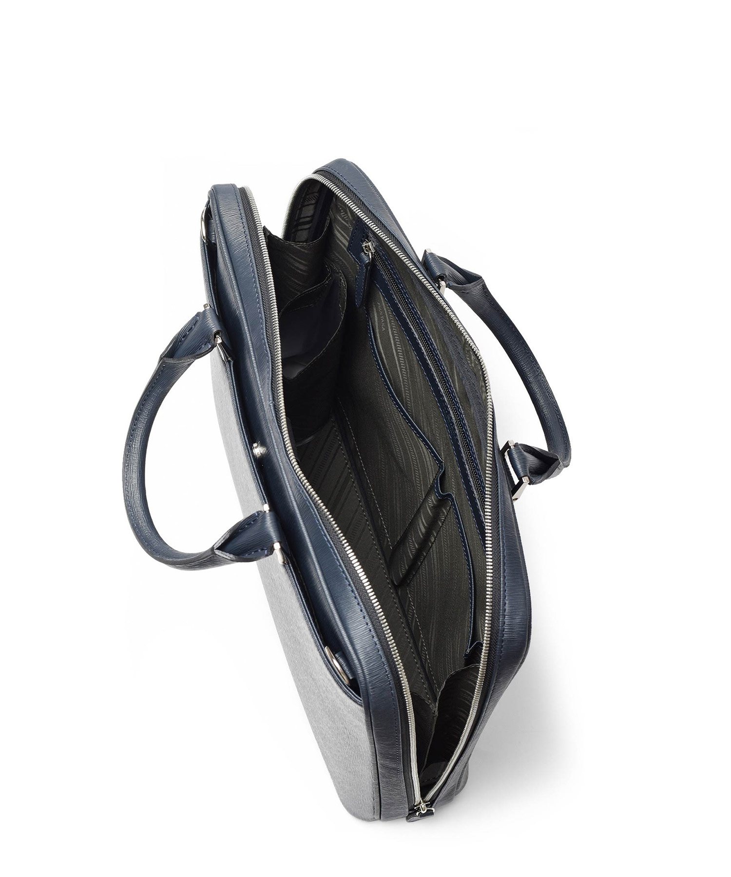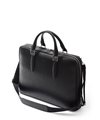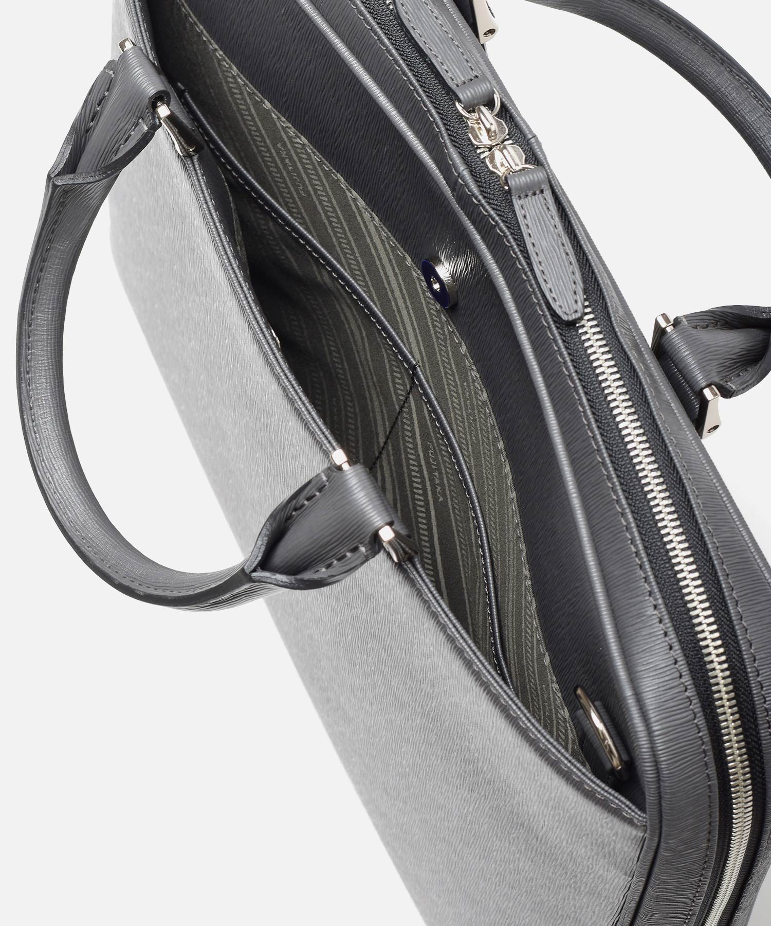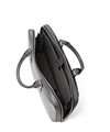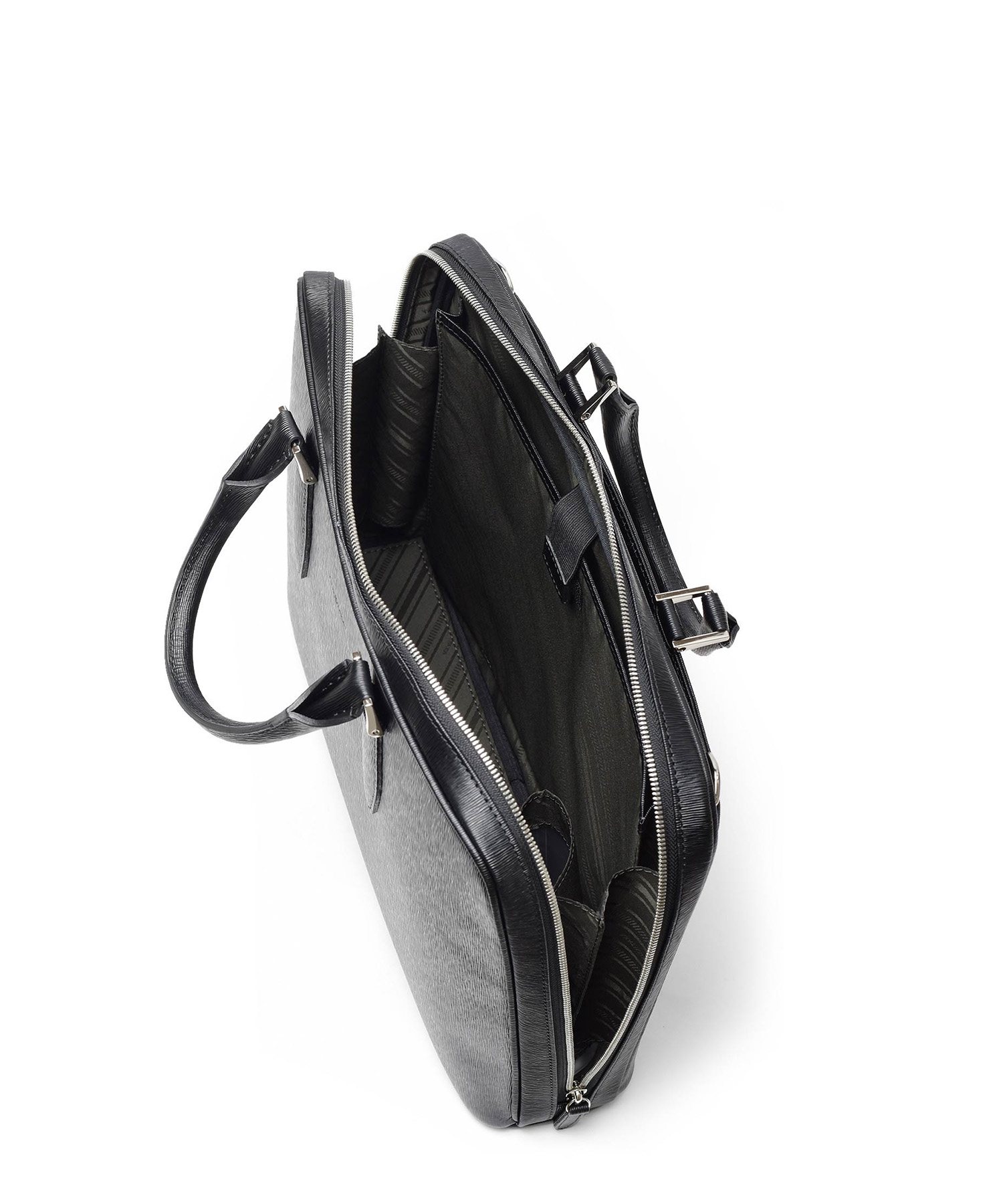 すっきりとしたデザインながら、A4サイズがおさまるビジネスバッグです。内装にはクッションポケット、ファスナーポケット、オープンポケットが2つ、ペンさし、ペットボトルホルダーを装備しています。衝撃を和らげるクッションポケットは、ノートパソコンやタブレット型端末の収納に最適で、13.3インチPCに対応しています。