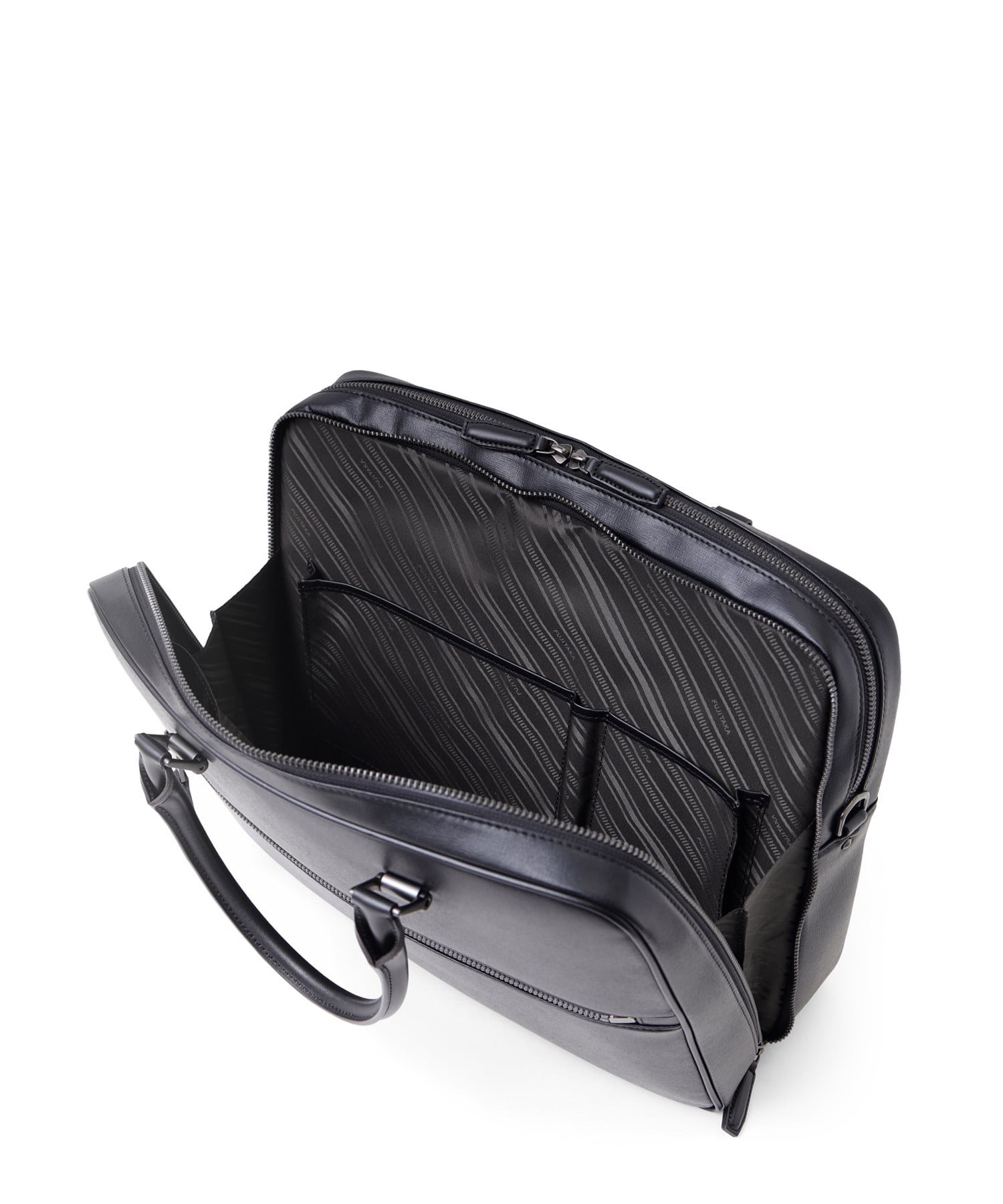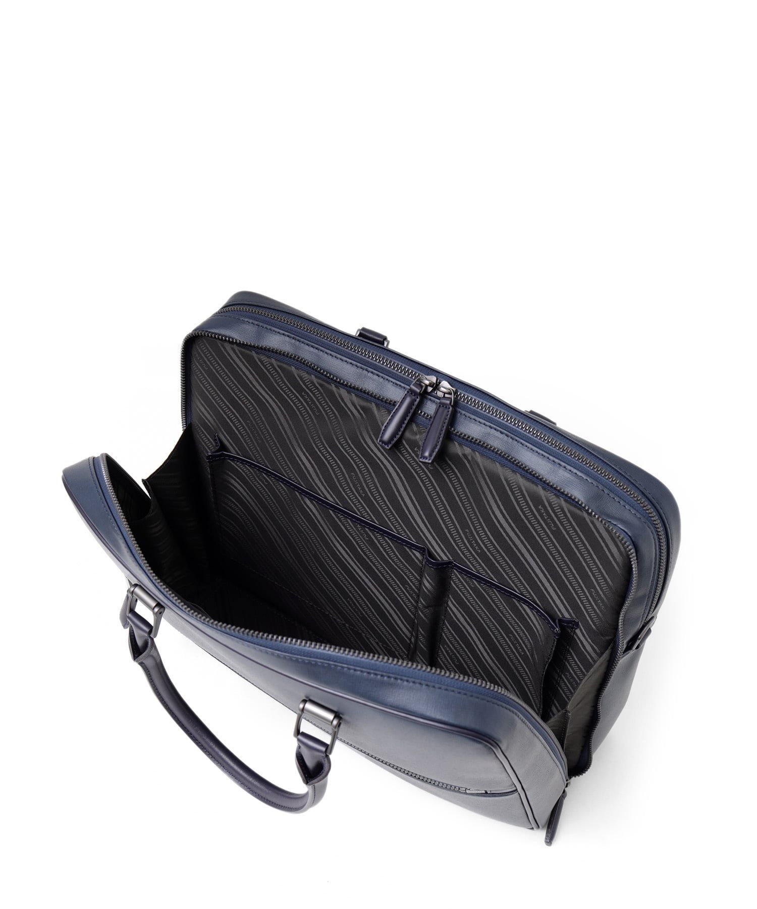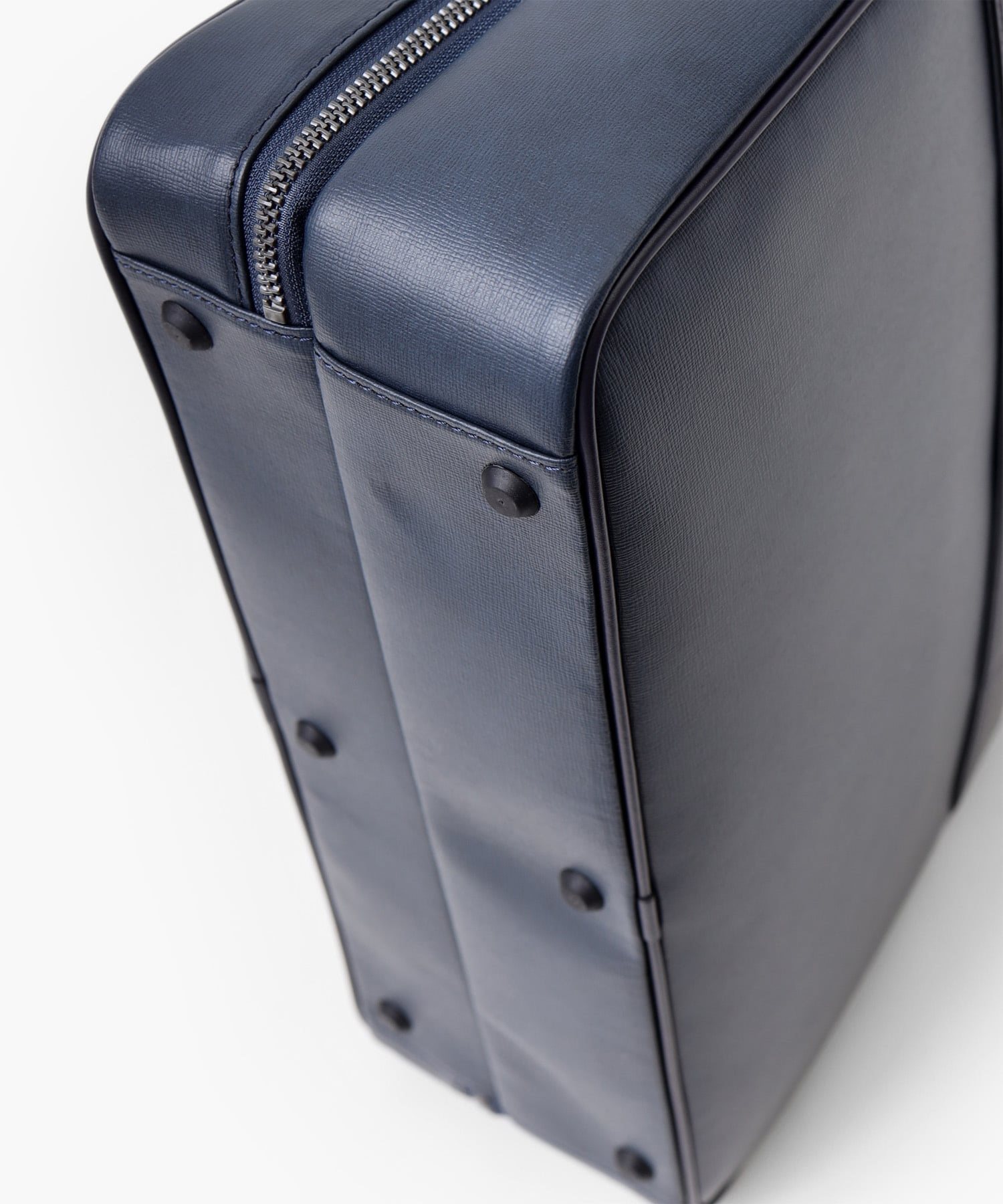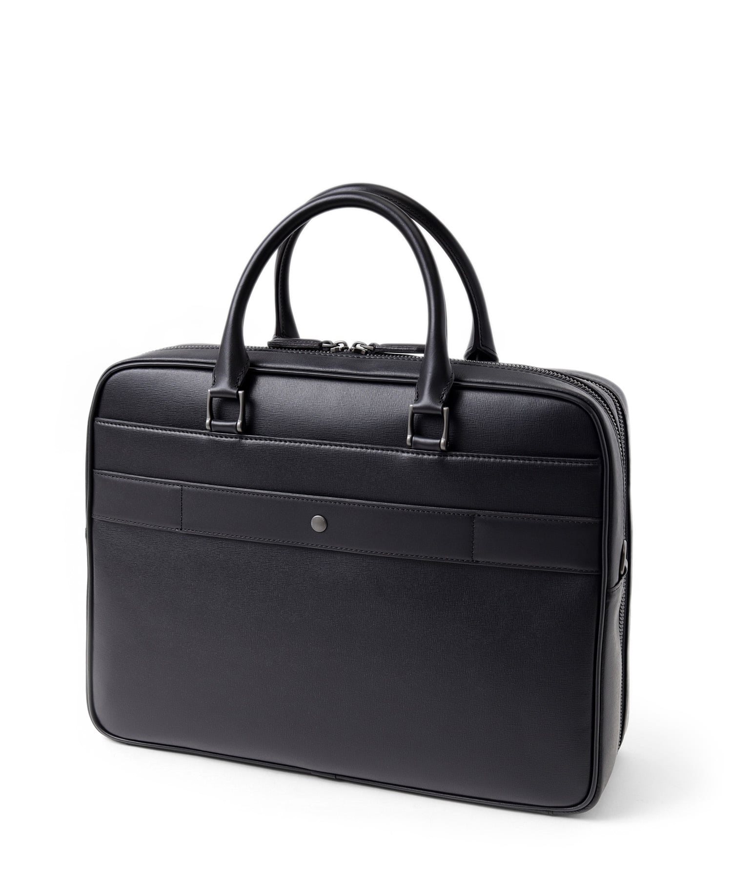 「クラリーノ」を使った、FUJITAKAのA4サイズのビジネスバッグ。ダブルファスナータイプです。この素材は、型崩れしにくく高級感があり、丸みを帯びた風合いが特徴で、天然皮革に近い一体感のあるなじみを再現しています。