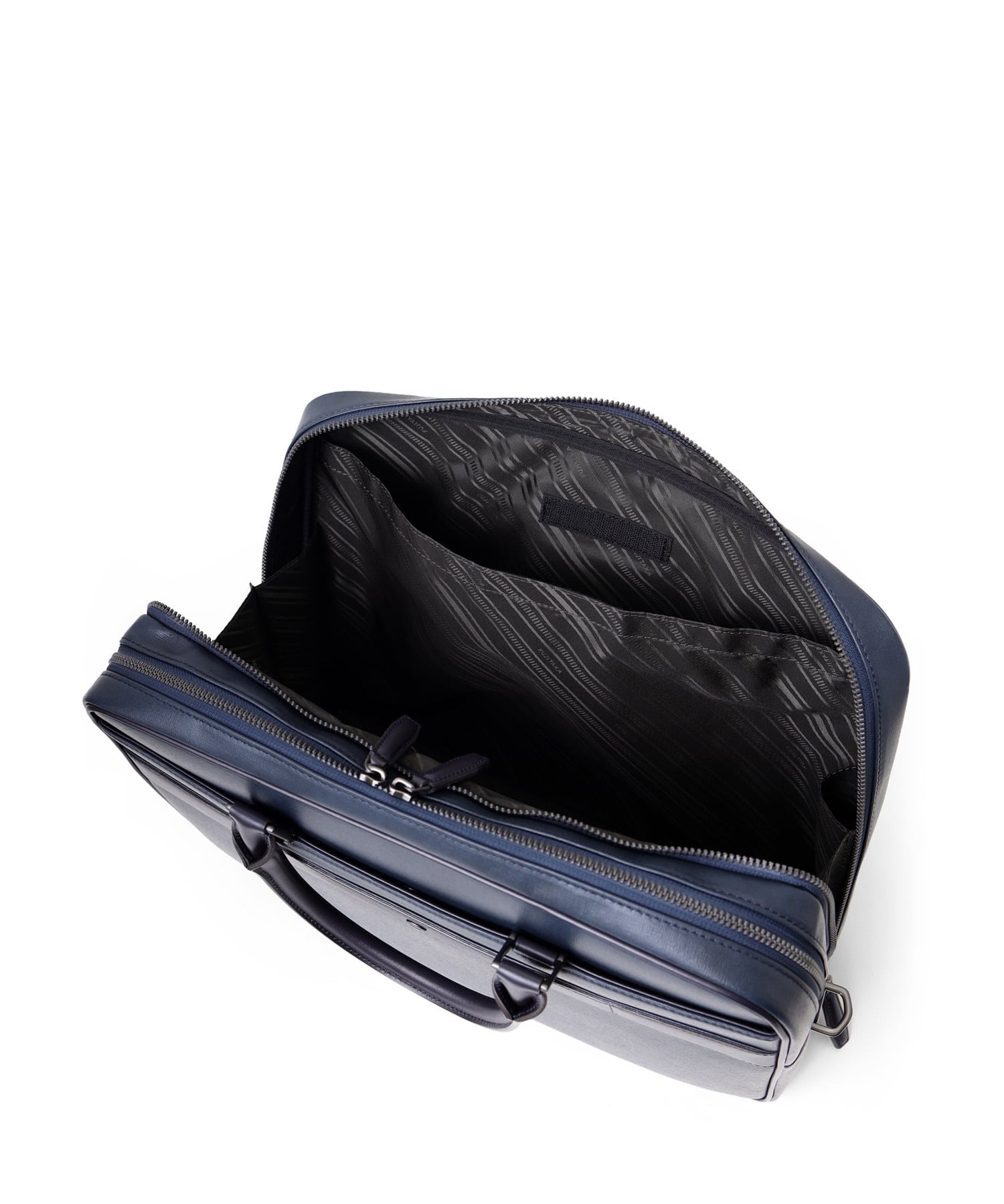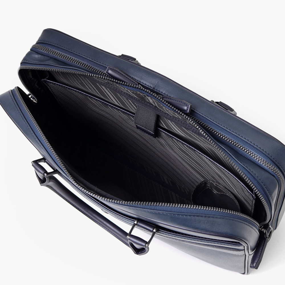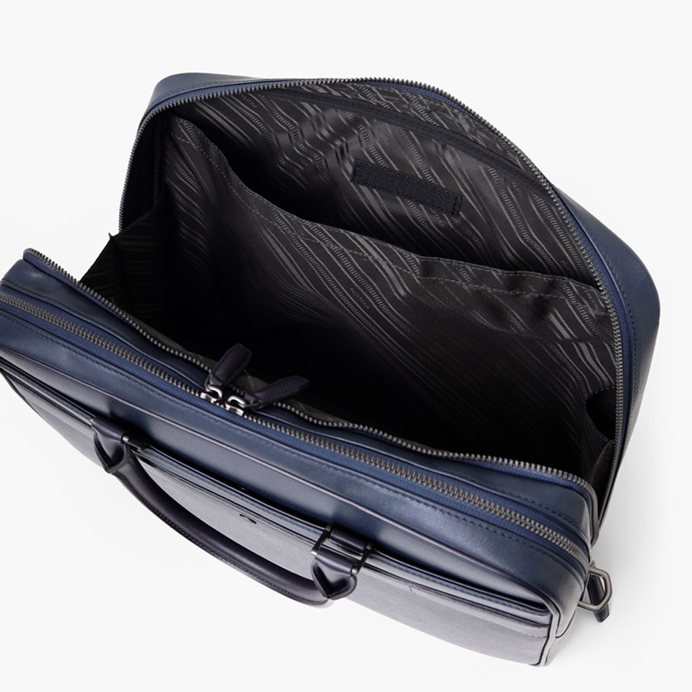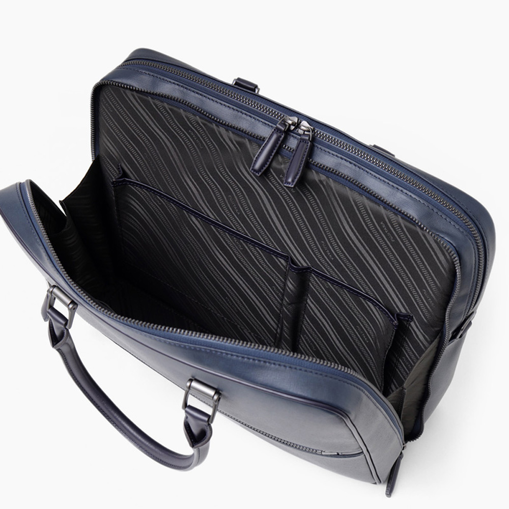 「クラリーノ」を使った、FUJITAKAのA4サイズのビジネスバッグ。ダブルファスナータイプです。この素材は、型崩れしにくく高級感があり、丸みを帯びた風合いが特徴で、天然皮革に近い一体感のあるなじみを再現しています。