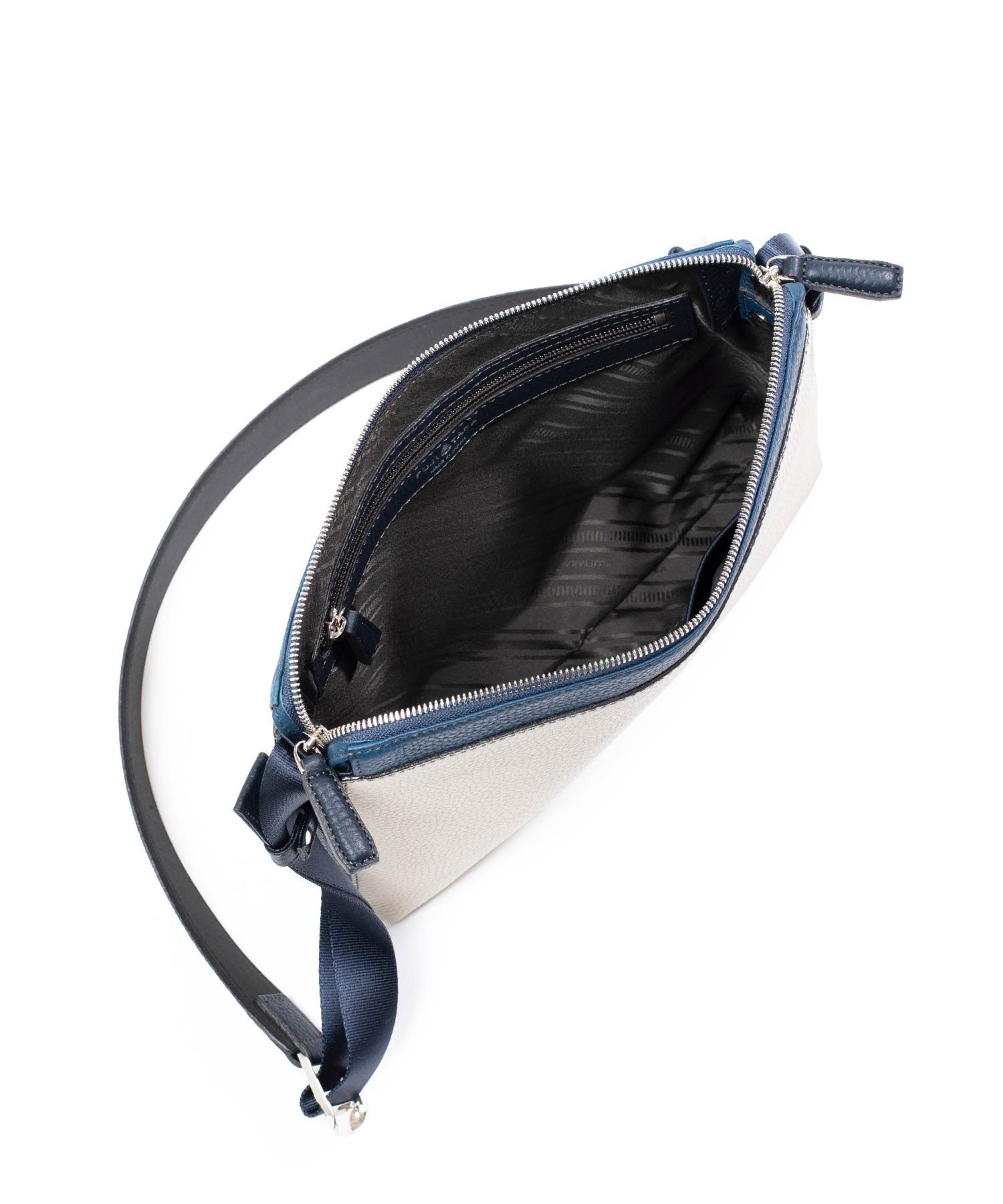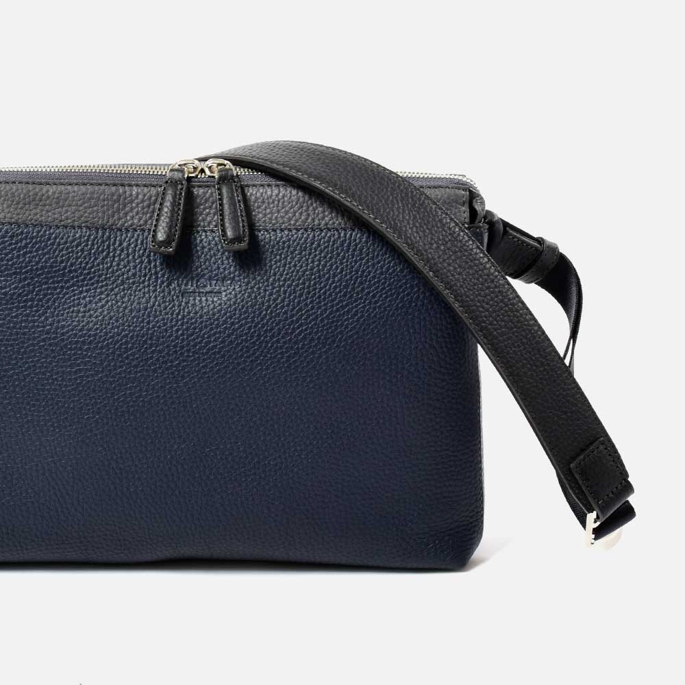 ナチュラルでソフトなシュリンクレザーを贅沢に使用したサコッシュ型の本革ショルダーバッグ。柔らかな手触りが特徴の本革をカラーコンビで表現しています。職人の技術により、ボリュームのある立体的なシボ感を活かしながらも軽量に仕立て、ソフトでありながら自立するよう工夫した設計にしています。