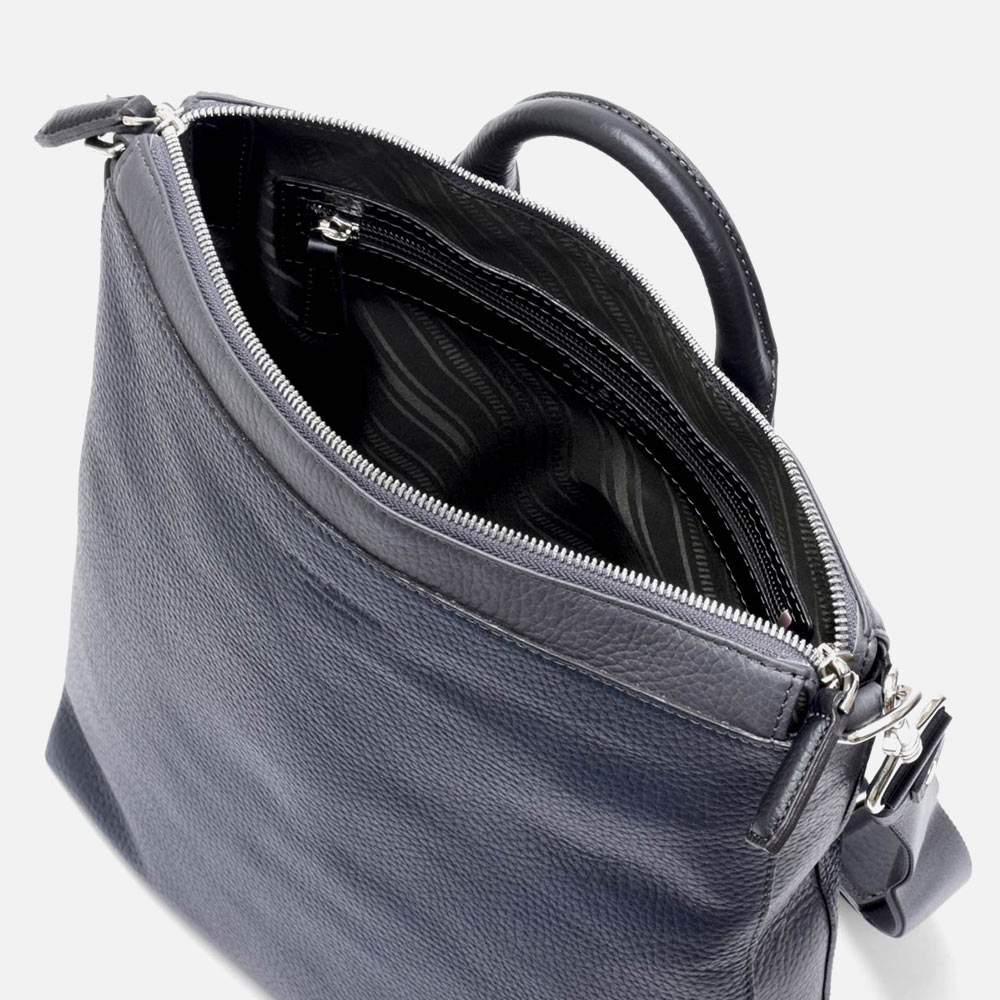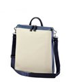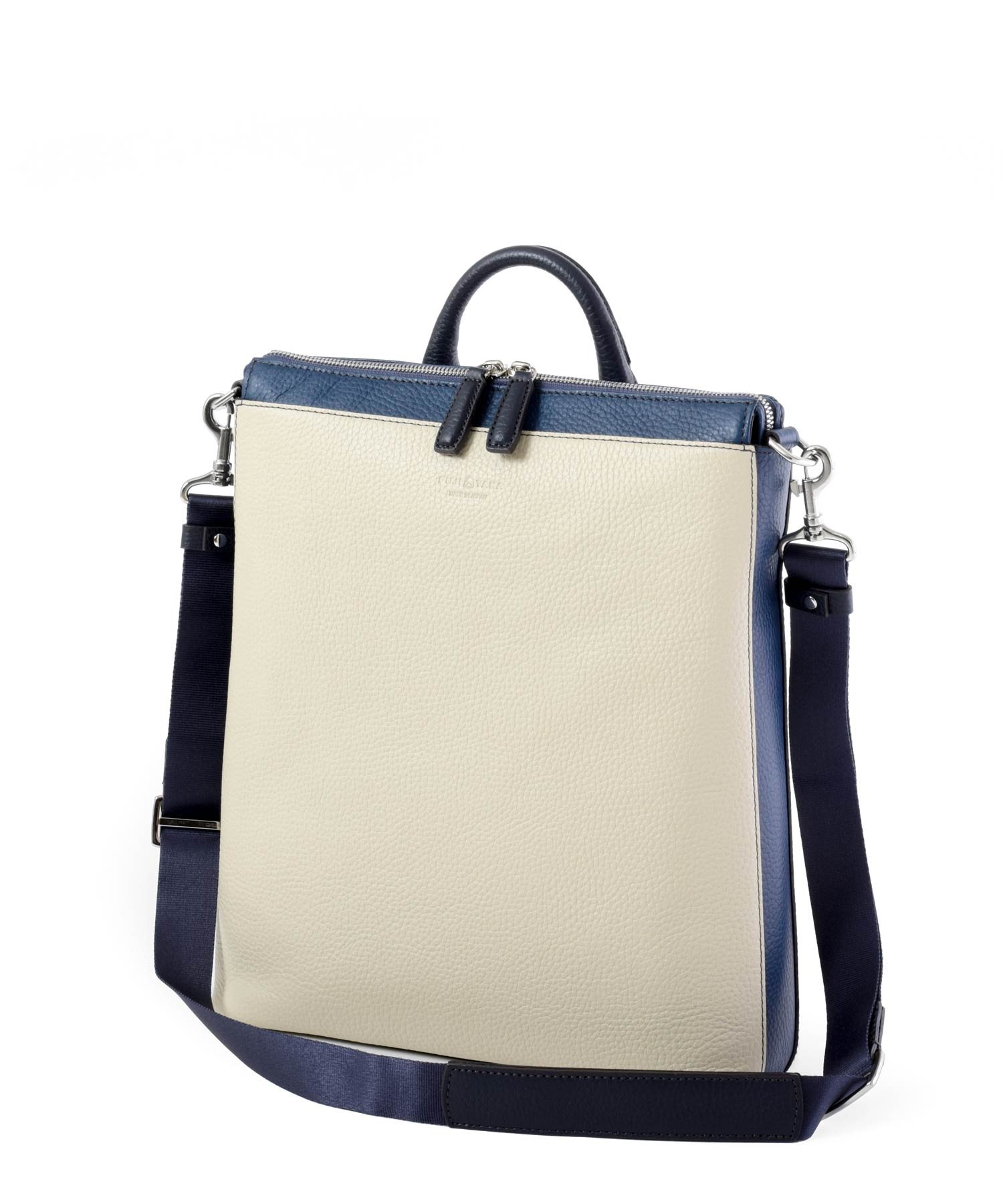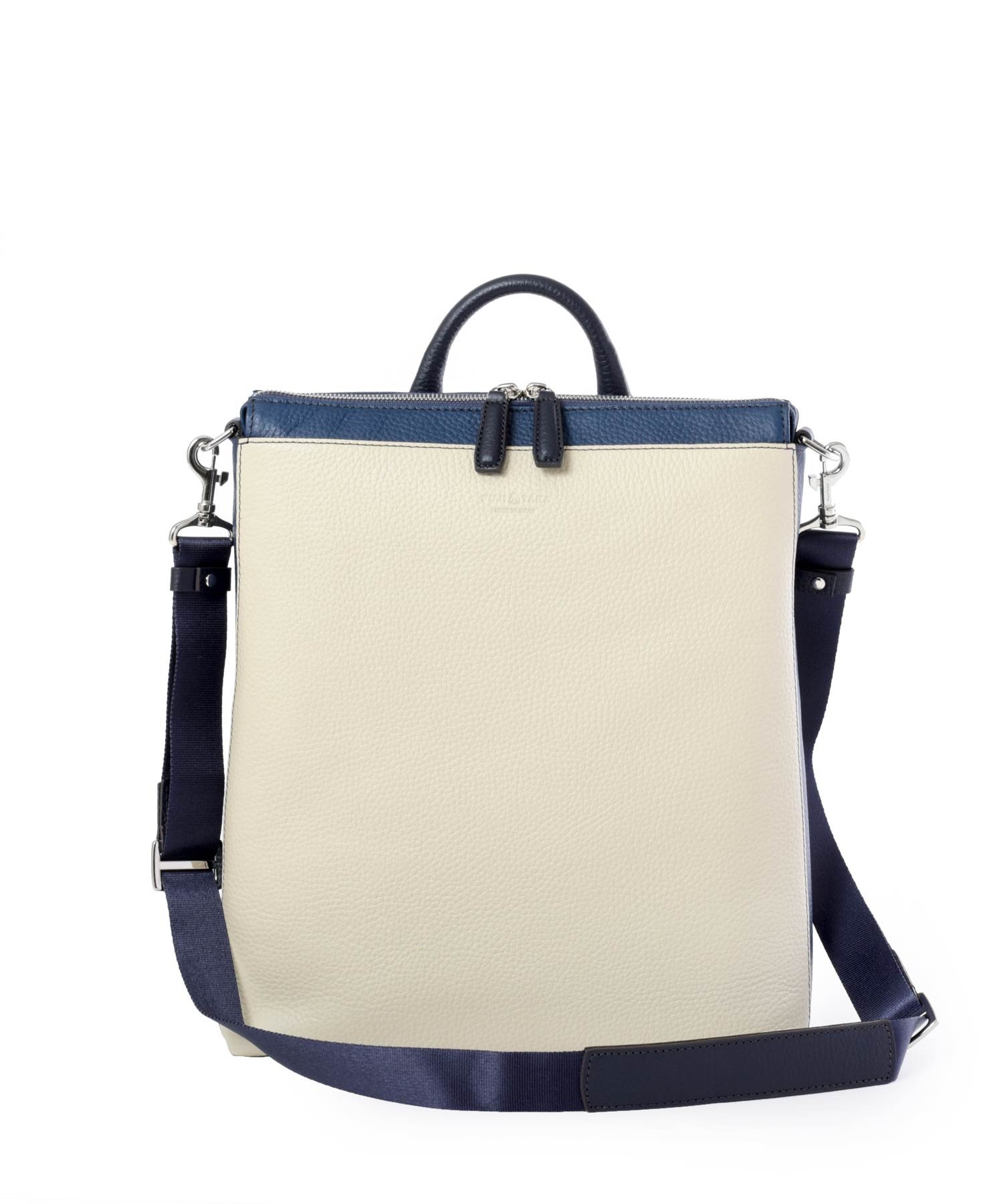 本体素材は柔らかな手触りが特徴の本革をカラーコンビで表現しています。職人の技術により、ボリュームのある立体的なシボ感を活かしながらも軽量に仕立て、ソフトでありながら自立するよう工夫した設計にしています。