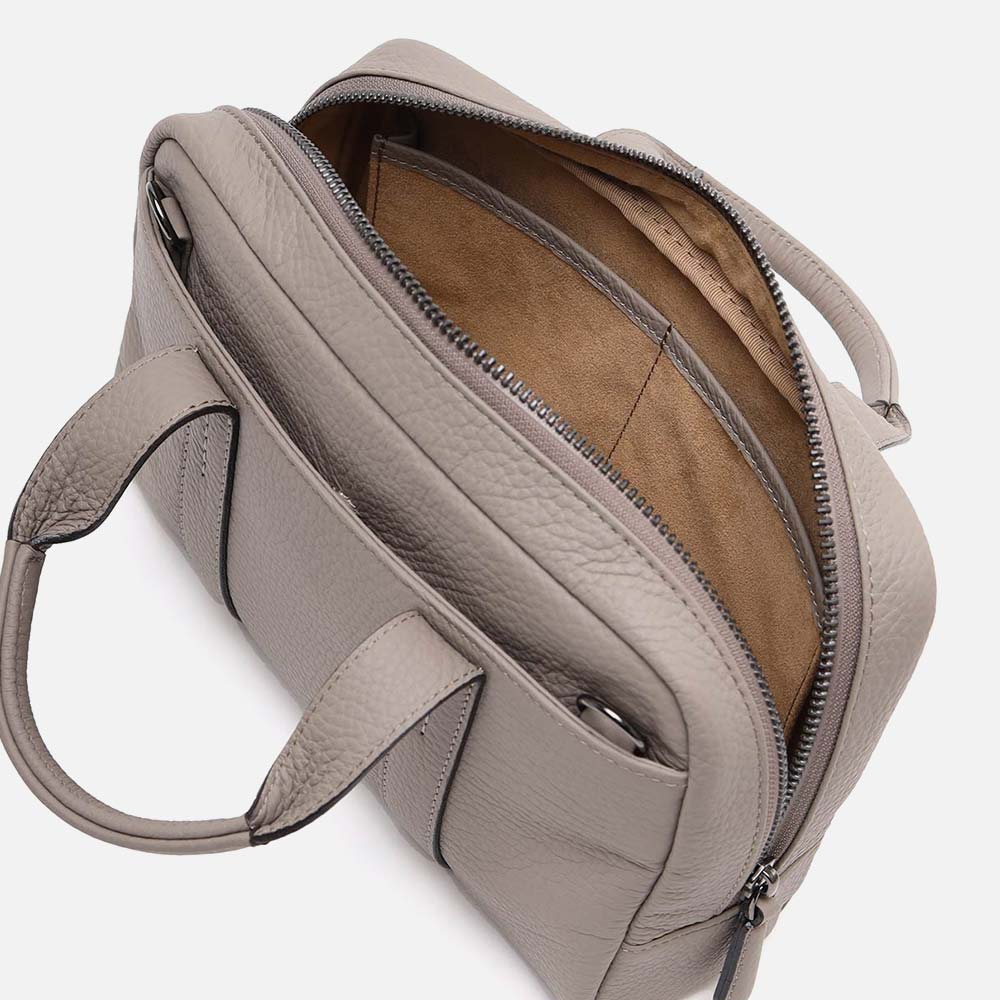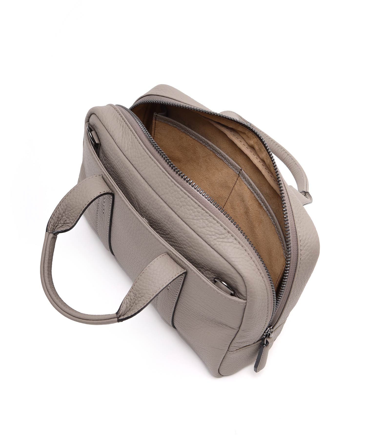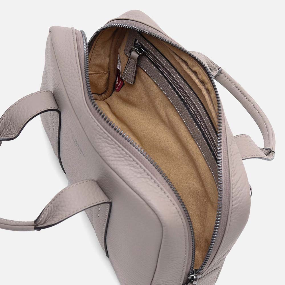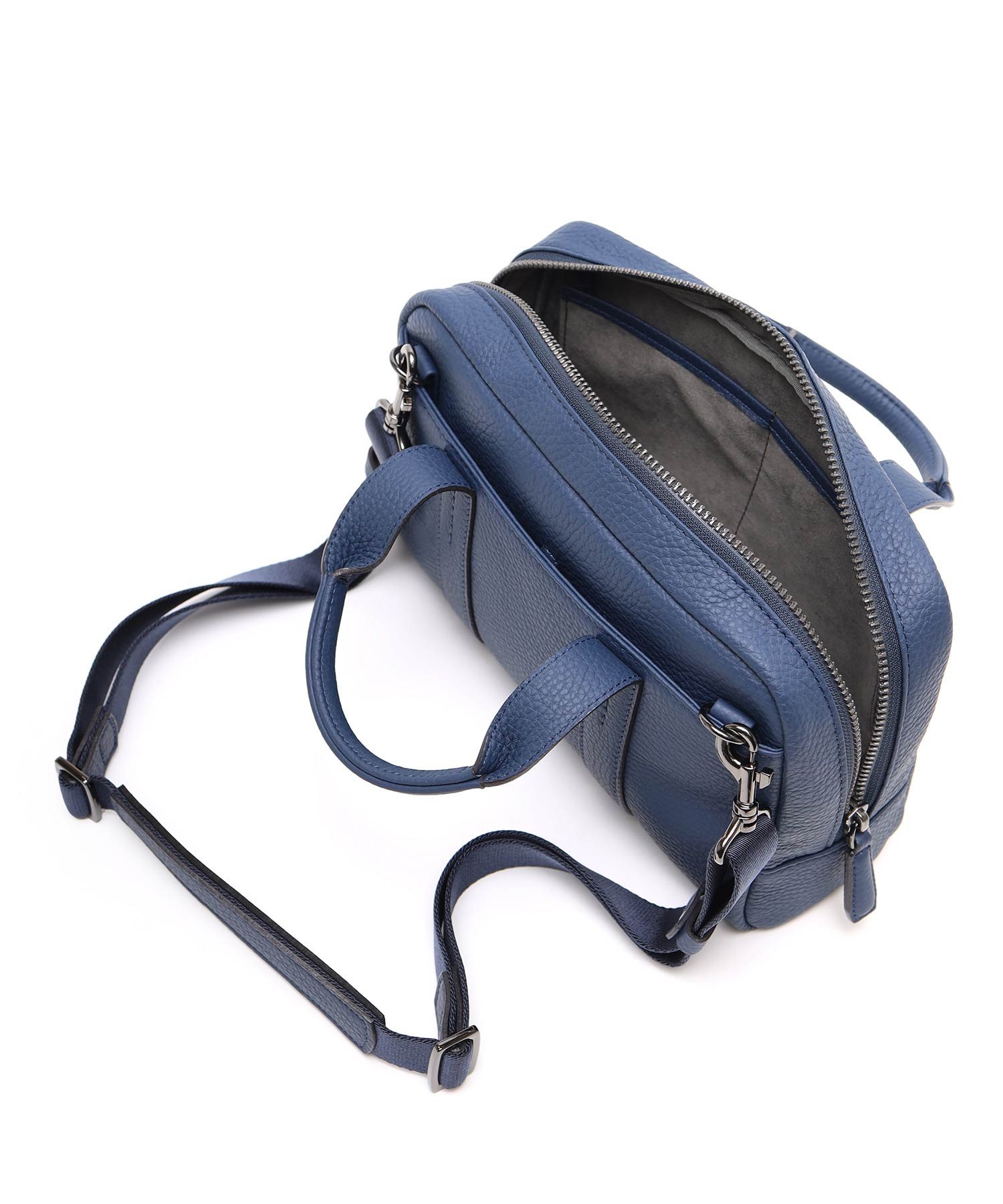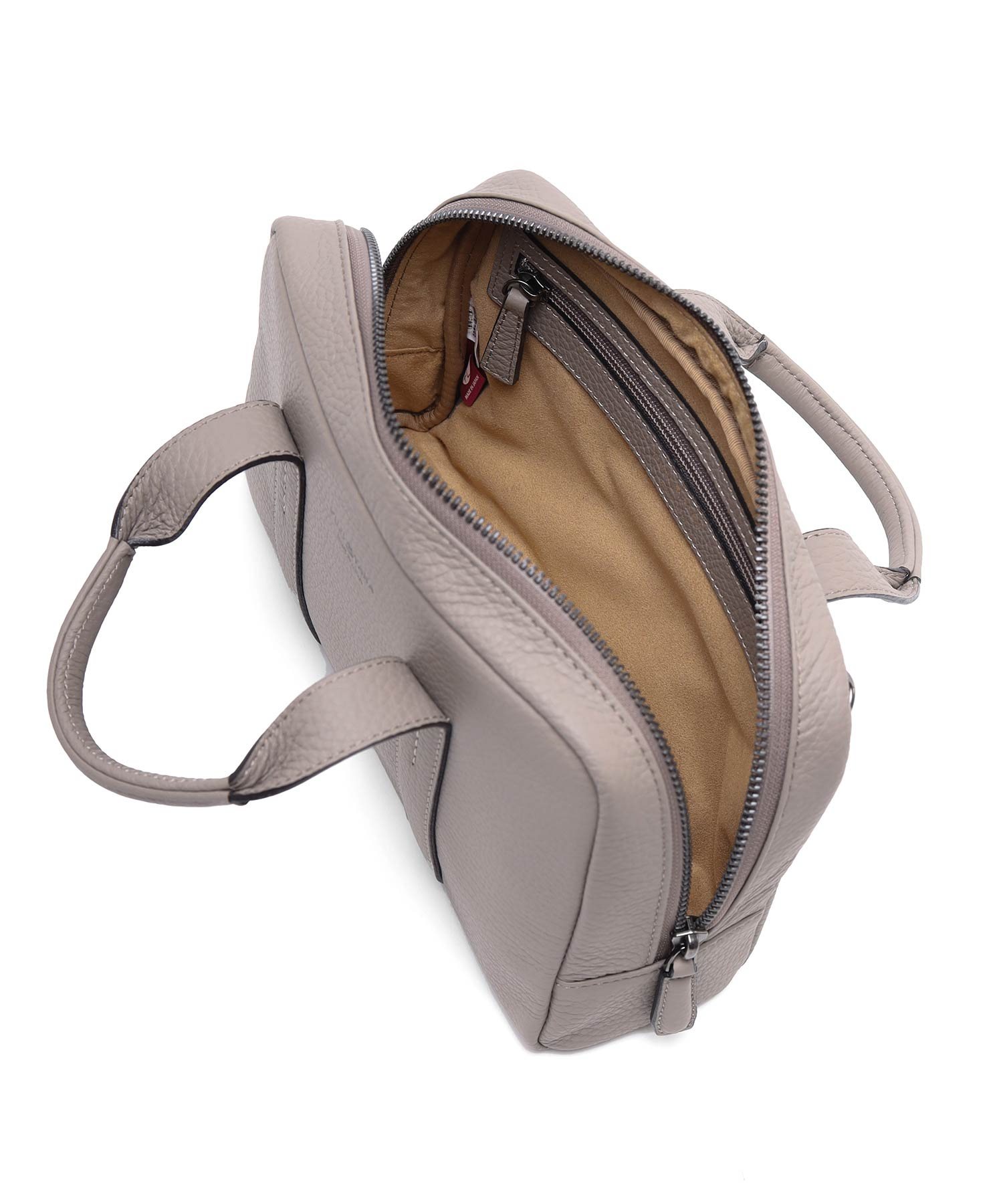 メインルーム内はファスナーポケット、小物ポケットが2つあります。内装には手触りのよいのポリエステル生地を採用しています。鞄の背面には、マグネット付きポケットがあります。