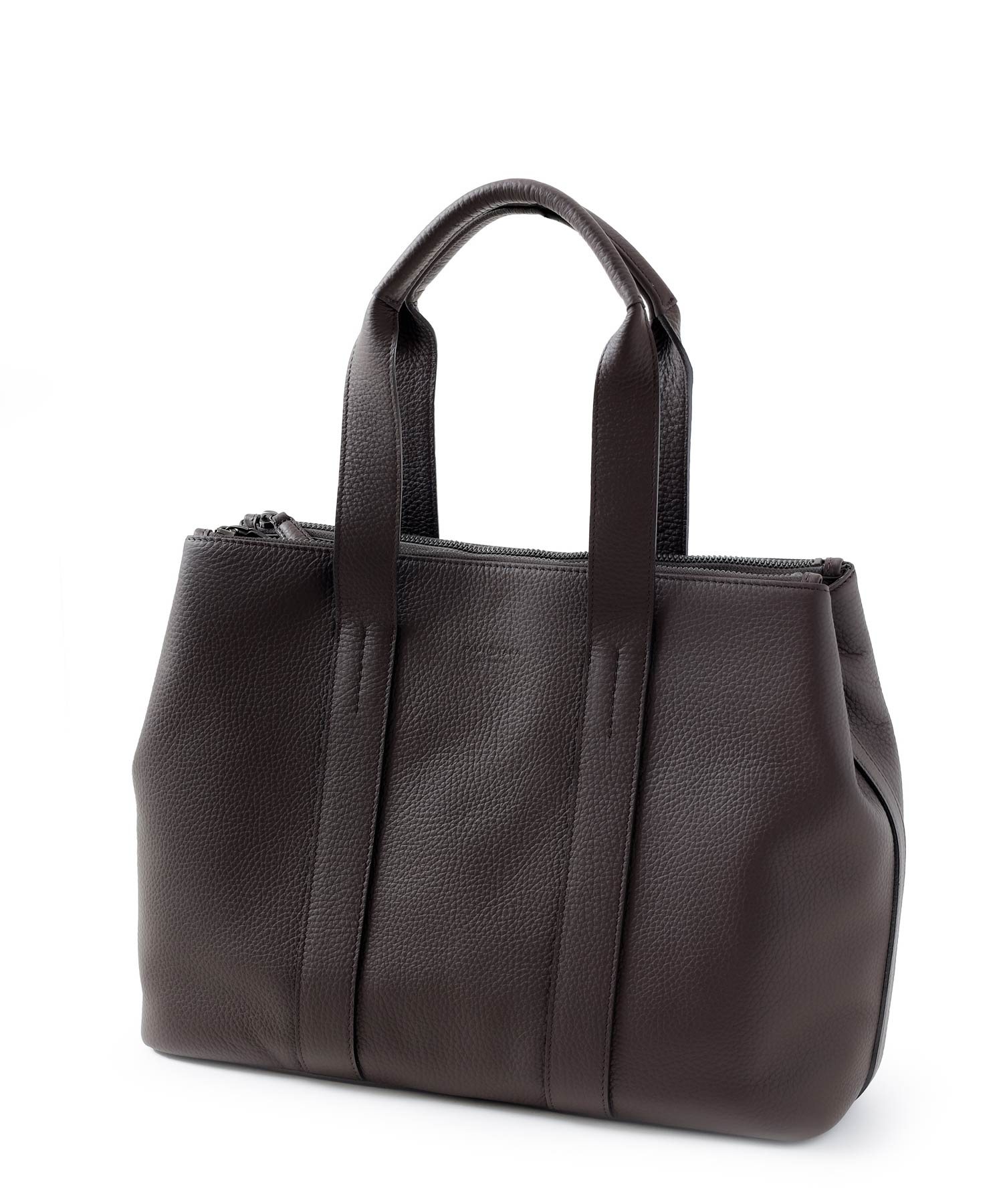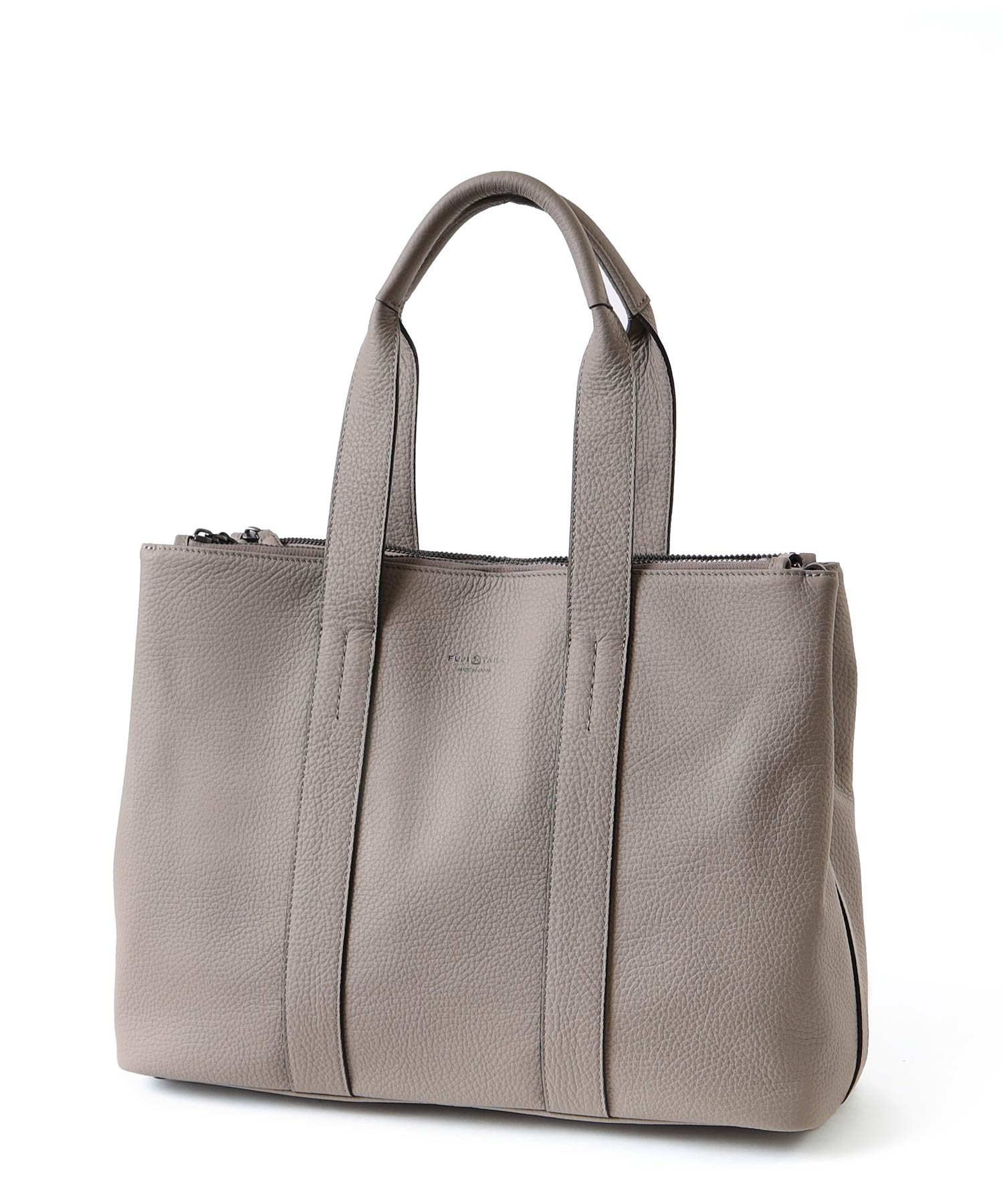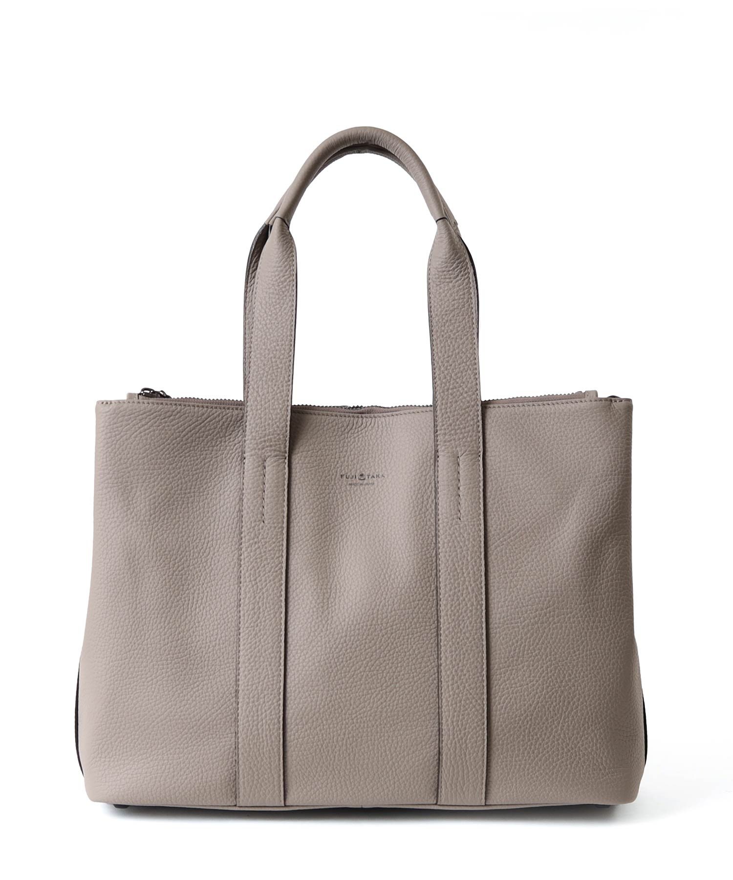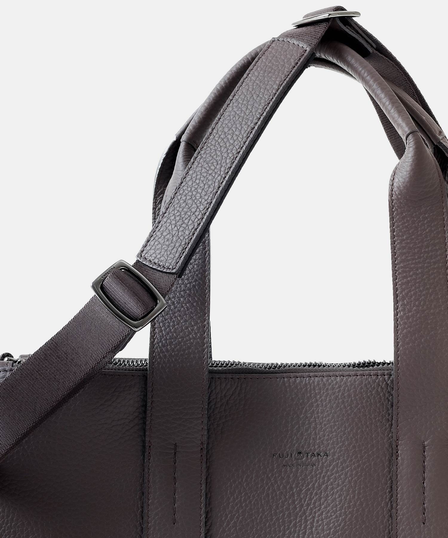 厳選されたヨーロッパ原皮に上品なシボ感が美しいLWGゴールドランク認定のイタリア高級レザーを贅沢に使用した、フジタカ AltaシリーズのB4サイズの2WAYレザートートバッグ。ショルダーベルトが付属しており、肩掛けにも対応しています。ショルダーベルト付属の2WAY仕様で、静穏仕様のゴム底鋲を採用しています。メインコンパートメントの他、前後にファスナー式のコンパートメントがあるトリプルルーム仕様です。