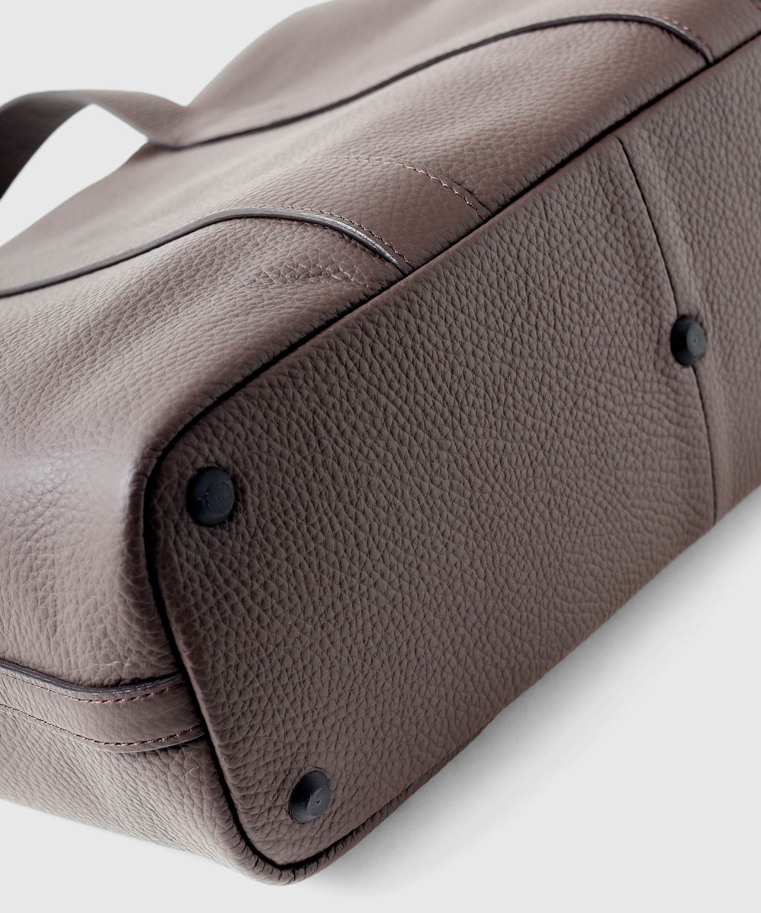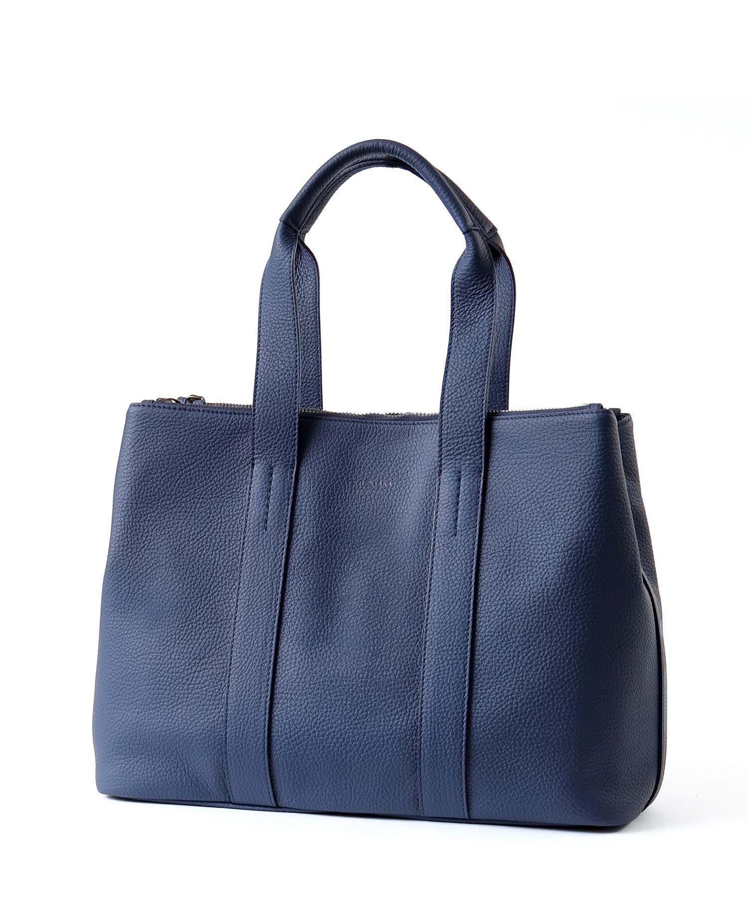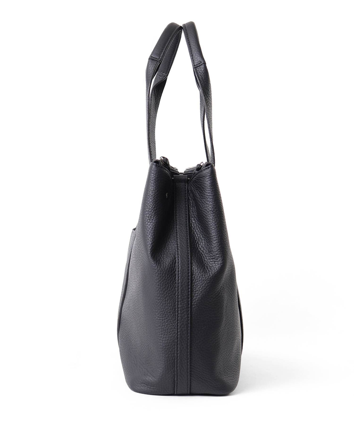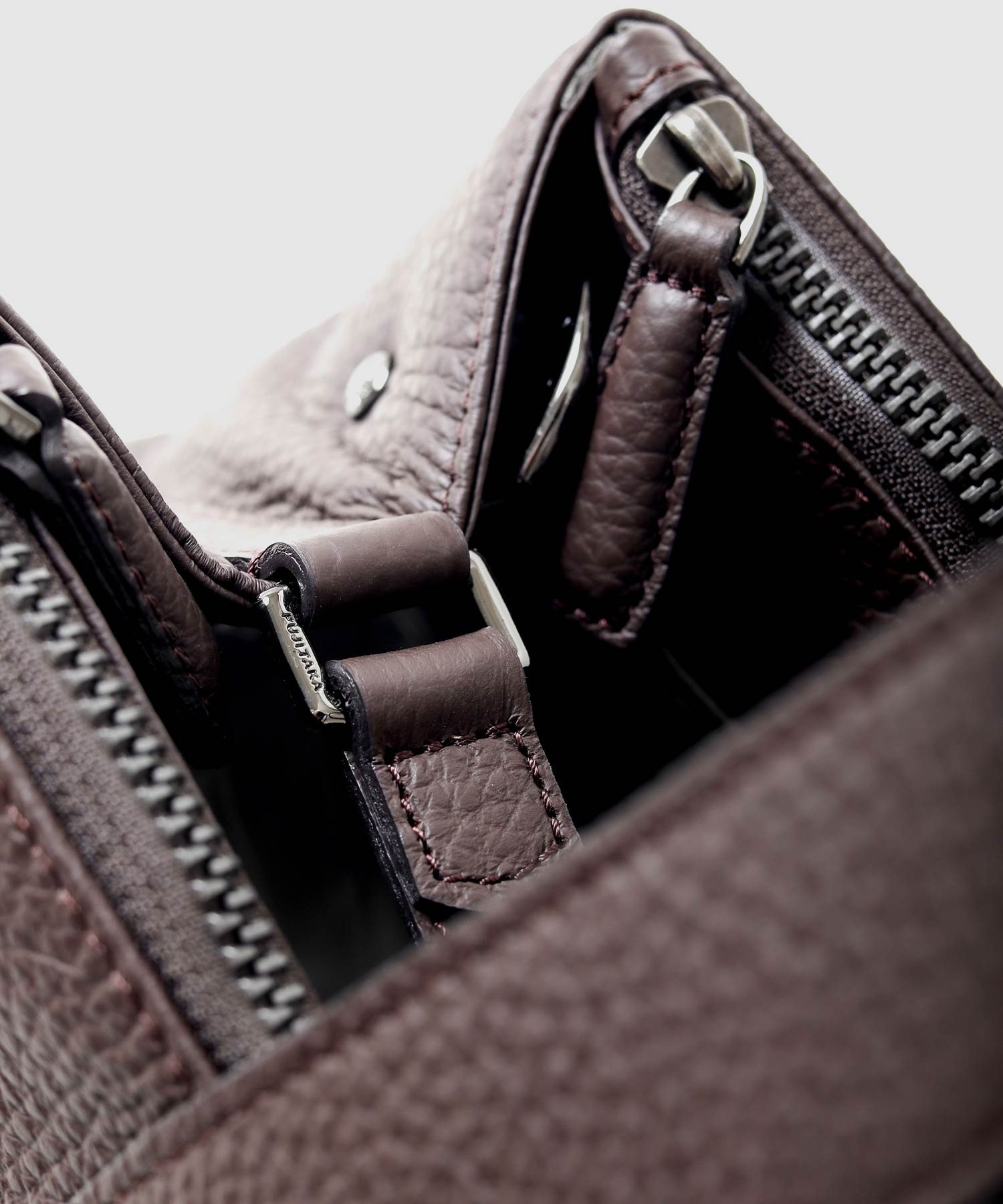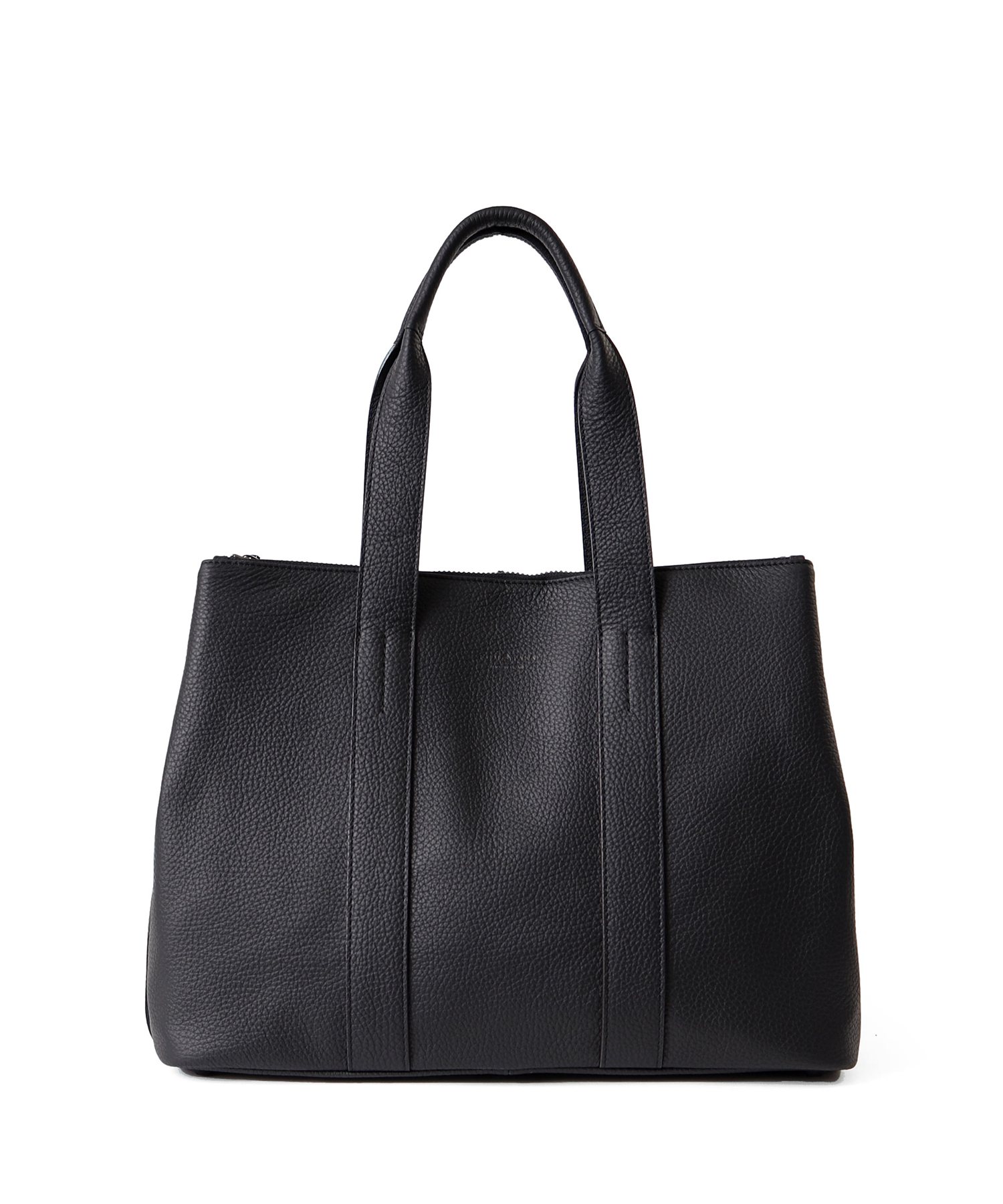 厳選されたヨーロッパ原皮に上品なシボ感が美しいLWGゴールドランク認定のイタリア高級レザーを贅沢に使用した、フジタカ AltaシリーズのB4サイズの2WAYレザートートバッグ。ショルダーベルトが付属しており、肩掛けにも対応しています。ショルダーベルト付属の2WAY仕様で、静穏仕様のゴム底鋲を採用しています。メインコンパートメントの他、前後にファスナー式のコンパートメントがあるトリプルルーム仕様です。
