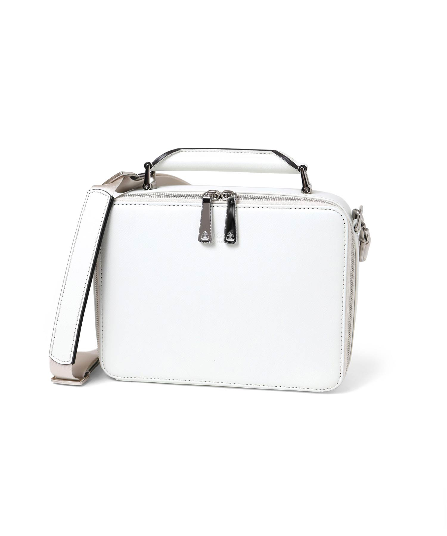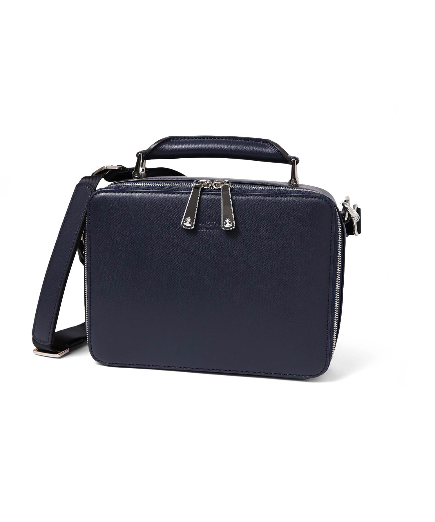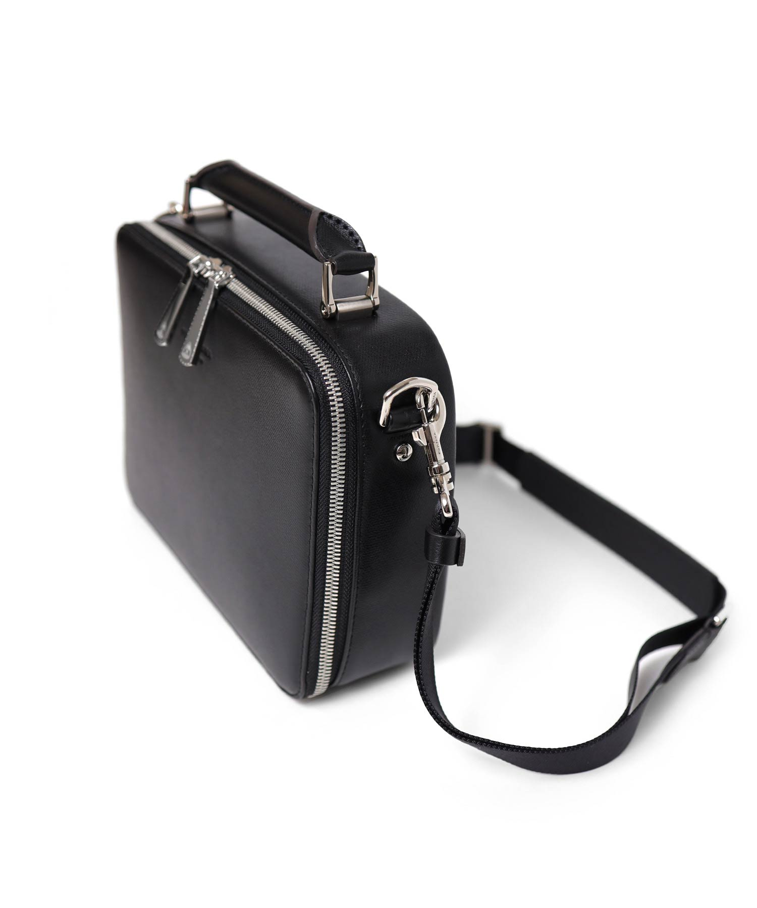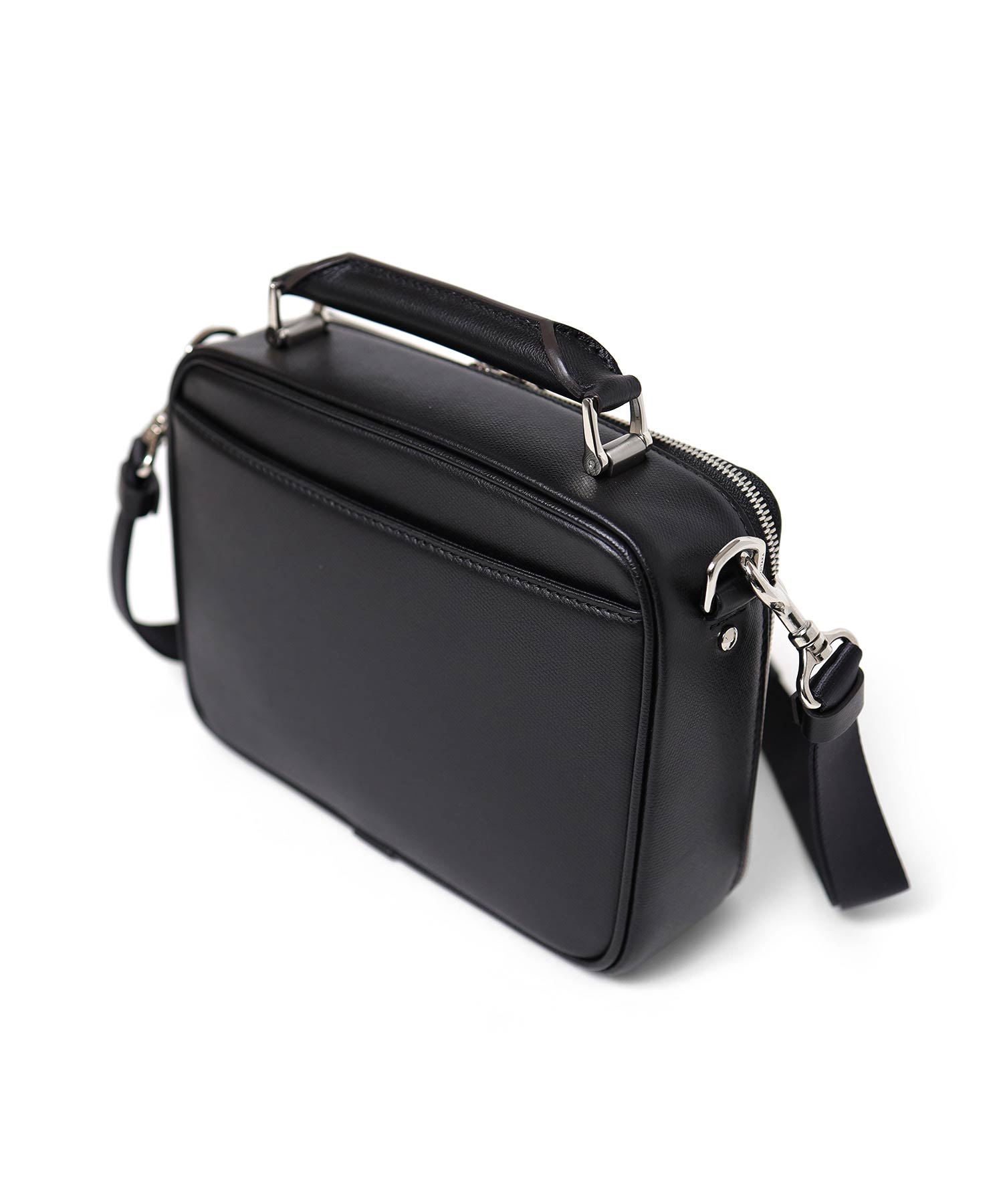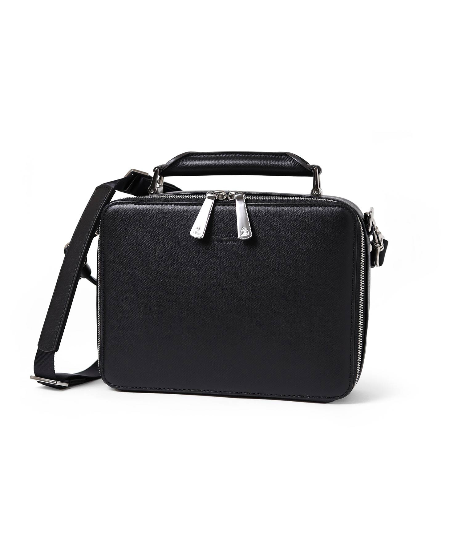 オリジナル金具と型押しレザーがスタイリッシュモダンな品格ただようスクエアショルダーバッグ。ハンドル付きで手持ちとしても使える2WAY仕様で、様々なシーンに合わせてスタイリングをお楽しみいただけます。