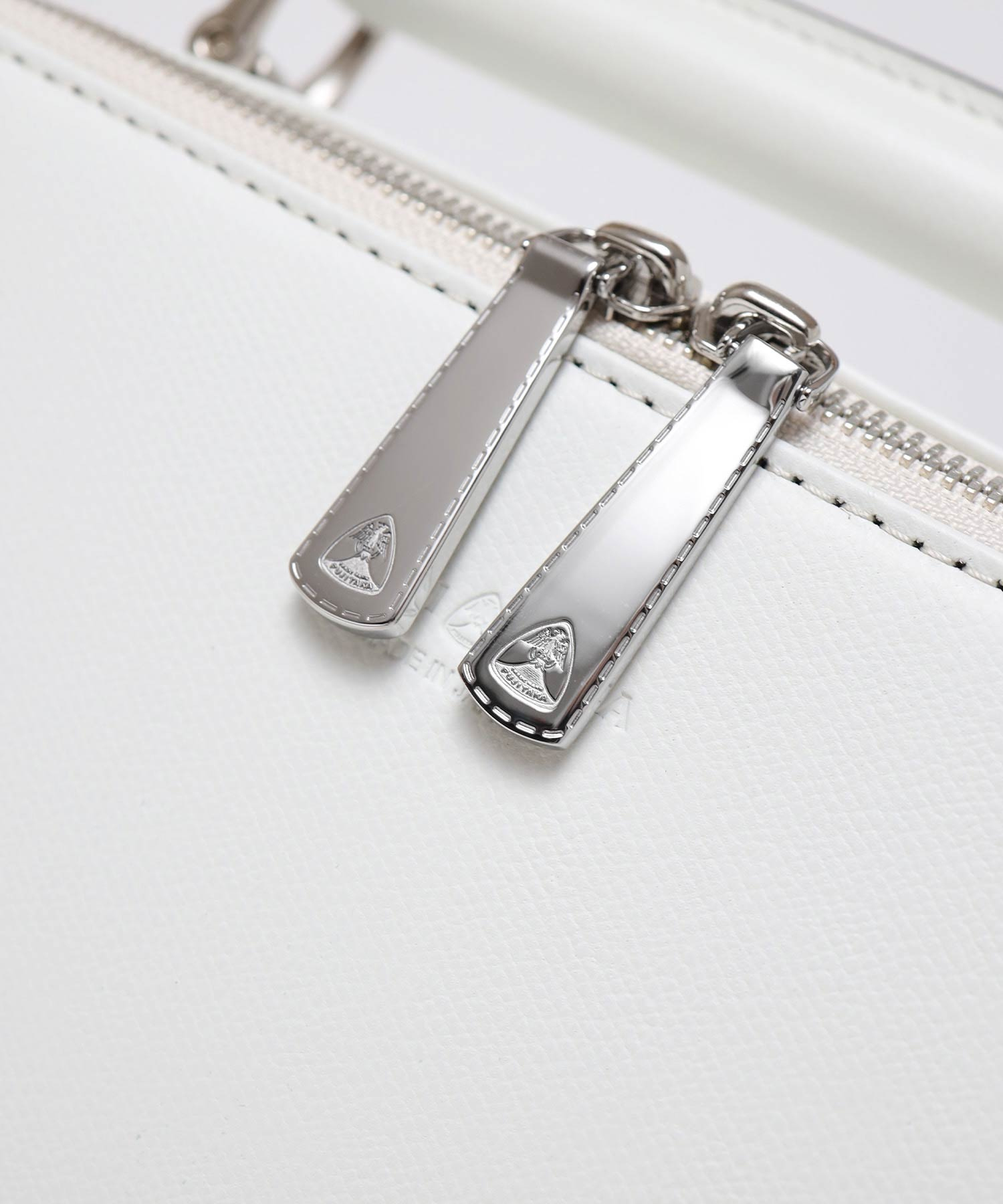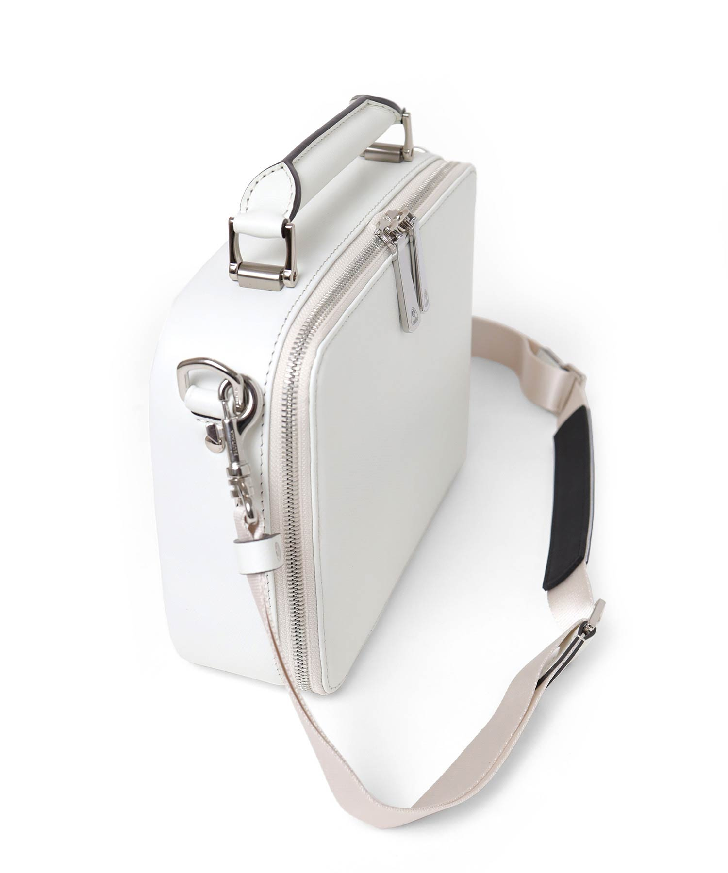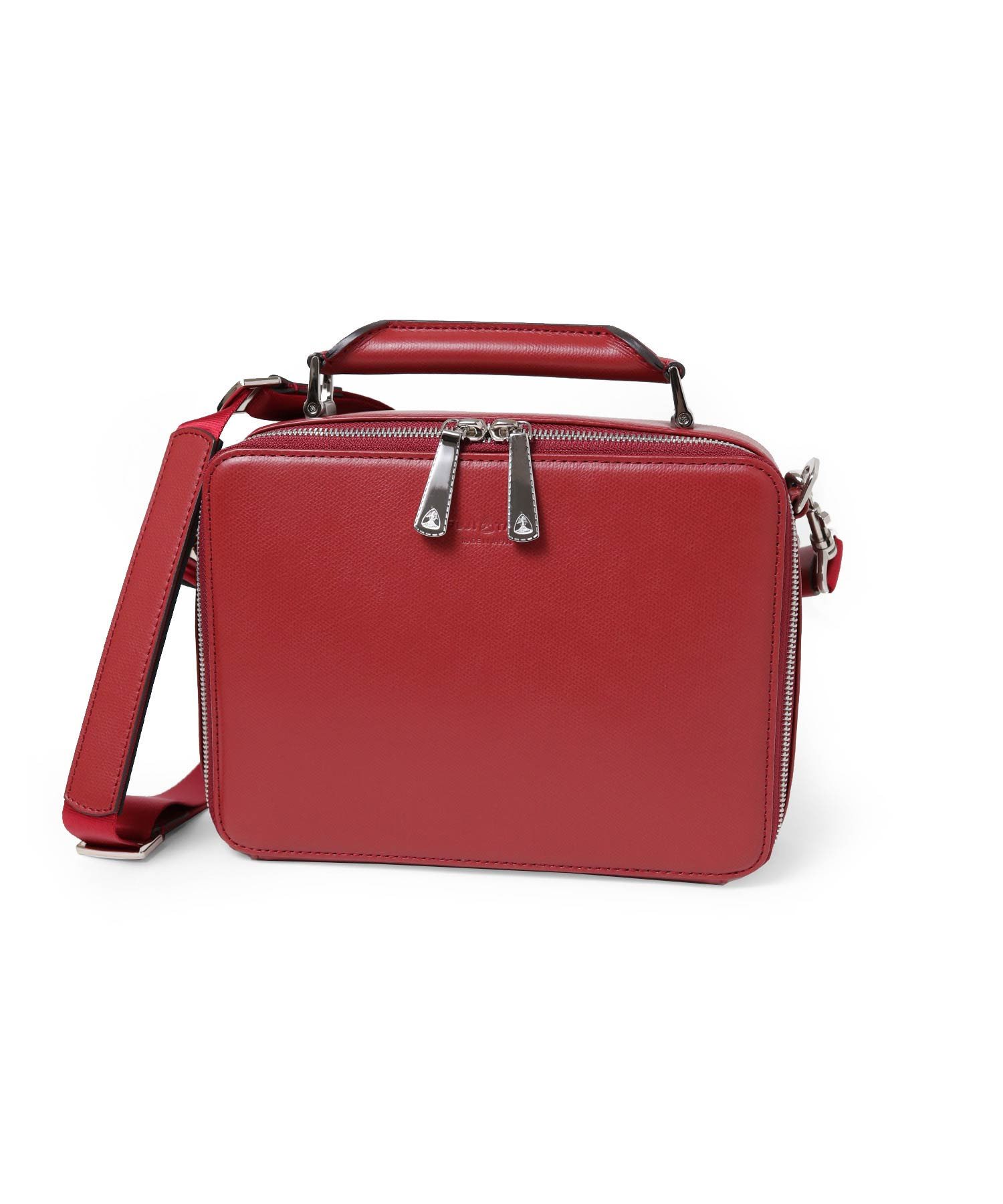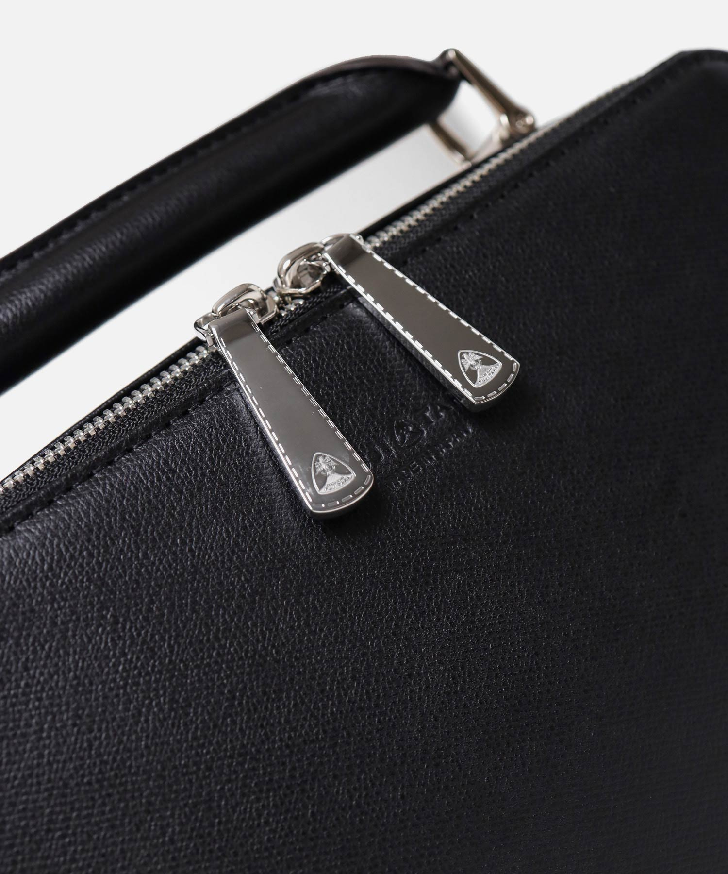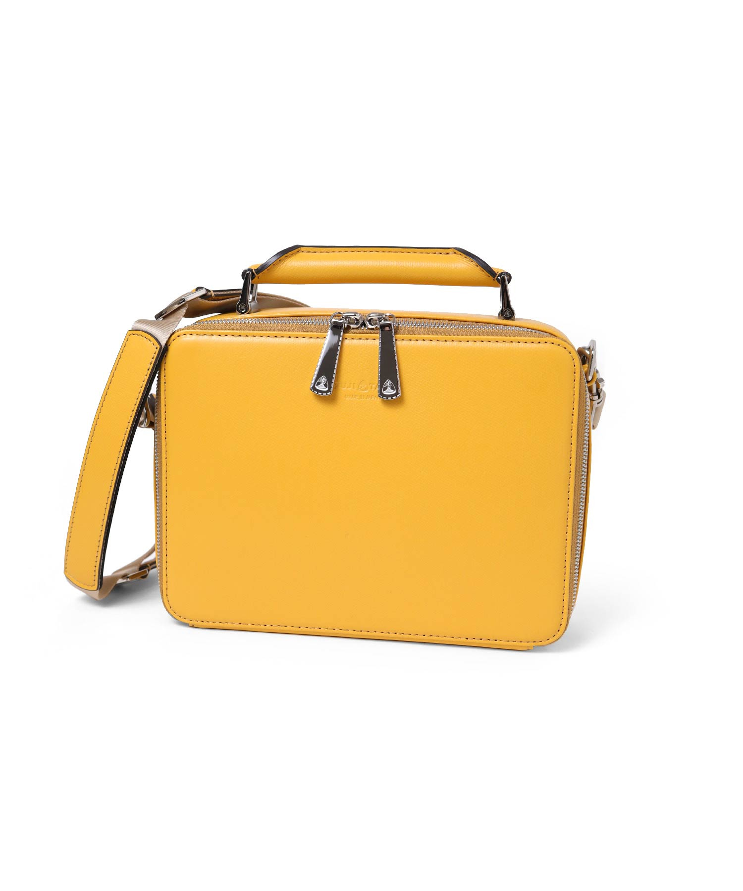 オリジナル金具と型押しレザーがスタイリッシュモダンな品格ただようスクエアショルダーバッグ。ハンドル付きで手持ちとしても使える2WAY仕様で、様々なシーンに合わせてスタイリングをお楽しみいただけます。