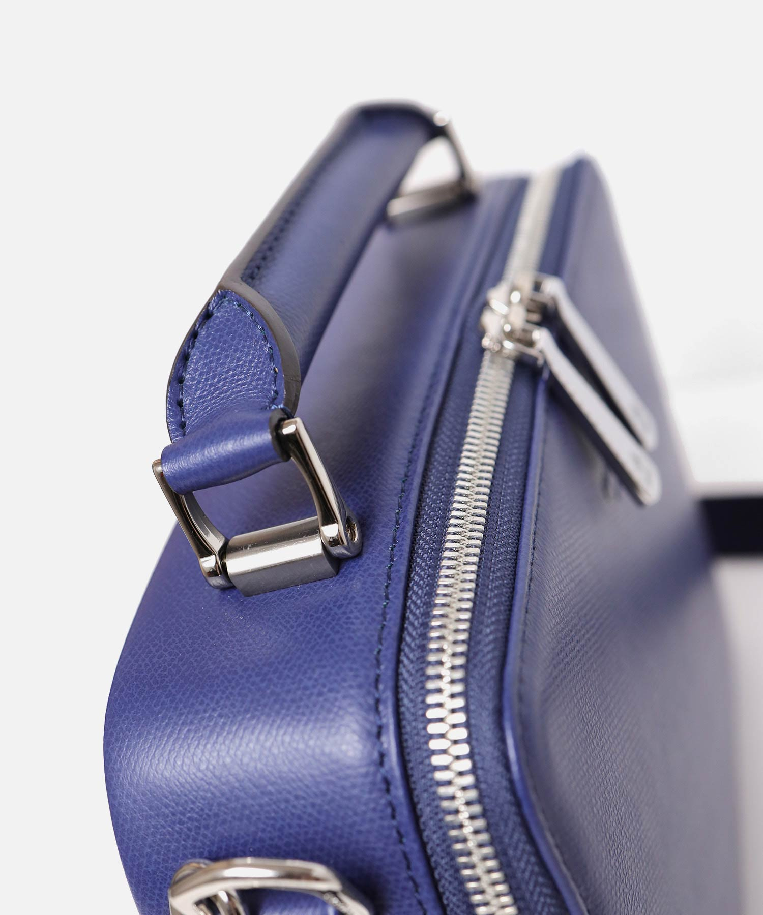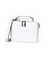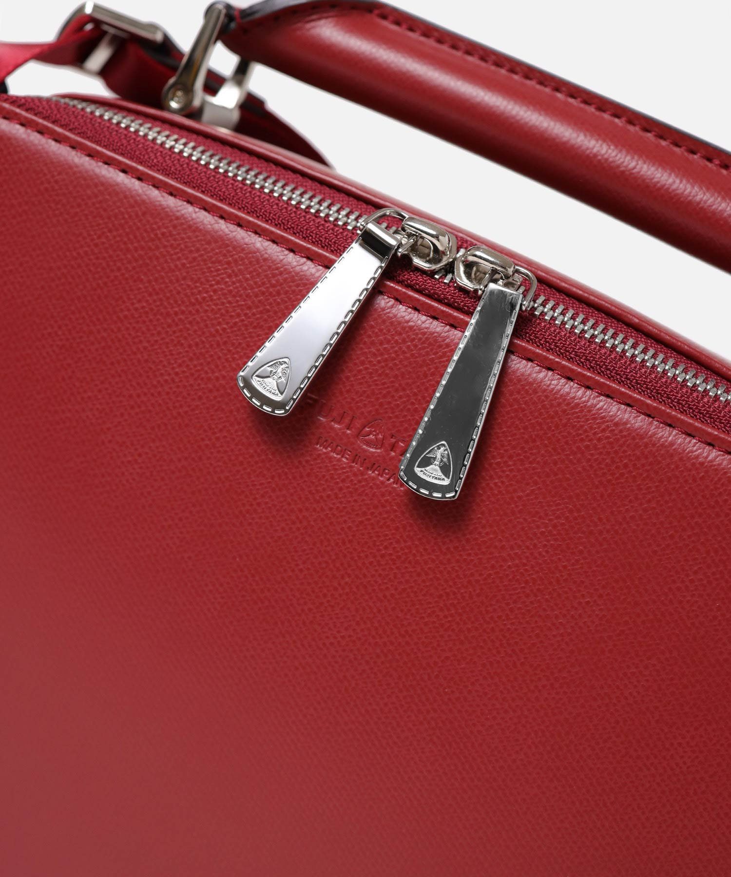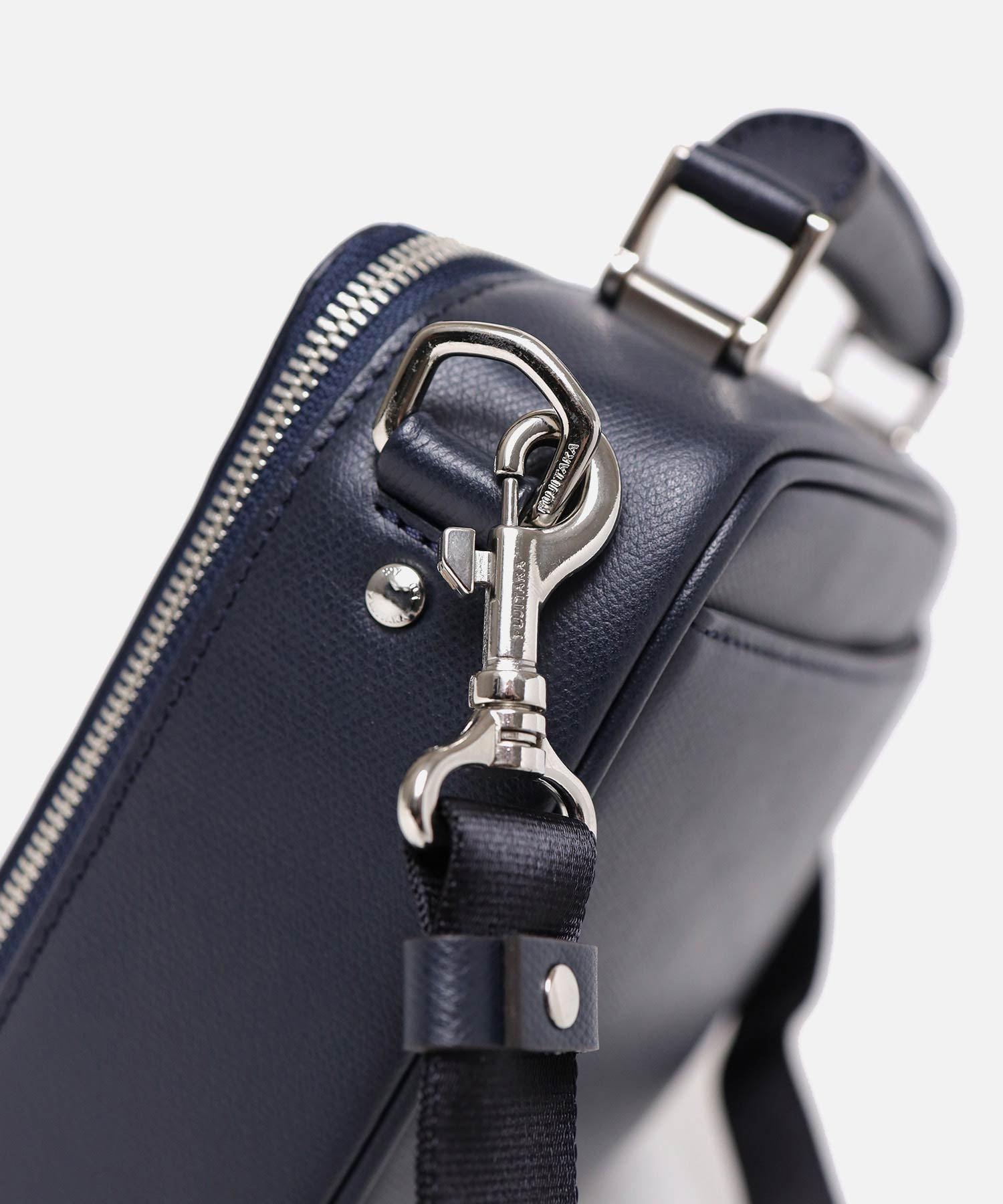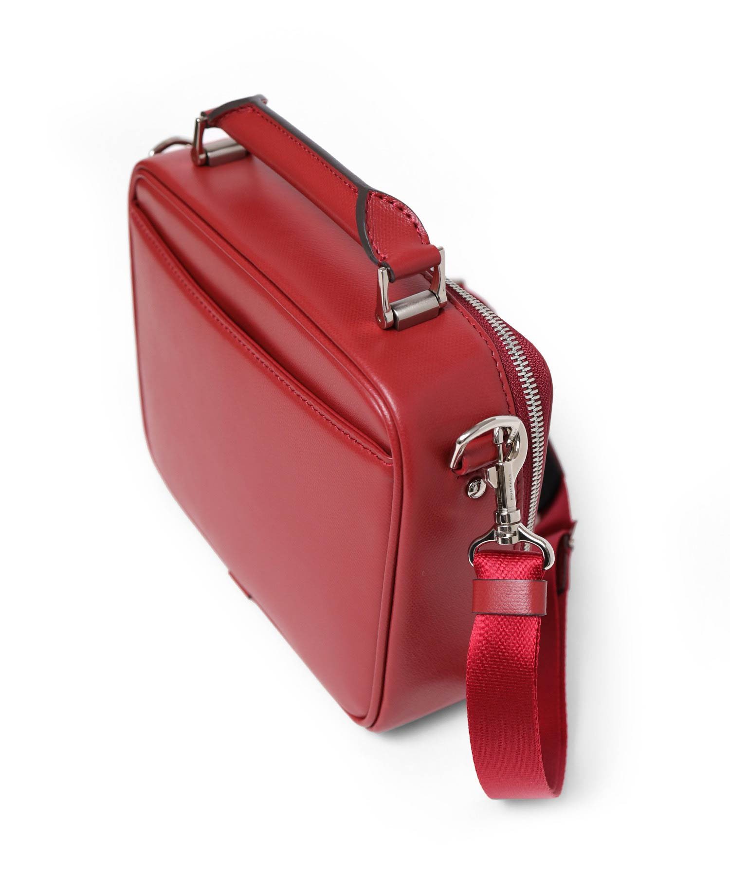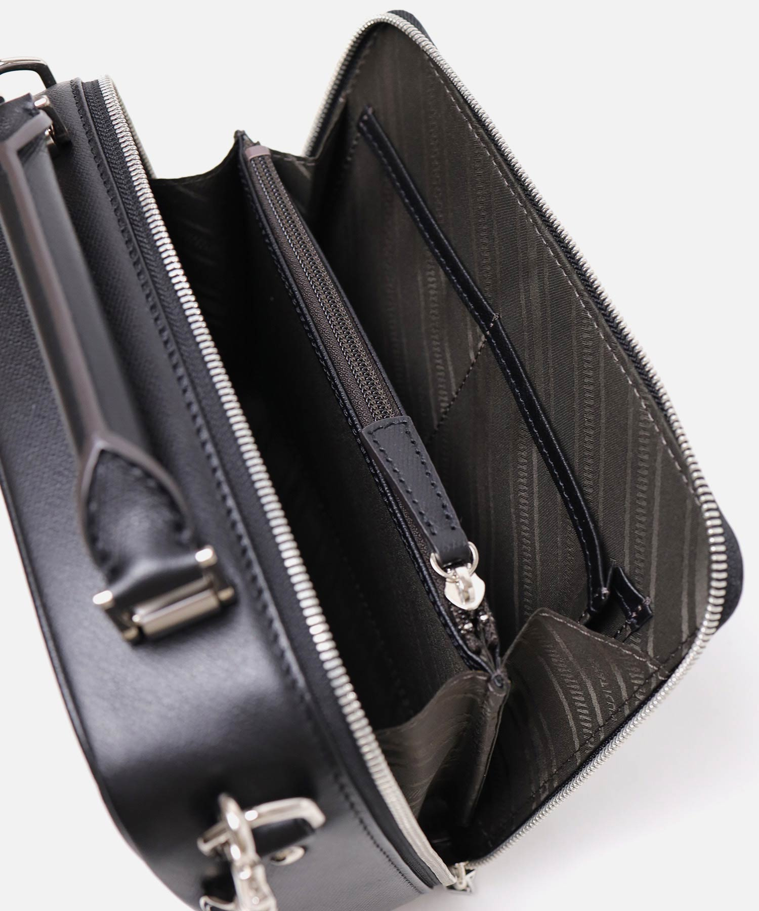 オリジナル金具と型押しレザーがスタイリッシュモダンな品格ただようスクエアショルダーバッグ。ハンドル付きで手持ちとしても使える2WAY仕様で、様々なシーンに合わせてスタイリングをお楽しみいただけます。