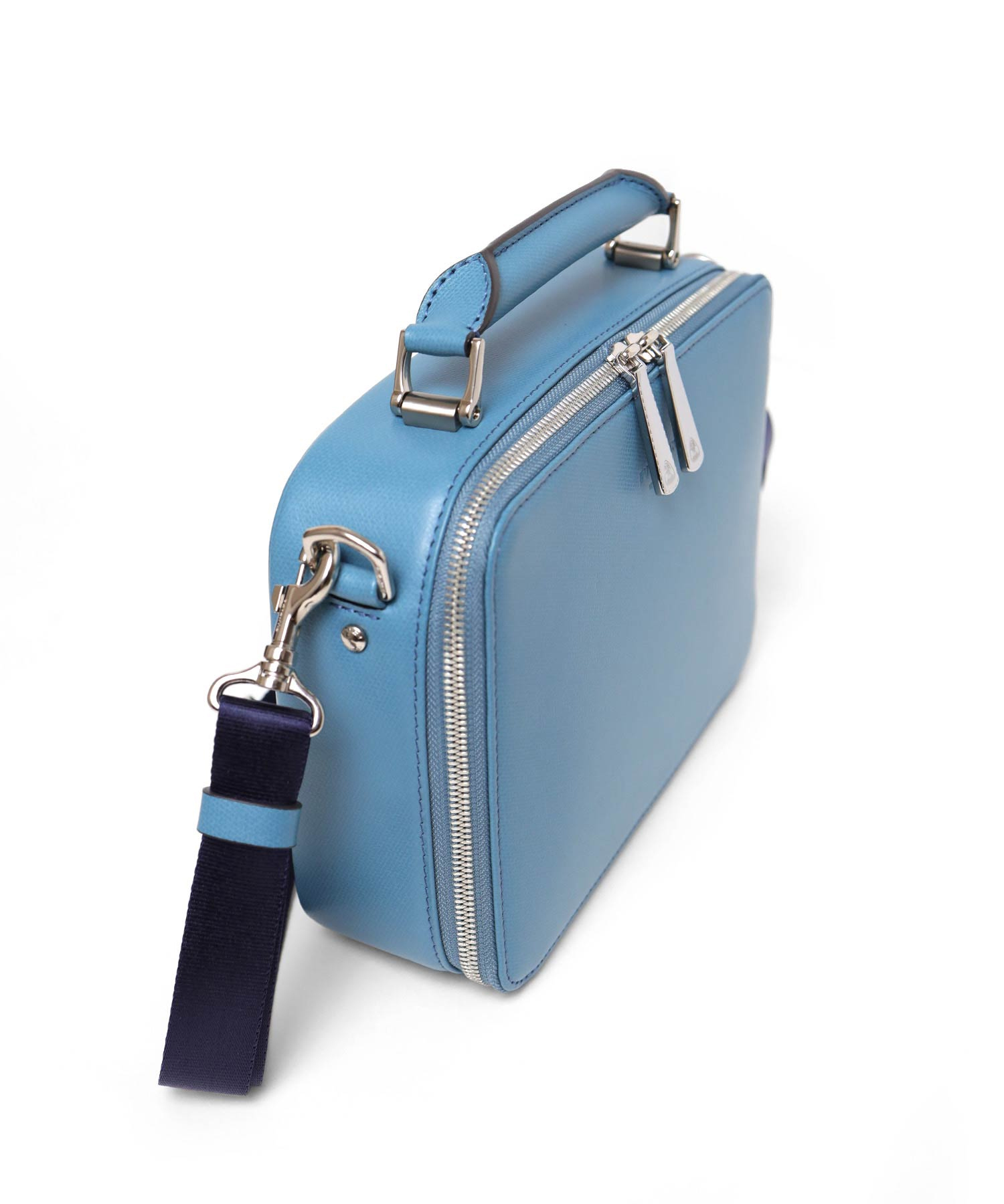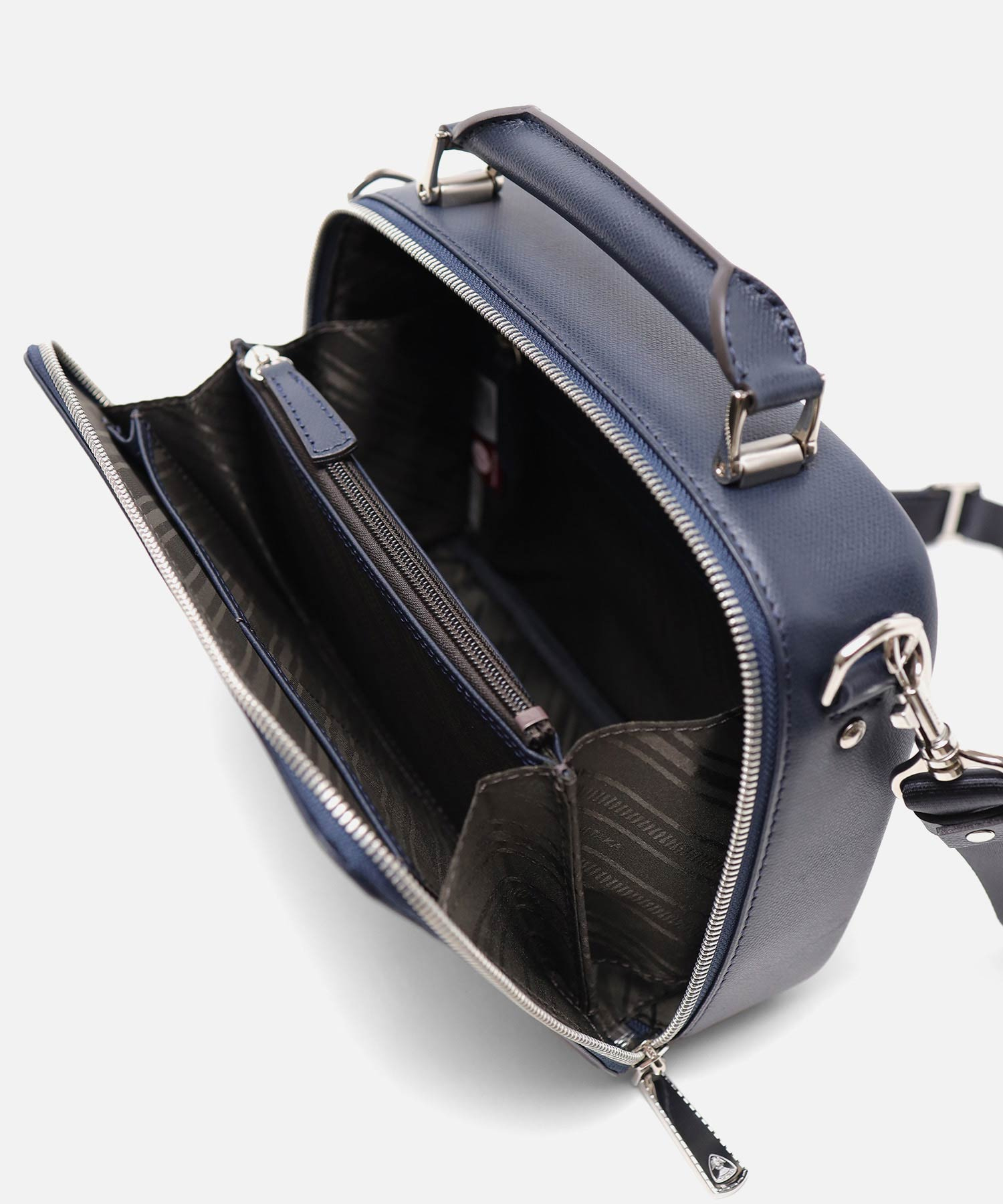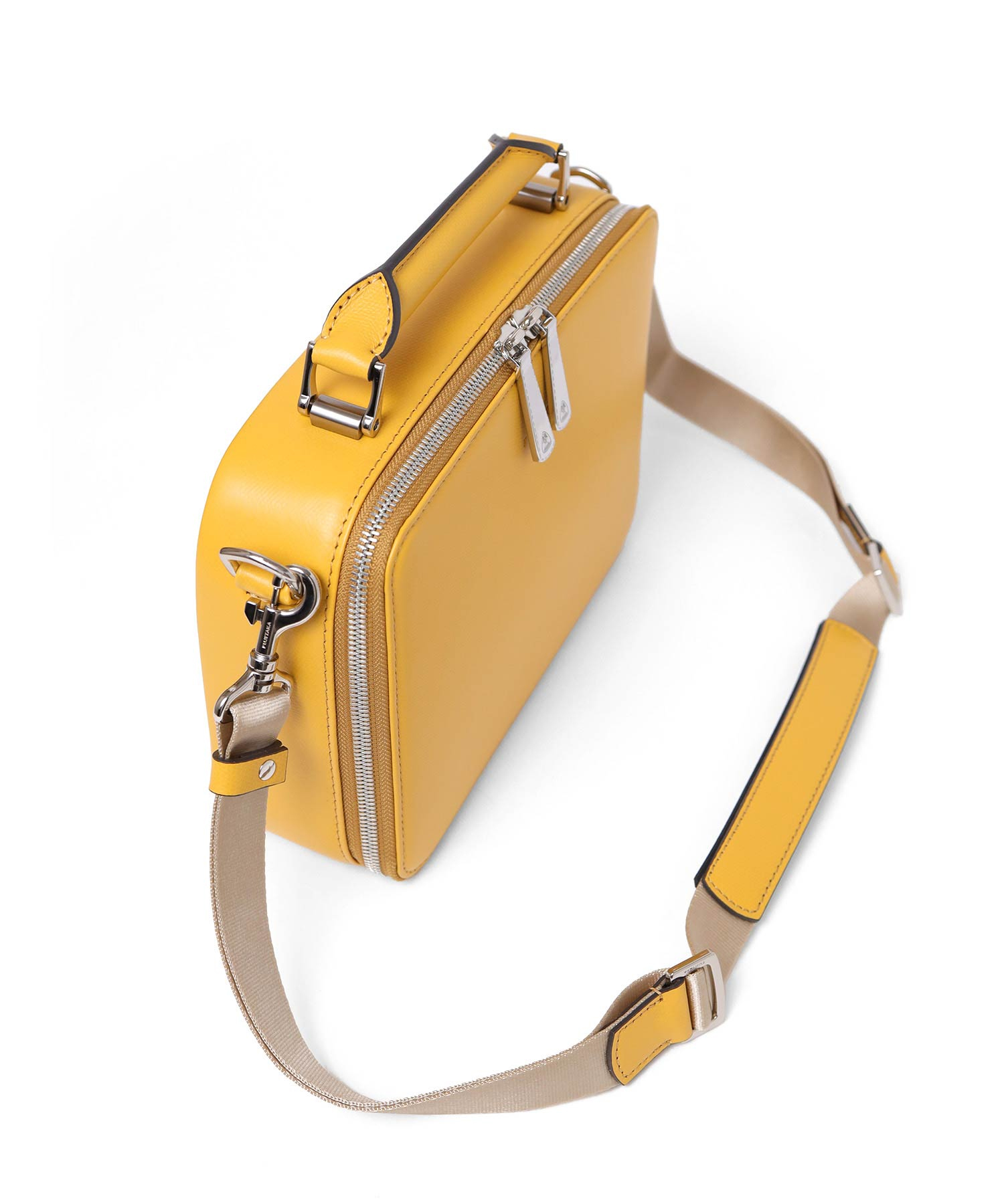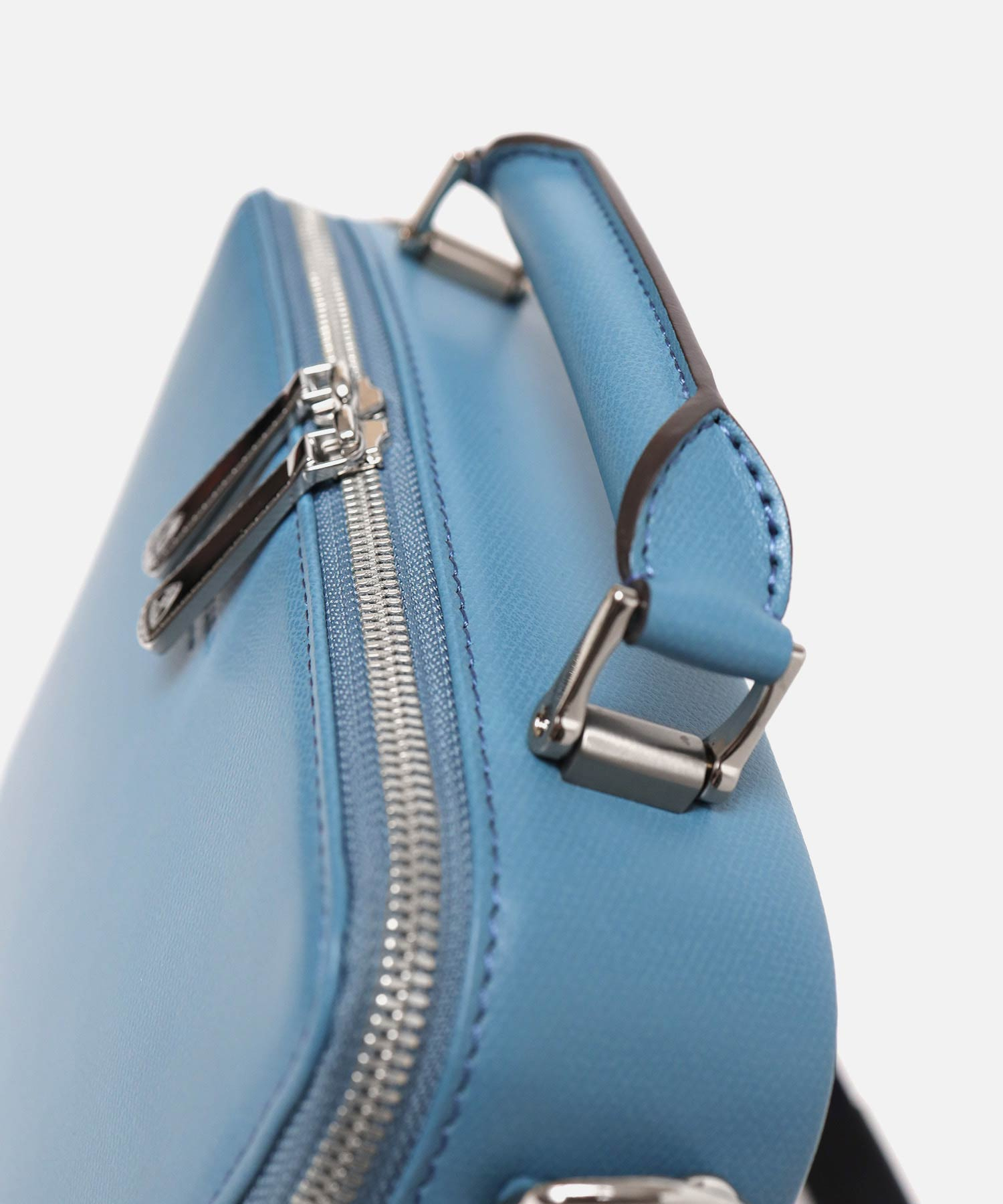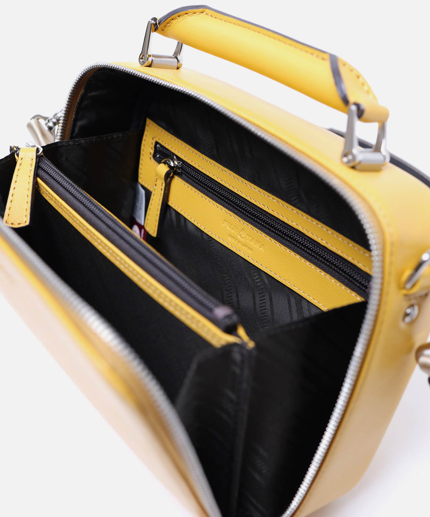 オリジナル金具と型押しレザーがスタイリッシュモダンな品格ただようスクエアショルダーバッグ。ハンドル付きで手持ちとしても使える2WAY仕様で、様々なシーンに合わせてスタイリングをお楽しみいただけます。