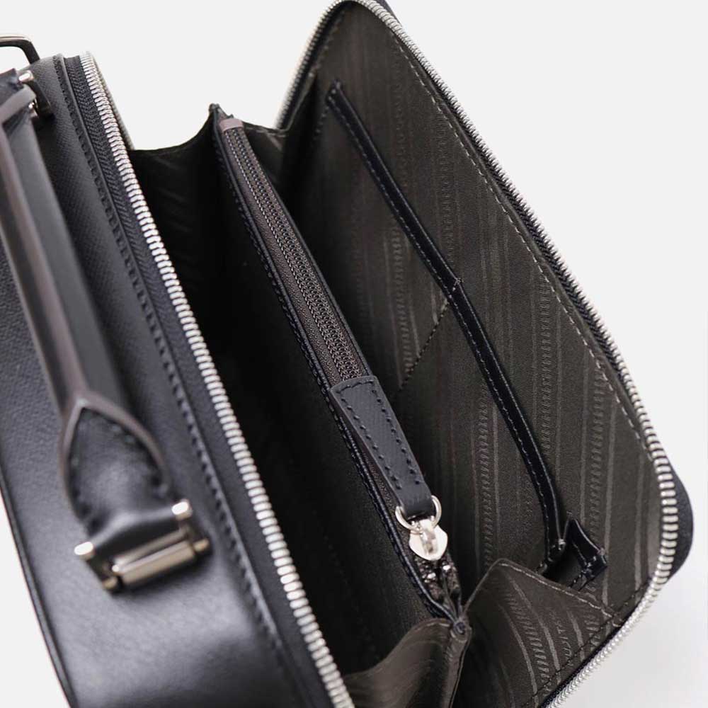 メインファスナーの引手金具には、ステッチのデザインがポイントのフジタカオリジナルの金具を採用。ステンレスをポリッシュし、変色しない加工を施したこだわりの金具です。