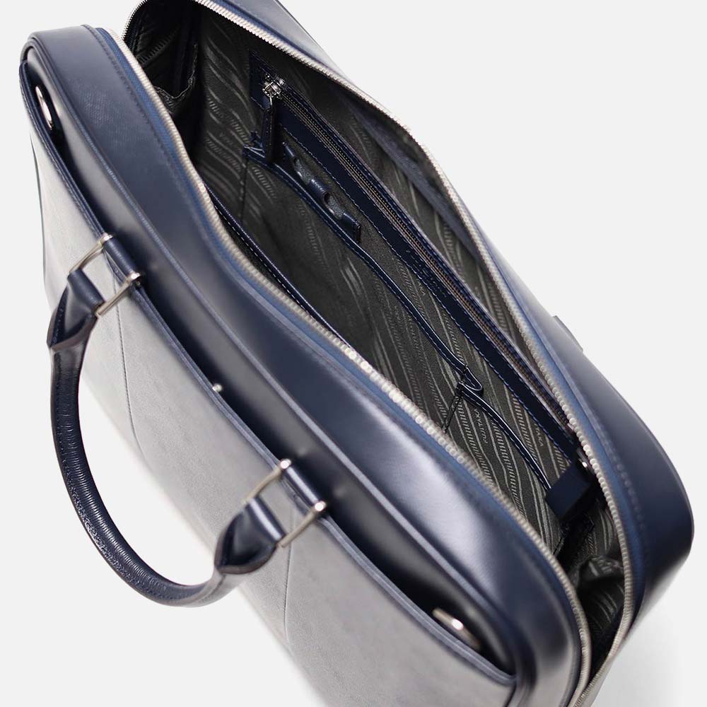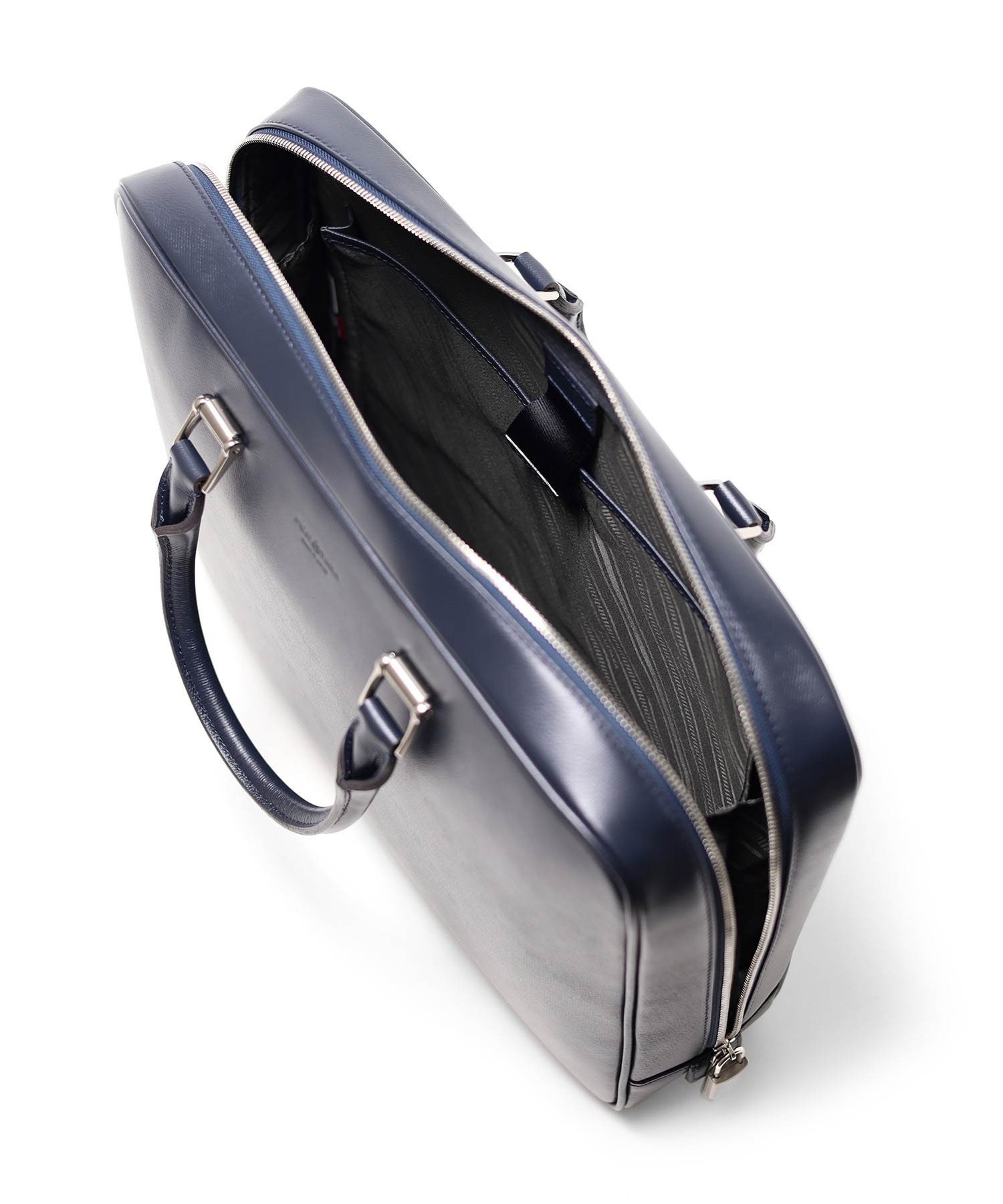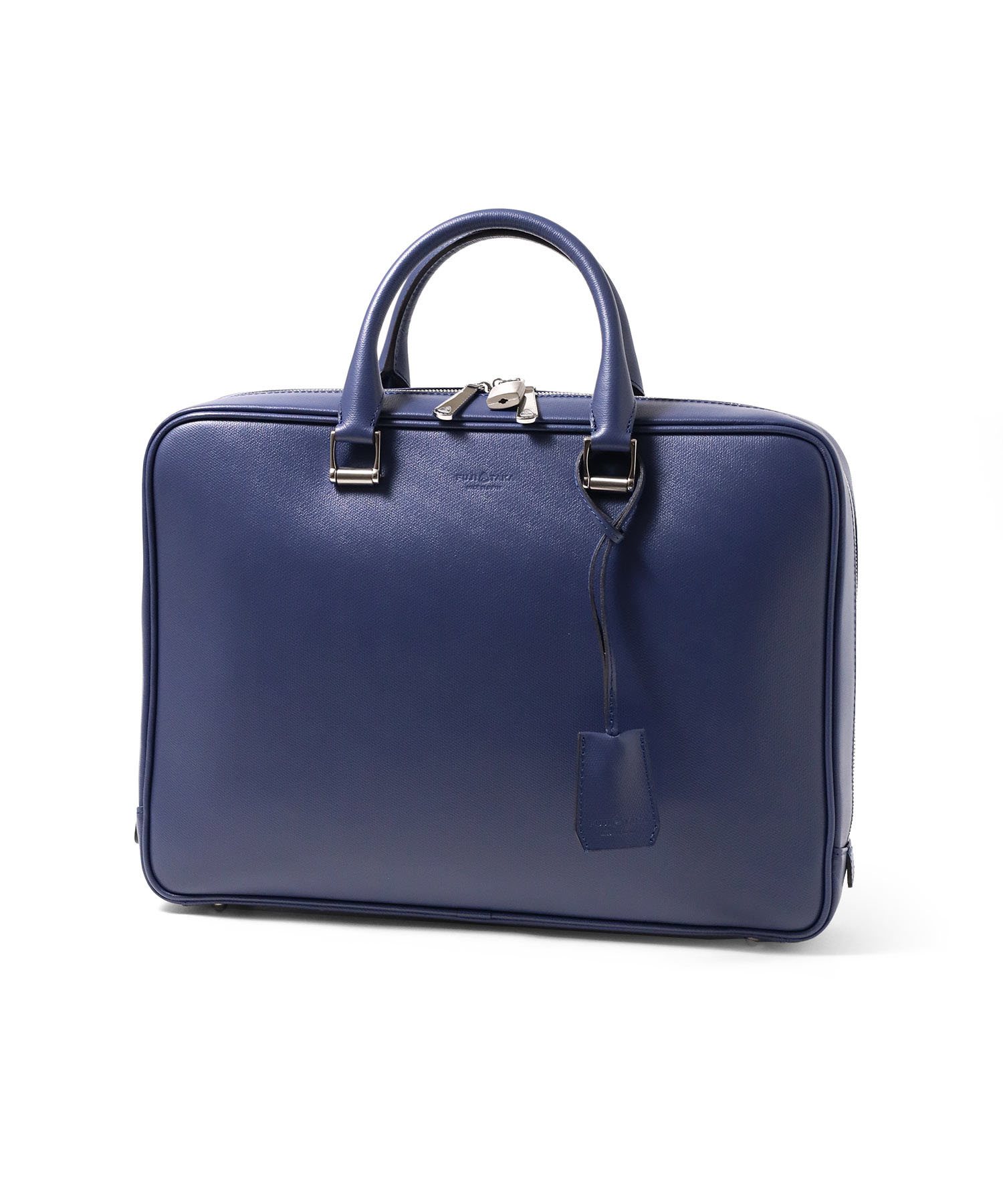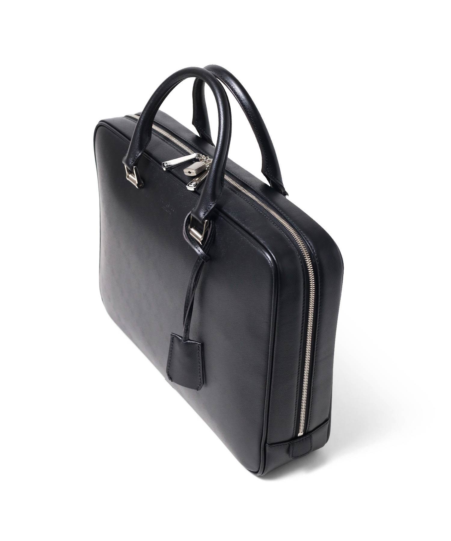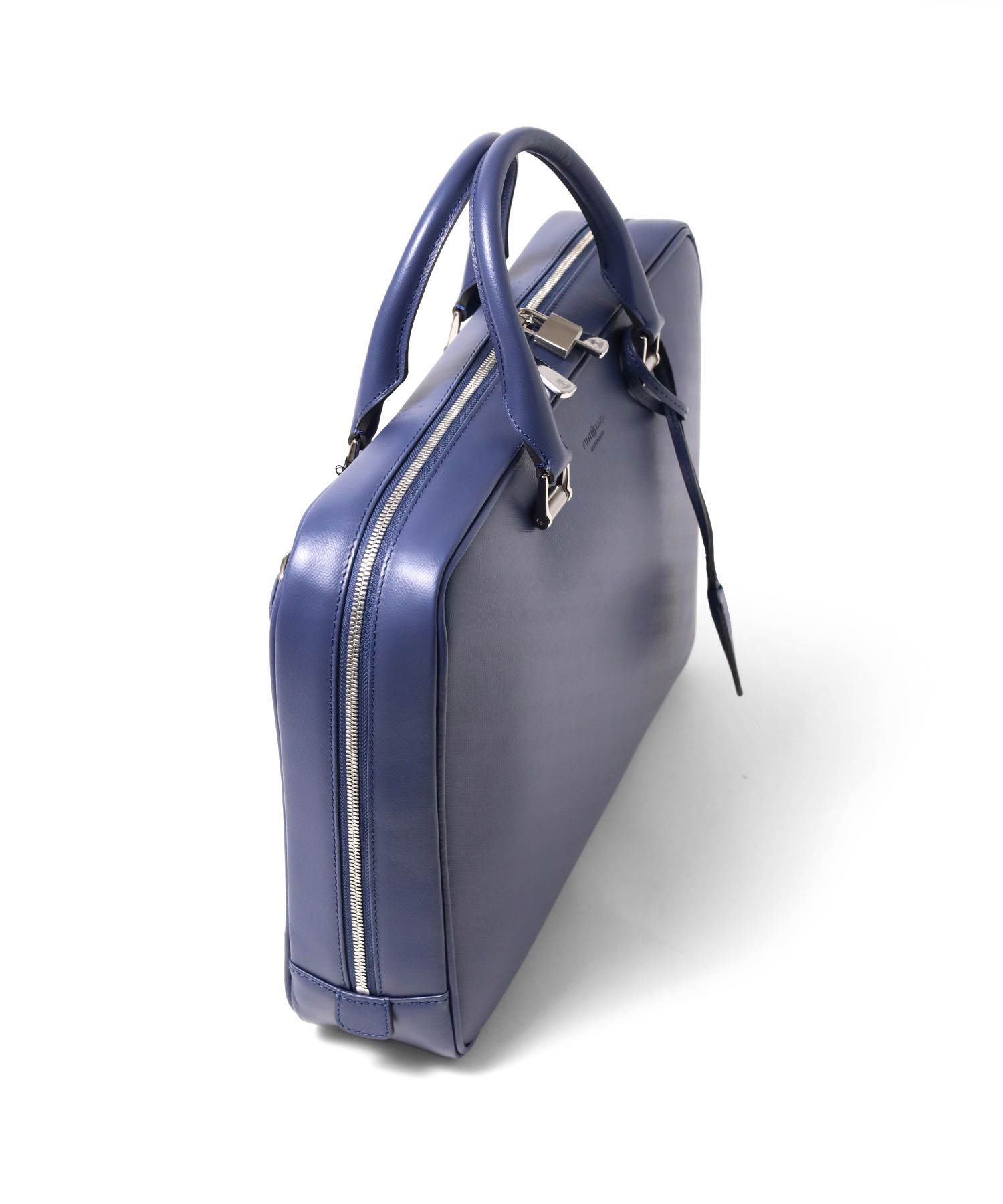 上品さと高級感をあわせもったフジタカのA4サイズのビジネスバッグ。ファスナーを両サイドまでぐるっと落とした三方開きの仕様は、口開きを良くしビジネスシーンでの使いやすさも考慮した、フジタカならではのデザインです。厳選された上質な北米の原皮にこだわり、技術の高さで定評のある日本のタンナーで染色し、防水(スコッチガード)加工を施した牛革をメイン素材に採用しています。