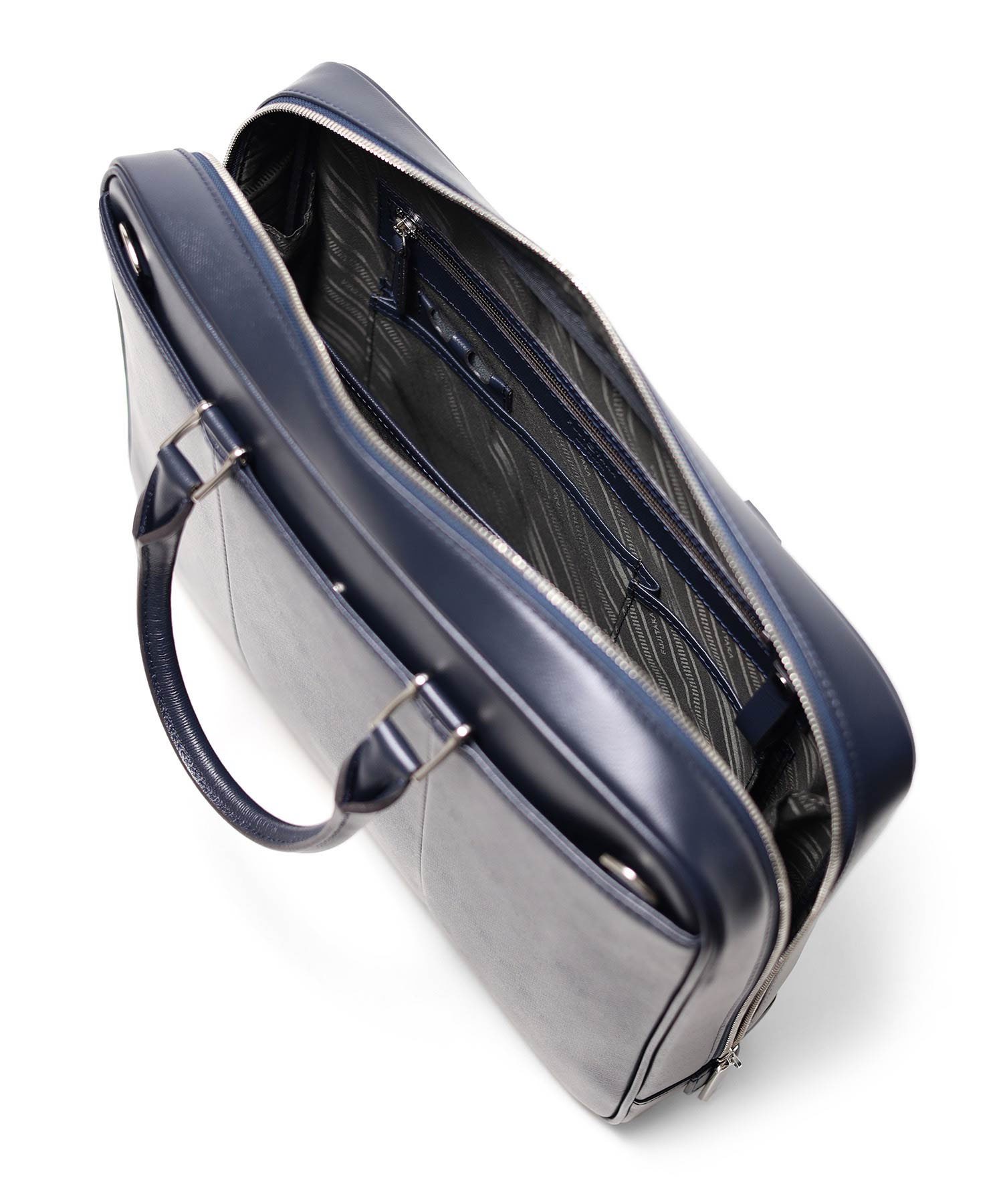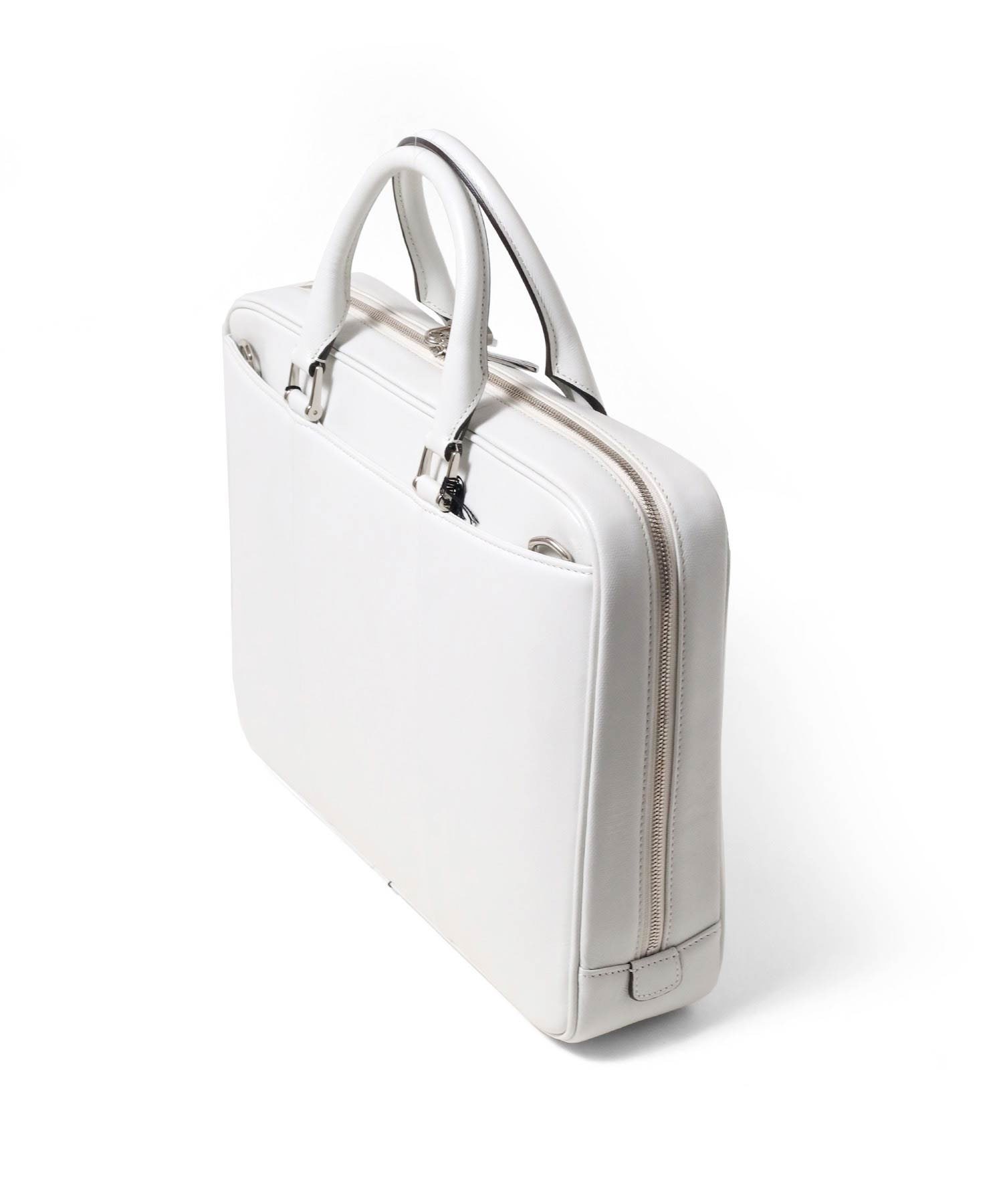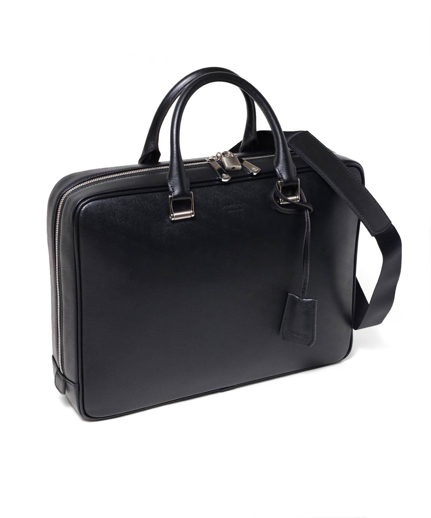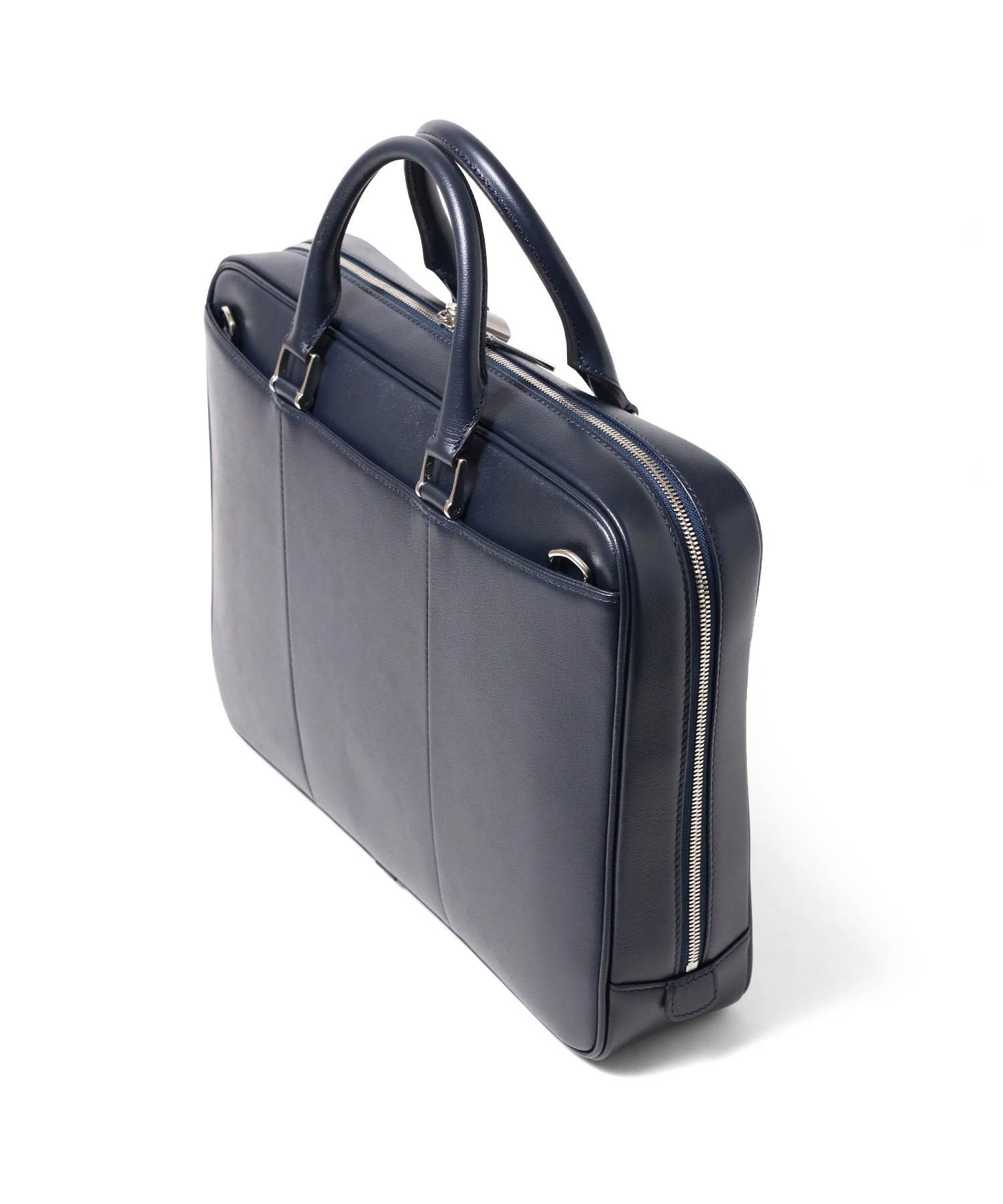 A4サイズのスクエアなフォルムが特徴のビジネスバッグ。A4バインダーファイルを入れて少し横幅に余裕があるサイズ感です。またショルダーベルトも付属します。