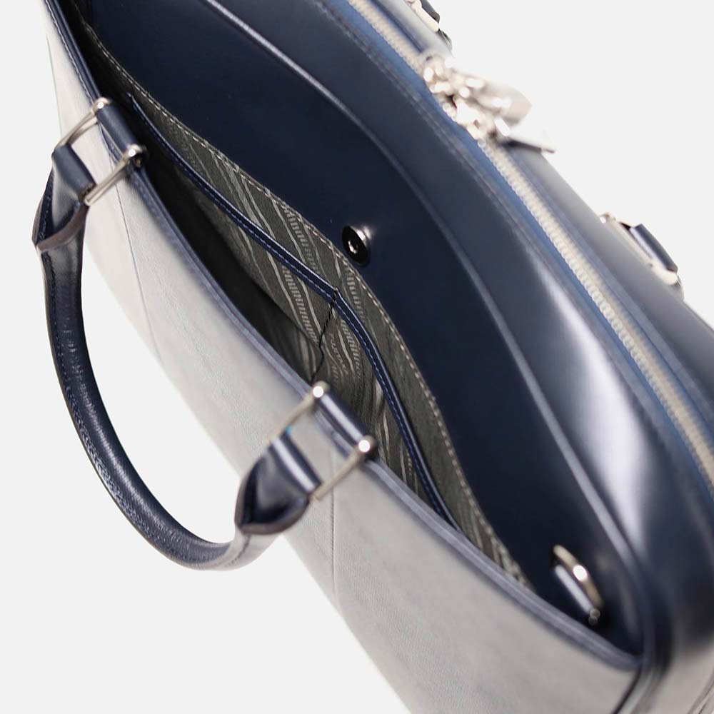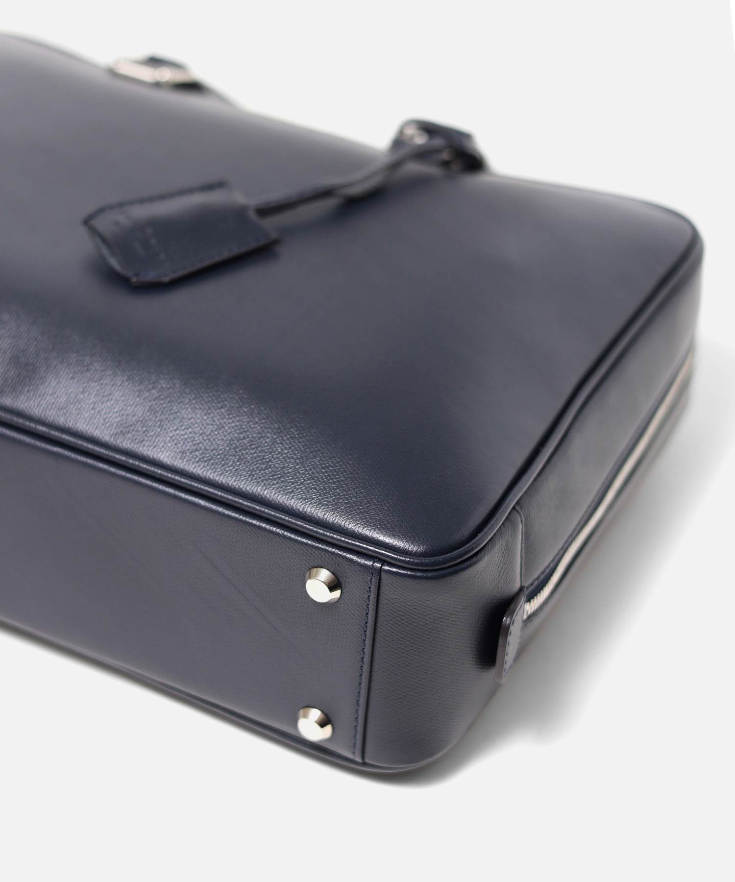ナチュラルな型入れにするため、厳選された上質な北米の原皮にこだわり、技術の高さで定評のある日本のタンナーで染色された牛革をメイン素材に採用したA4ビジネスバッグ。吟面に少量のオイルを加えて柔らかなタッチ感に仕上げたのち、リガーと呼ばれる型押しを施し、オリジナルで丁寧に作り込んだ素材です。またスコッチガード加工を施した防水レザーですので、雨の日や梅雨の季節も気にすることなくお持ちいただけます。