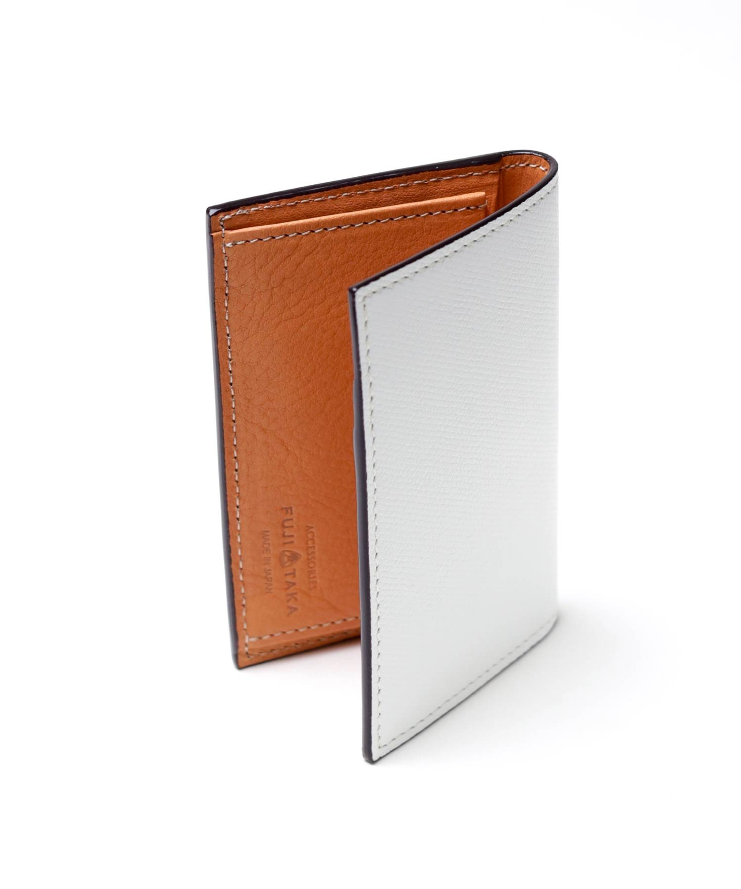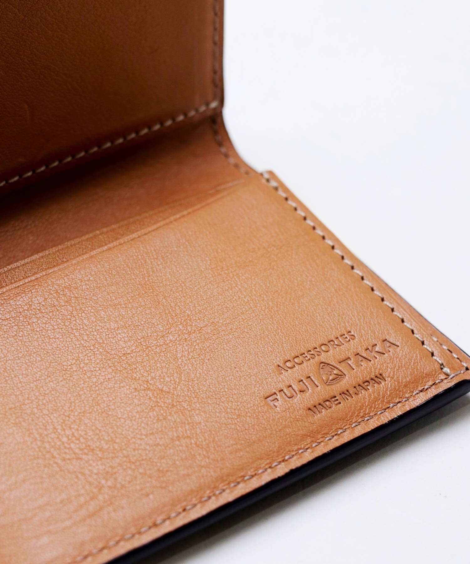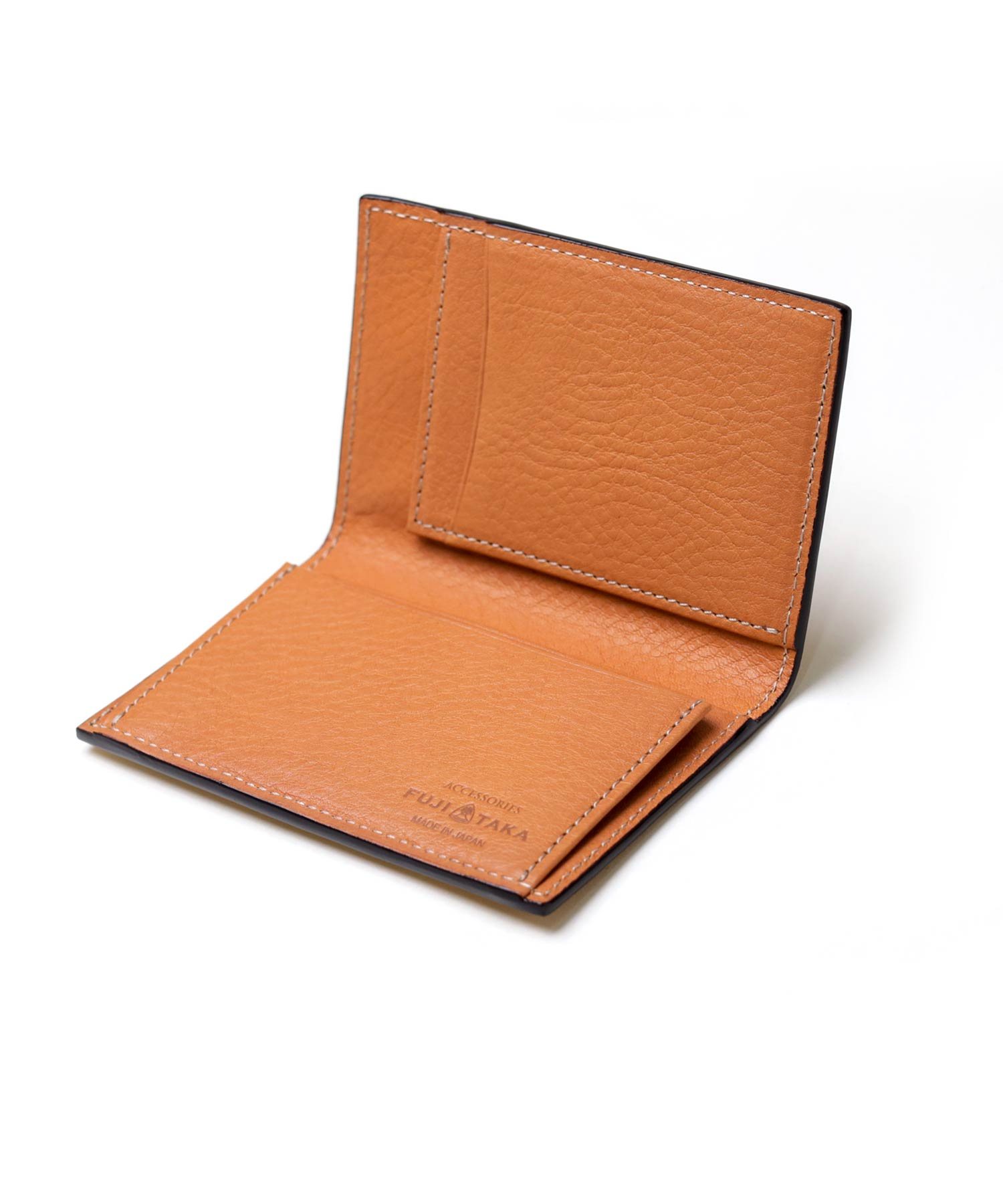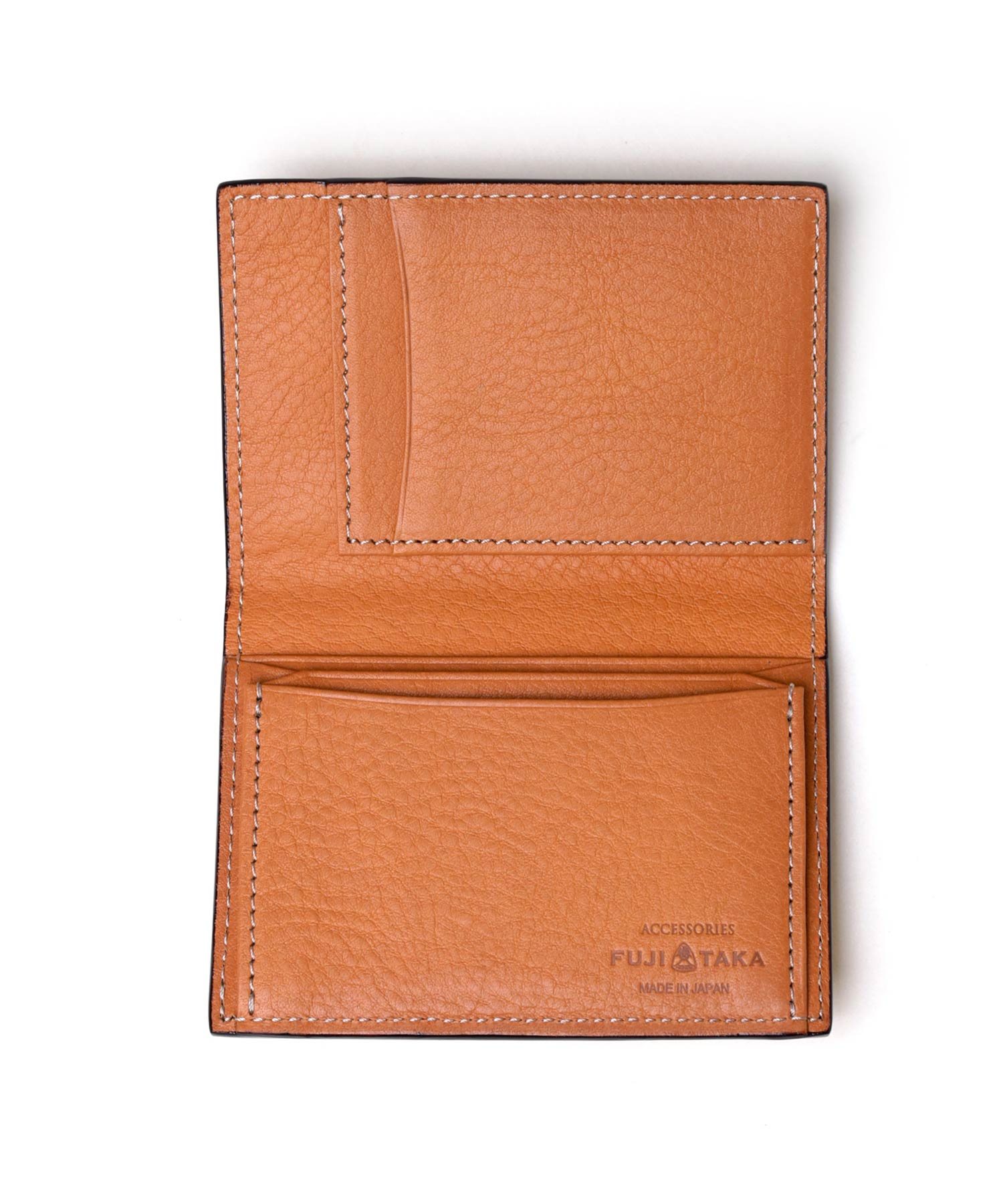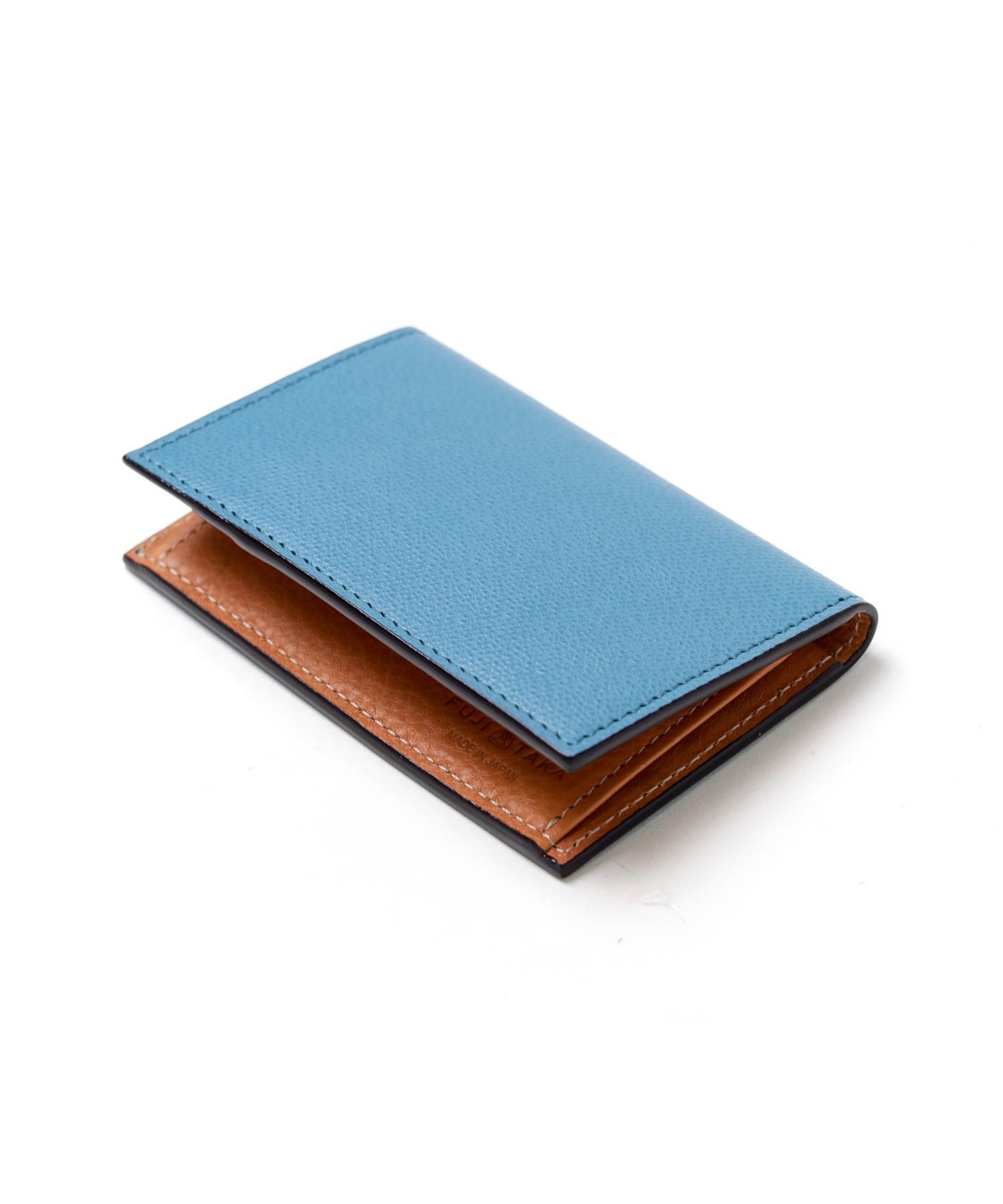 型押しながらもソフトな吟面のタッチ感やもっちりとした風合い、吟浮きが極端に少ない等、丁寧に作り込んだ国内最高峰の型押し素材を使ったFUJITAKAの風琴マチ仕様の名刺入れ。
