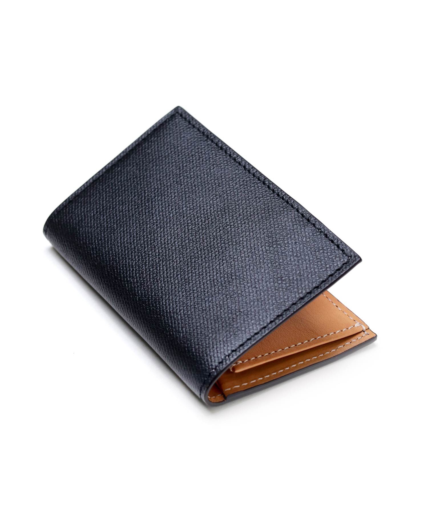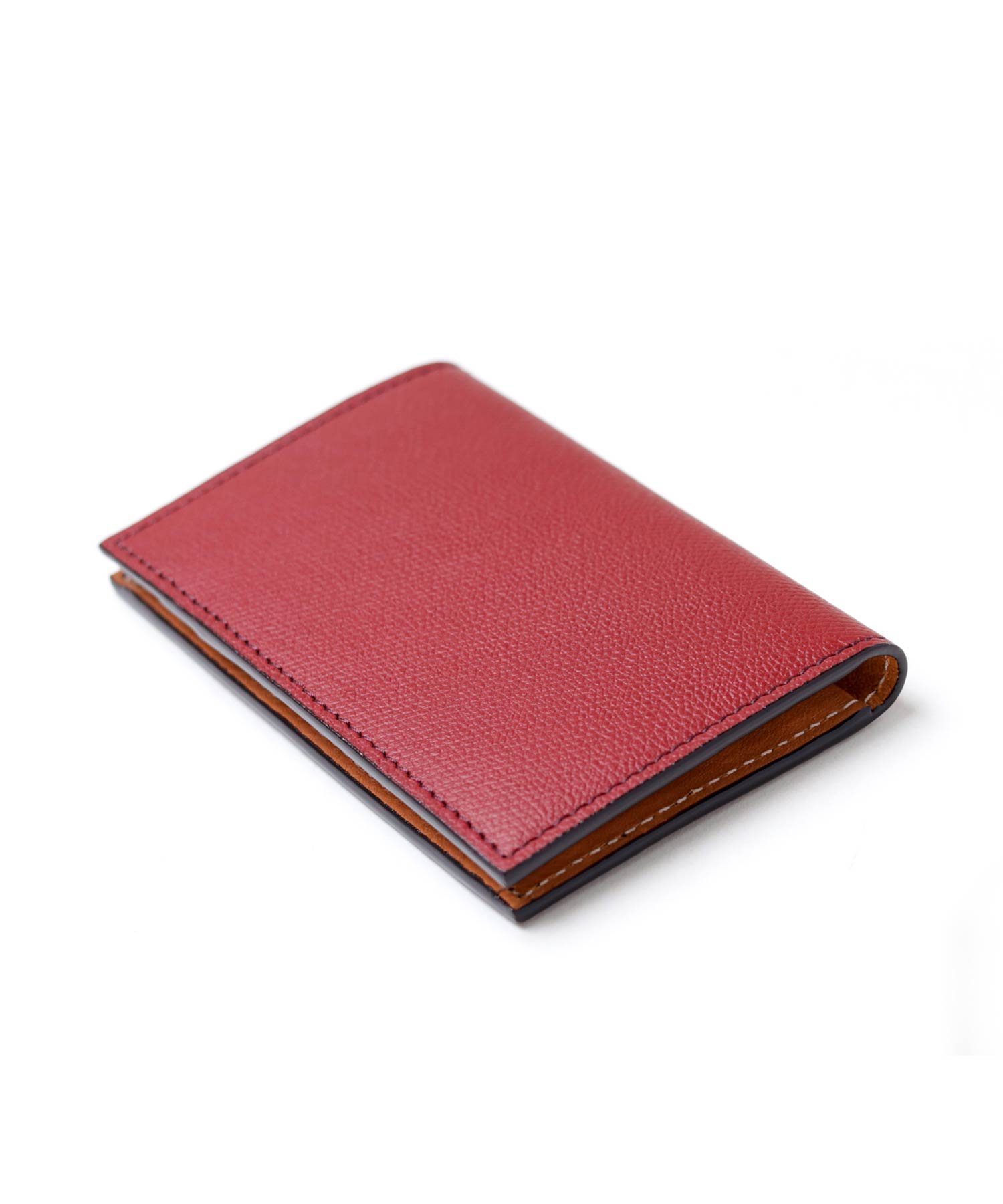 吟面に少量のオイルを加えて柔らかなタッチ感に仕上げたのち、リガーと呼ばれる型押しを施し、オリジナルで丁寧に作り込んだ素材を主素材に使用。型押しながらもソフトな吟面のタッチ感やもっちりとした風合い、吟浮きが極端に少ない等、丁寧に作り込んだ国内最高峰の型押し素材を使った風琴マチ仕様の名刺入れです。