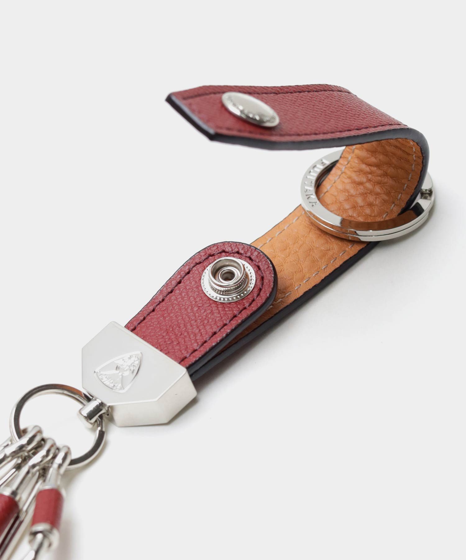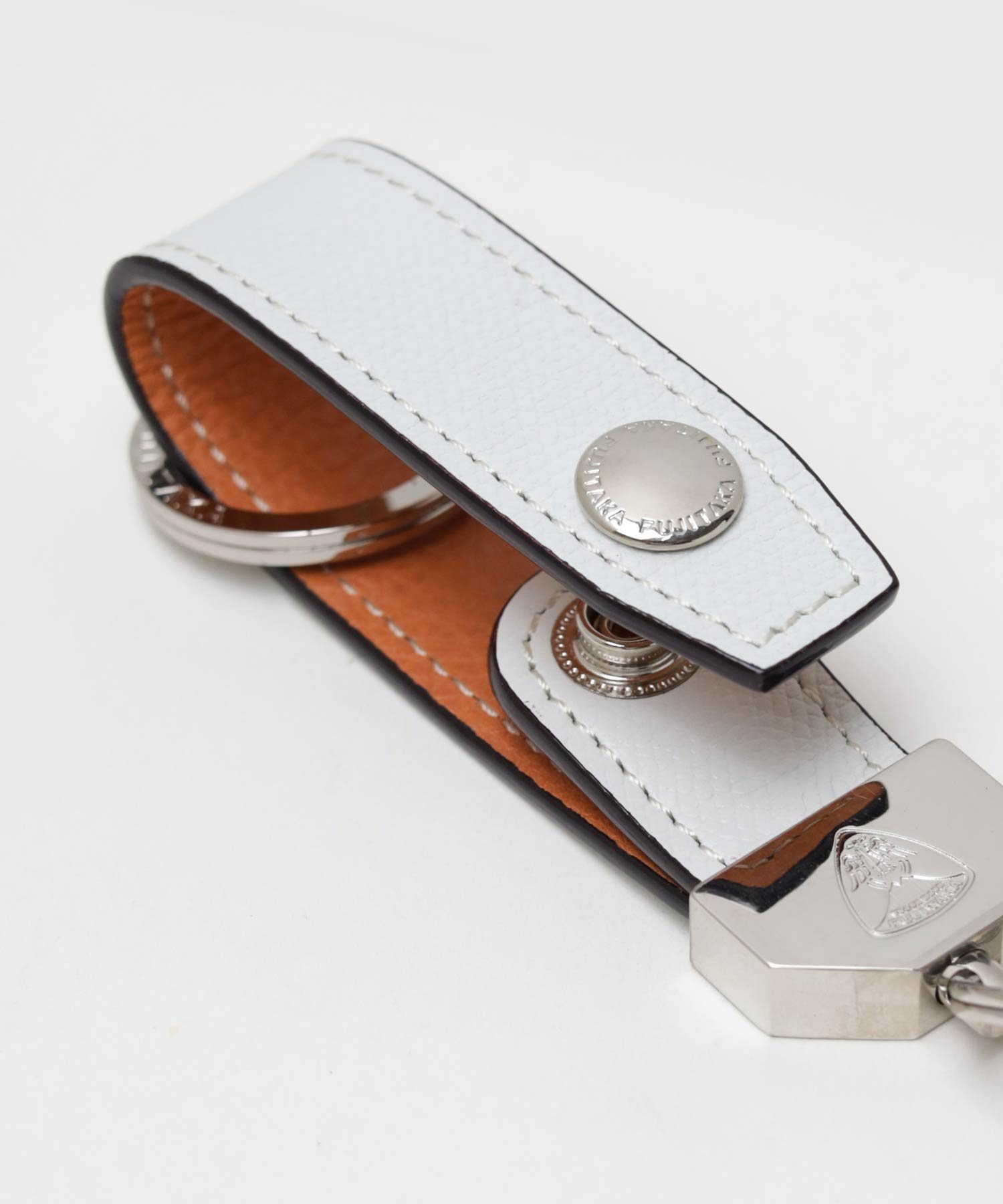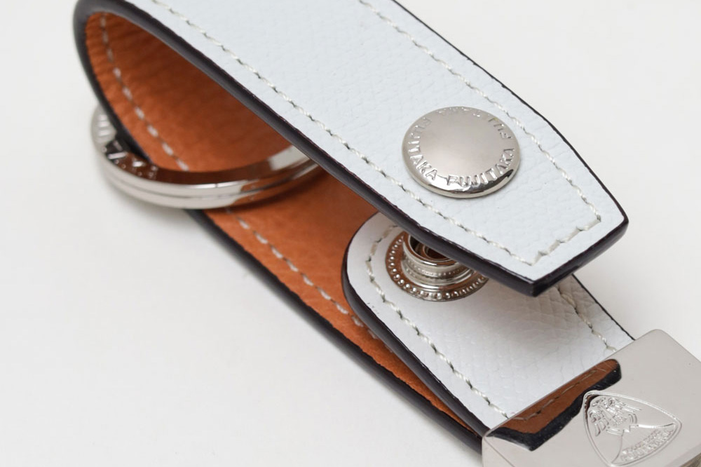 型押しながらもソフトな吟面のタッチ感やもっちりとした風合い、吟浮きが極端に少ない等、丁寧に作り込んだ国内最高峰の型押し素材を使ったFUJITAKAのキーホルダー。