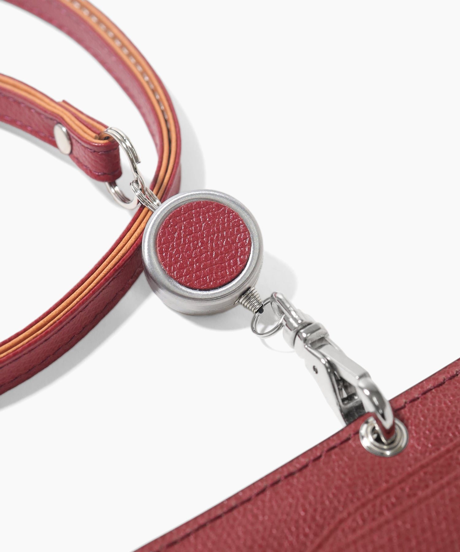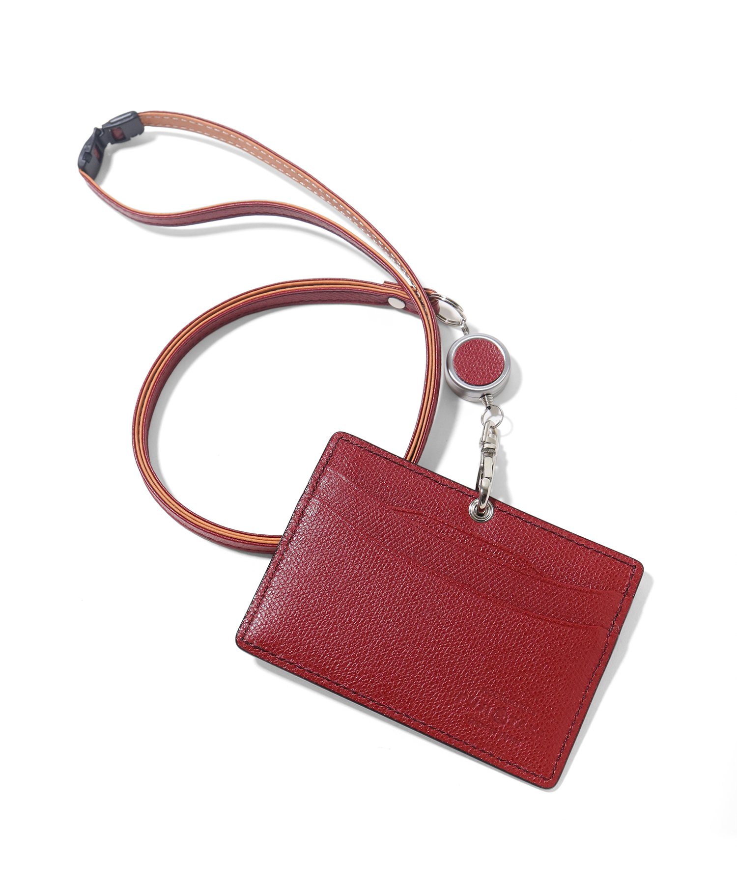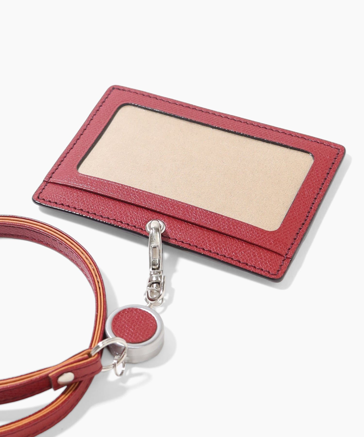 型押しながらもソフトな吟面のタッチ感やもっちりとした風合い、吟浮きが極端に少ない等、丁寧に作り込んだ国内最高峰の型押し素材を使ったFUJITAKAのリール付きIDカードホルダー。