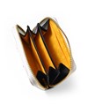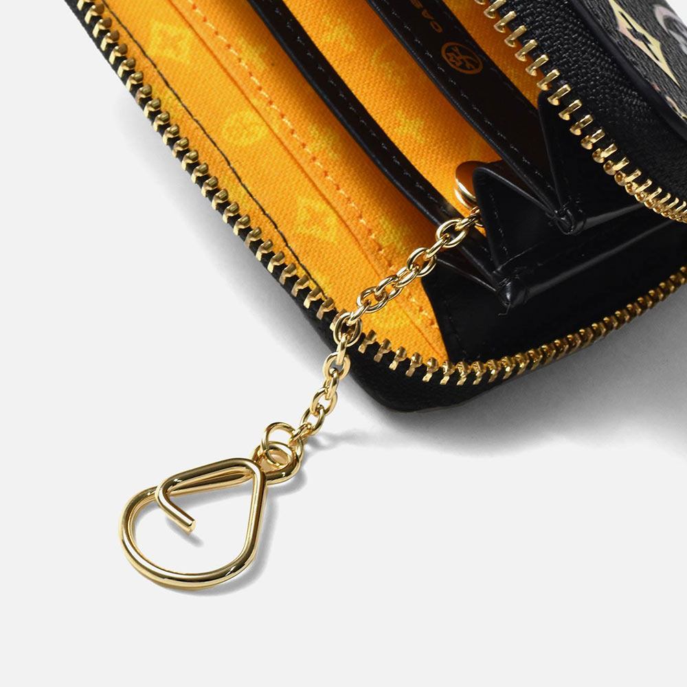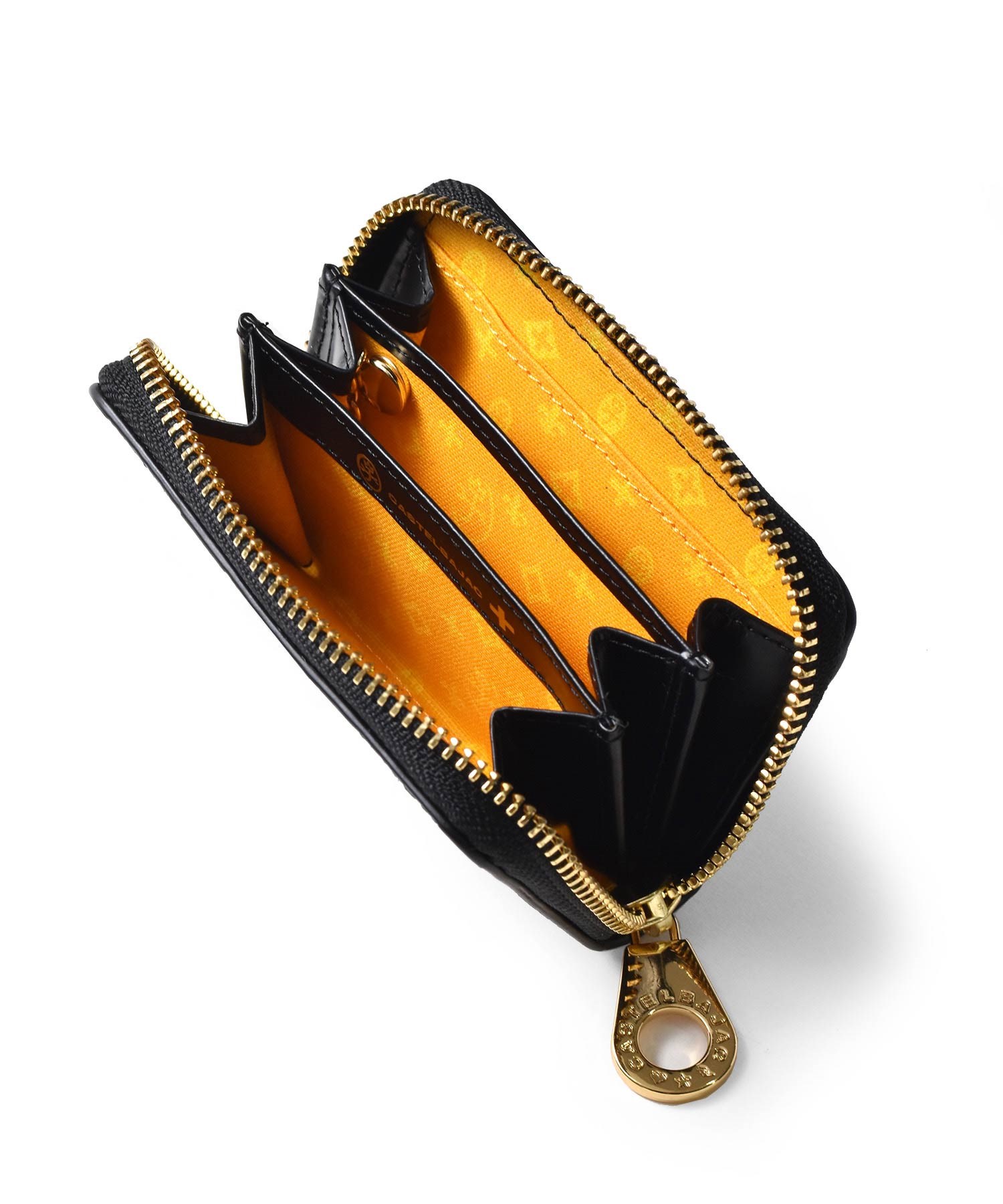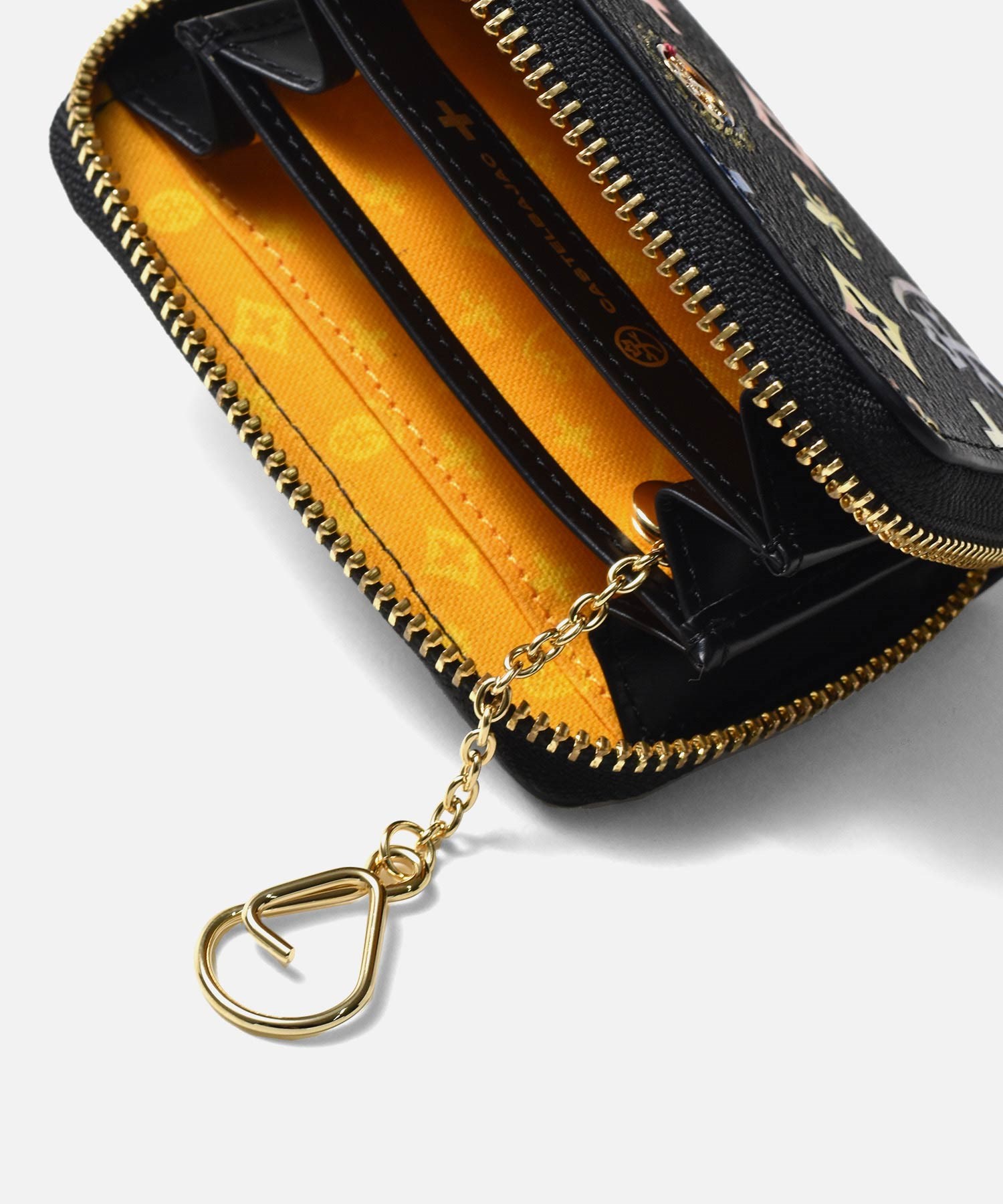 ファスナー式のCASTELBAJACの小銭入れです。開けると硬貨を収納するメインルームは3層に分かれています。内側にはフリーポケットが2つ、キーチェーンが1つあります。キーチェーンはホックで取り外しが可能です。