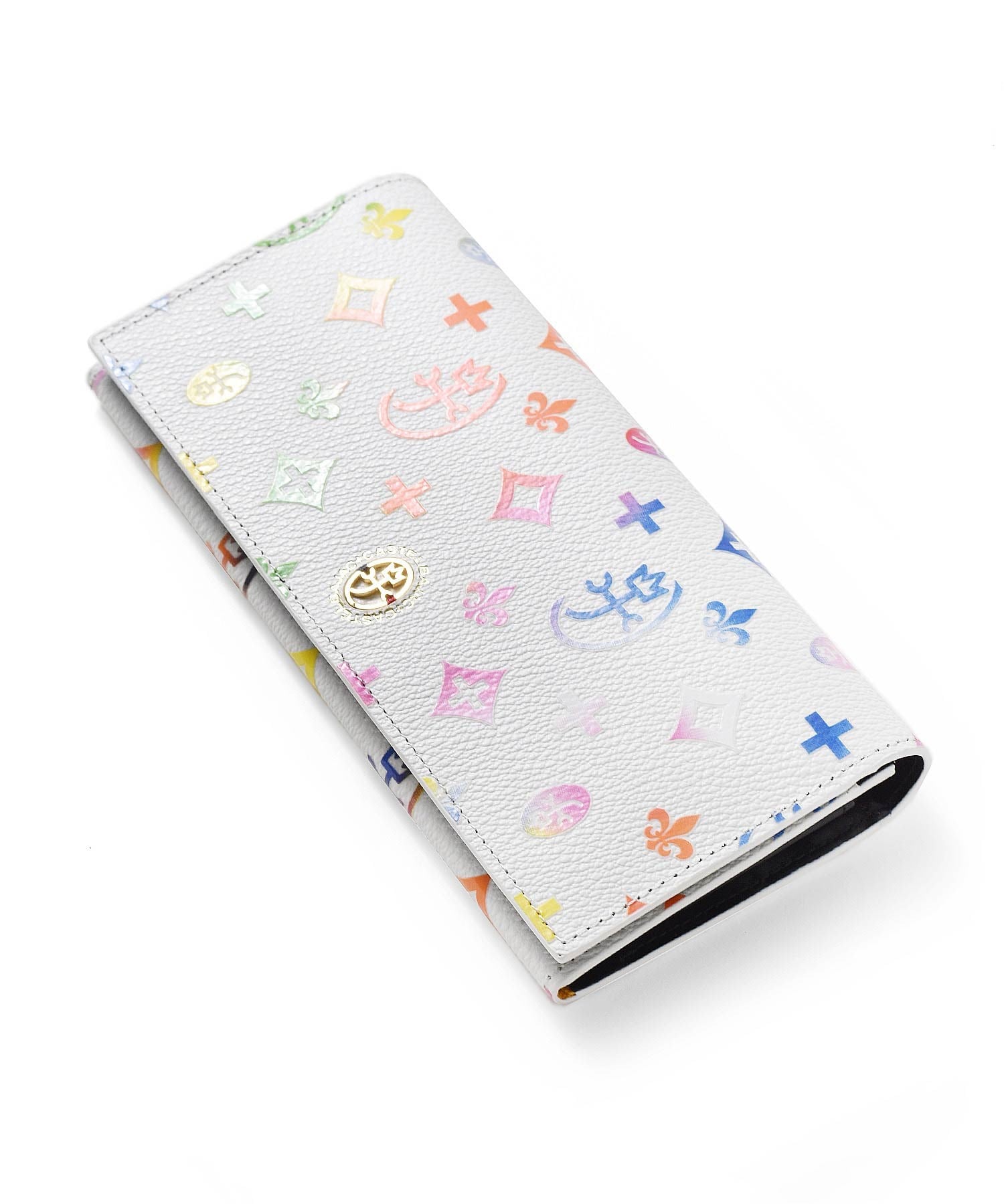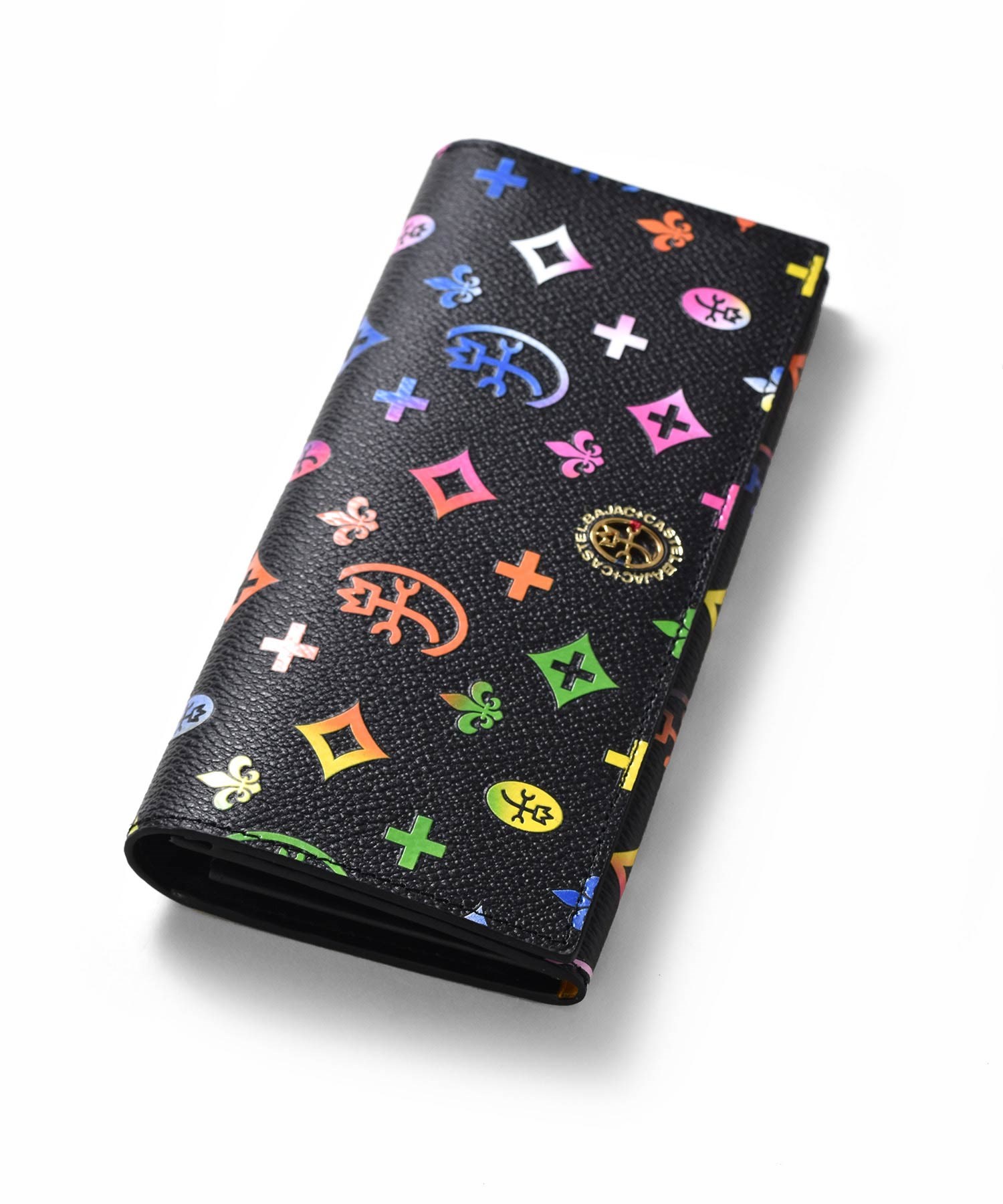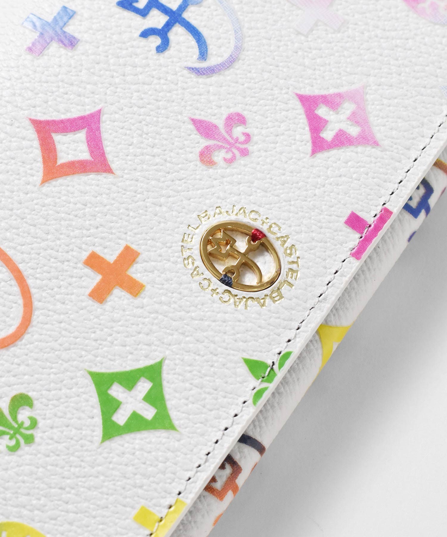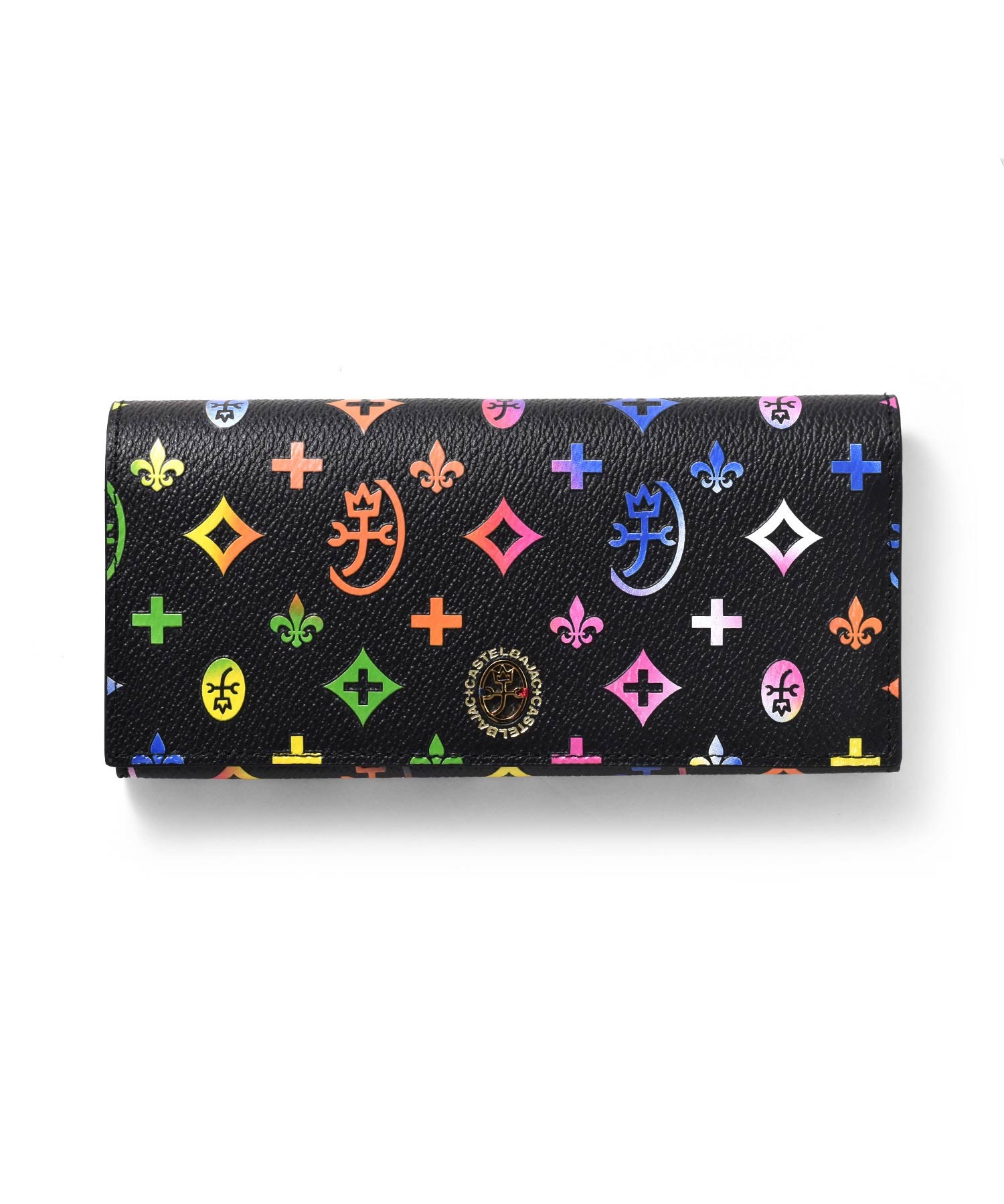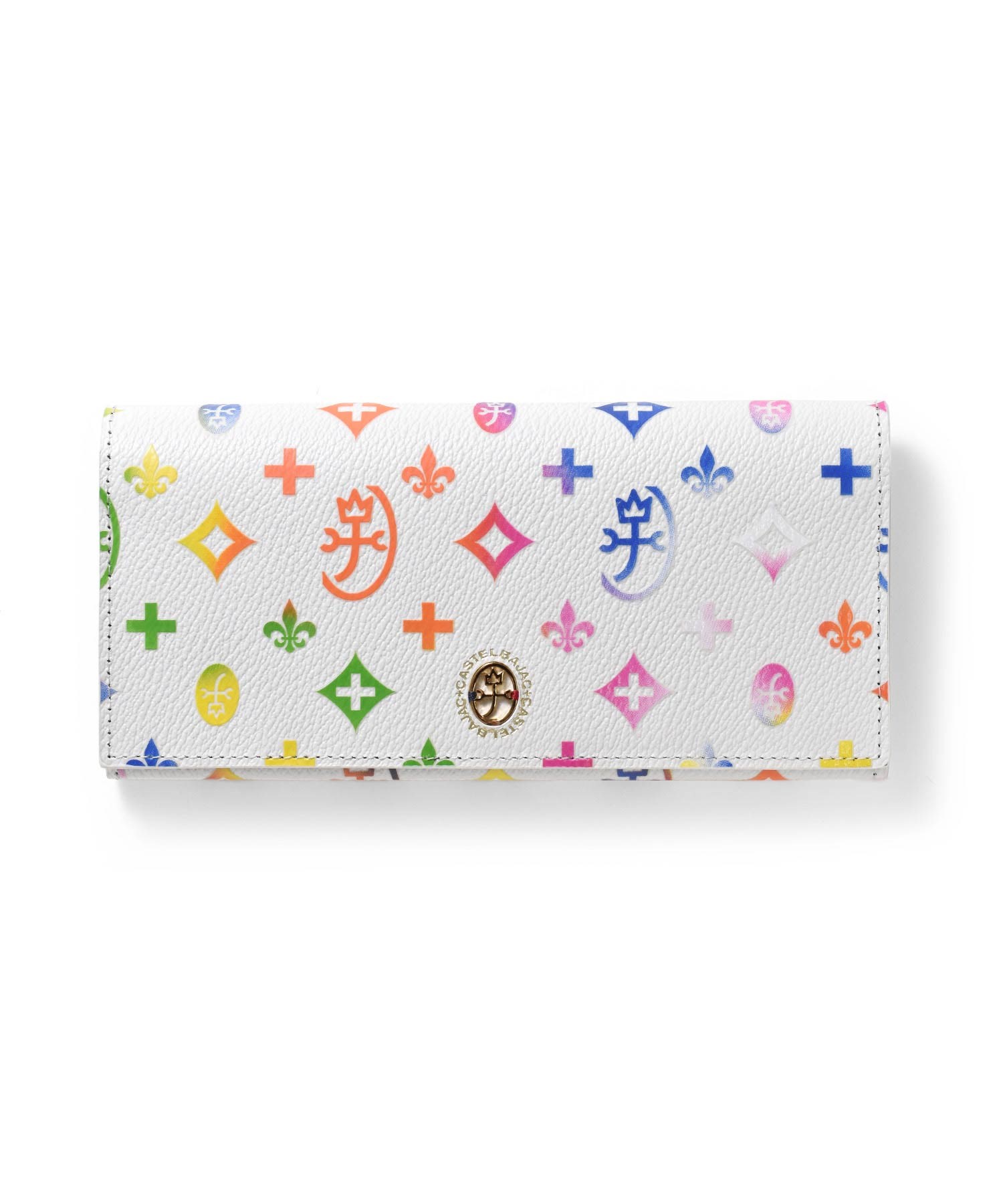 グラデーション柄でモノグラム柄をプリントした、カステルバジャックのかぶせタイプの長財布。ポイントにゴールド金具をあわせて高級感ある仕上がりとなっています。カラーはクロとシロの2色展開。ベーシックカラーに映える鮮やかなグラデーションカラーをお楽しみいただけます。
