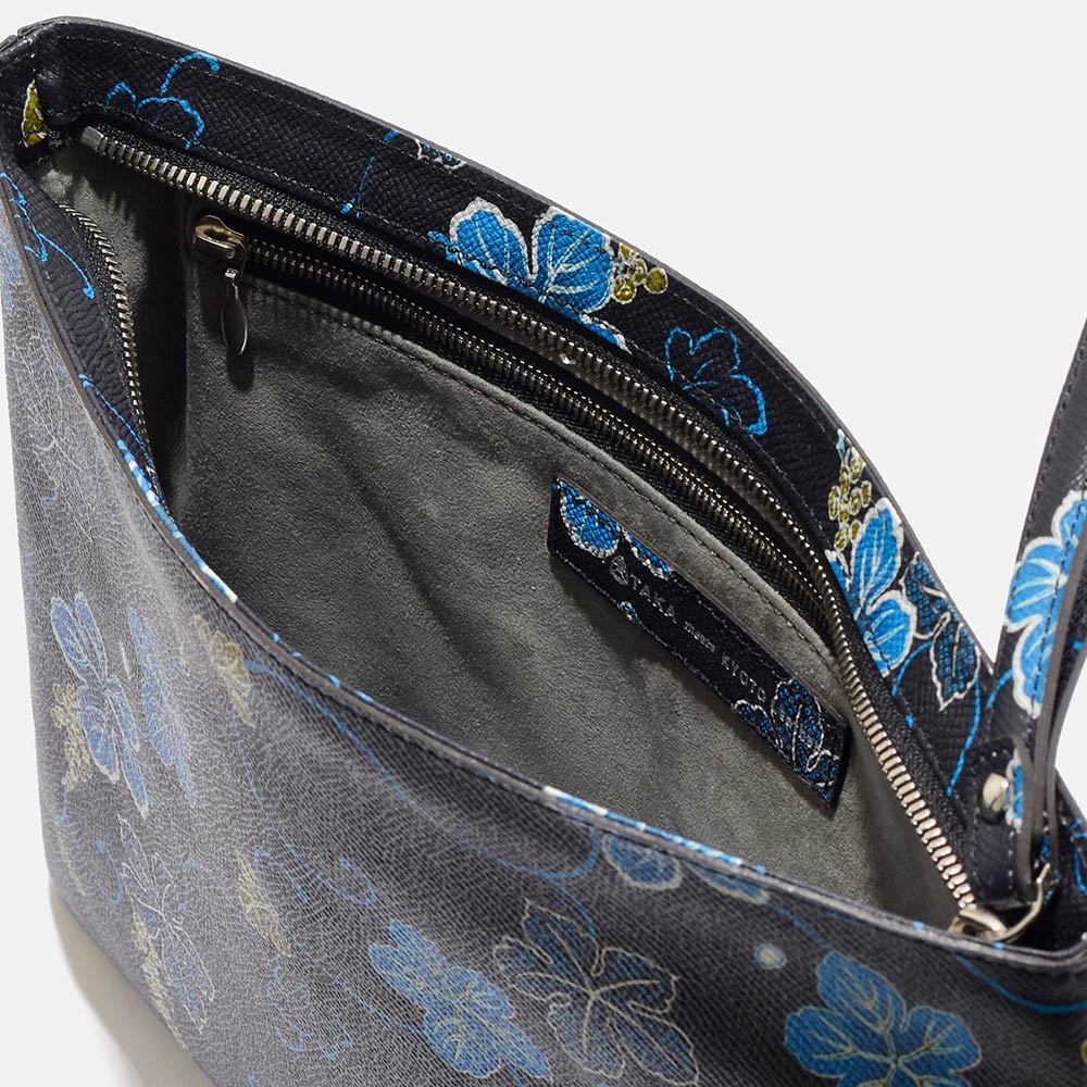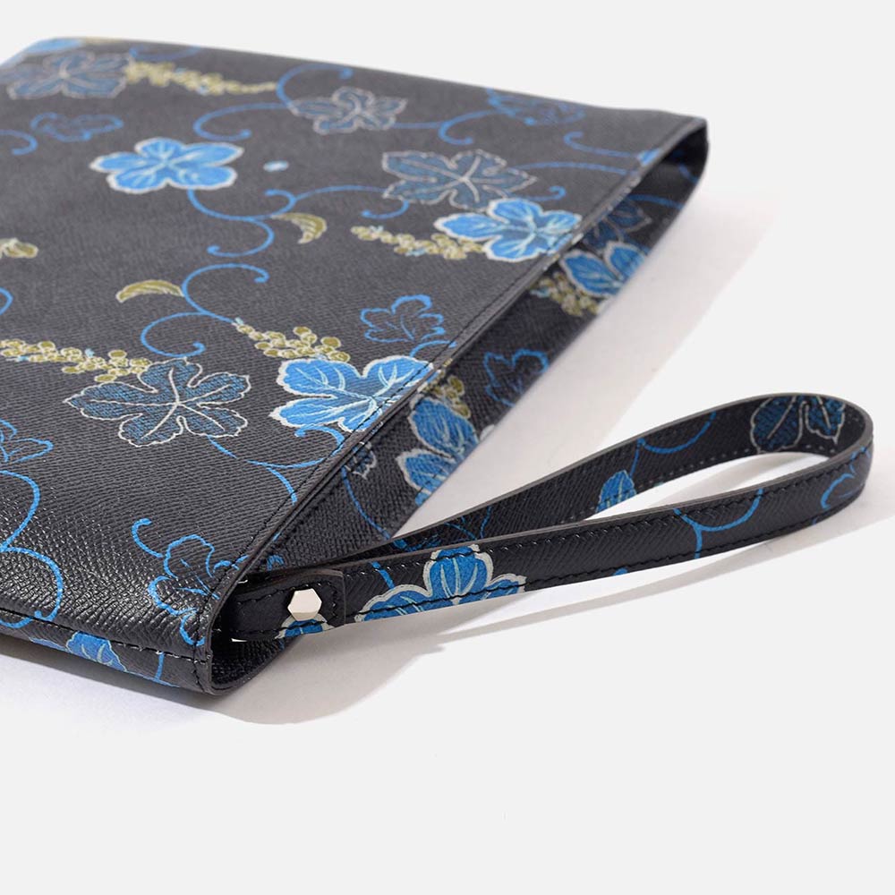 長い時の中で培われた日本人の持つ美的センス、そして伝統の持つ洗練された美しさを、歴史ある柄を手作業で絵付けしたレザーを使い、現代の日本人に身近に寄り添ったクラッチバッグというかたちで表現いたしました。