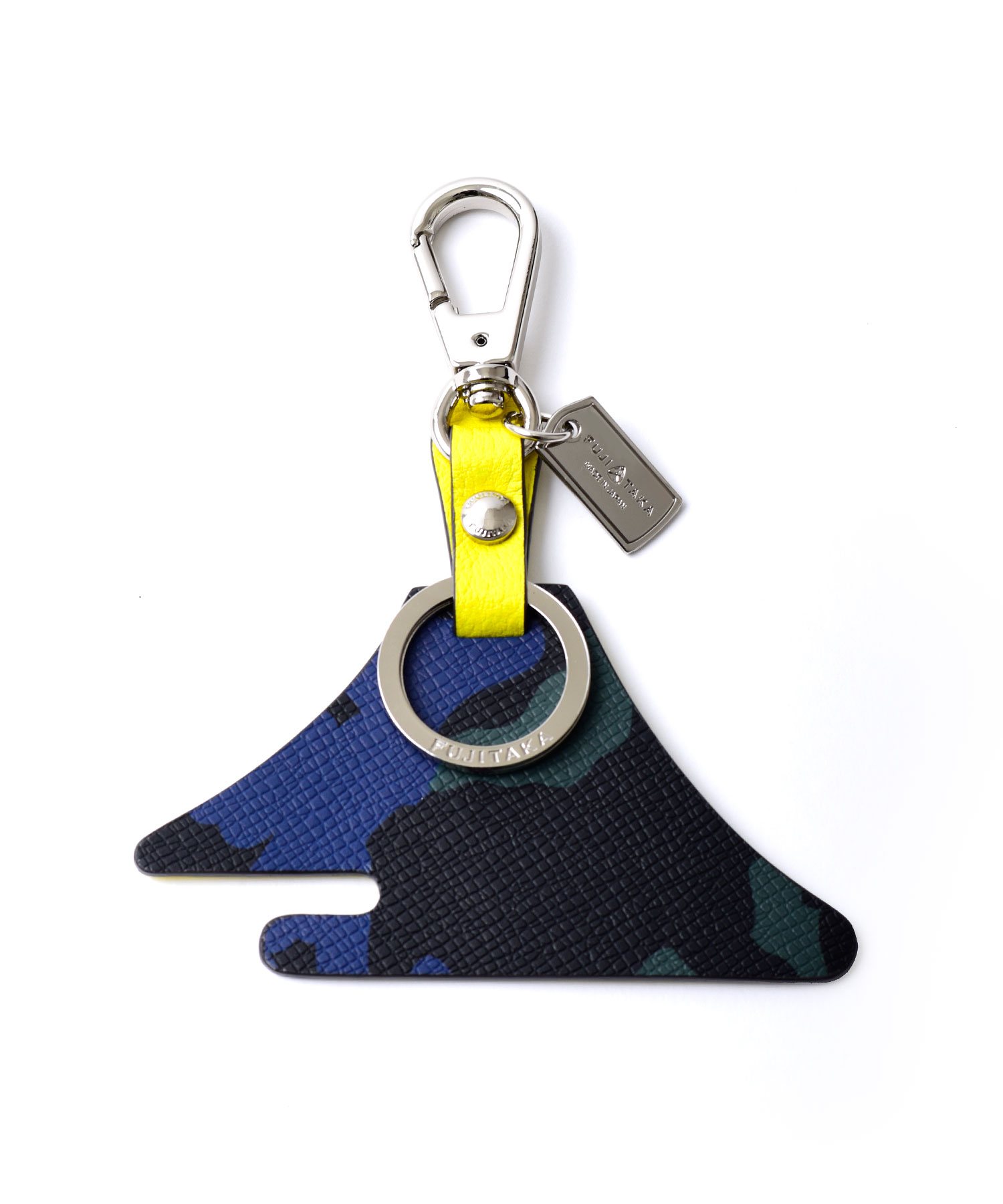 牛革にカモフラージュ柄をプリントした、個性引き立つフジタカのキーホルダー。ブランドオリジナルの紋章をモチーフにしています。一枚ずつ丁寧にプリントしている為、1つ1つ表情が違うところも魅力です。