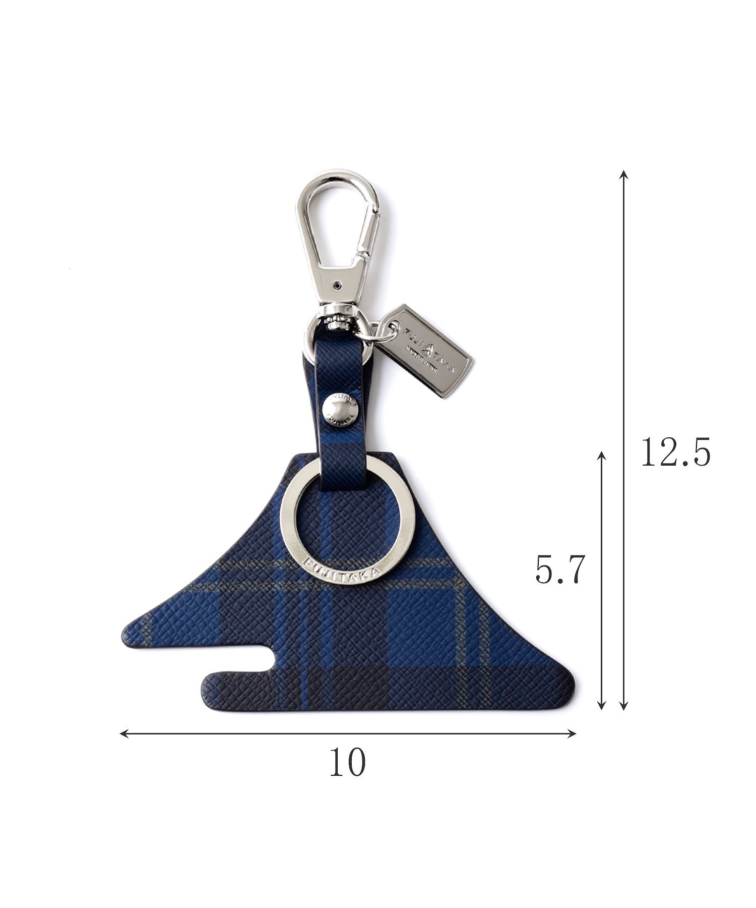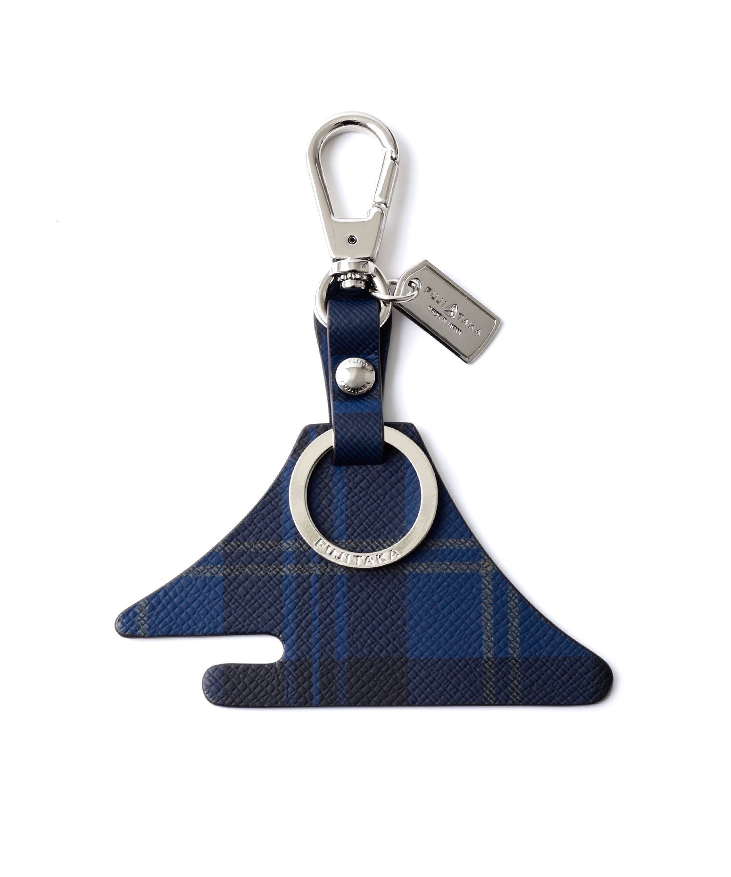 豚革にチェック柄をプリントした、高級感あふれるフジタカのキーホルダー。ブランドオリジナルの紋章をモチーフにしています。一枚ずつ丁寧にプリントしている為、1つ1つ表情が違うところも魅力です。