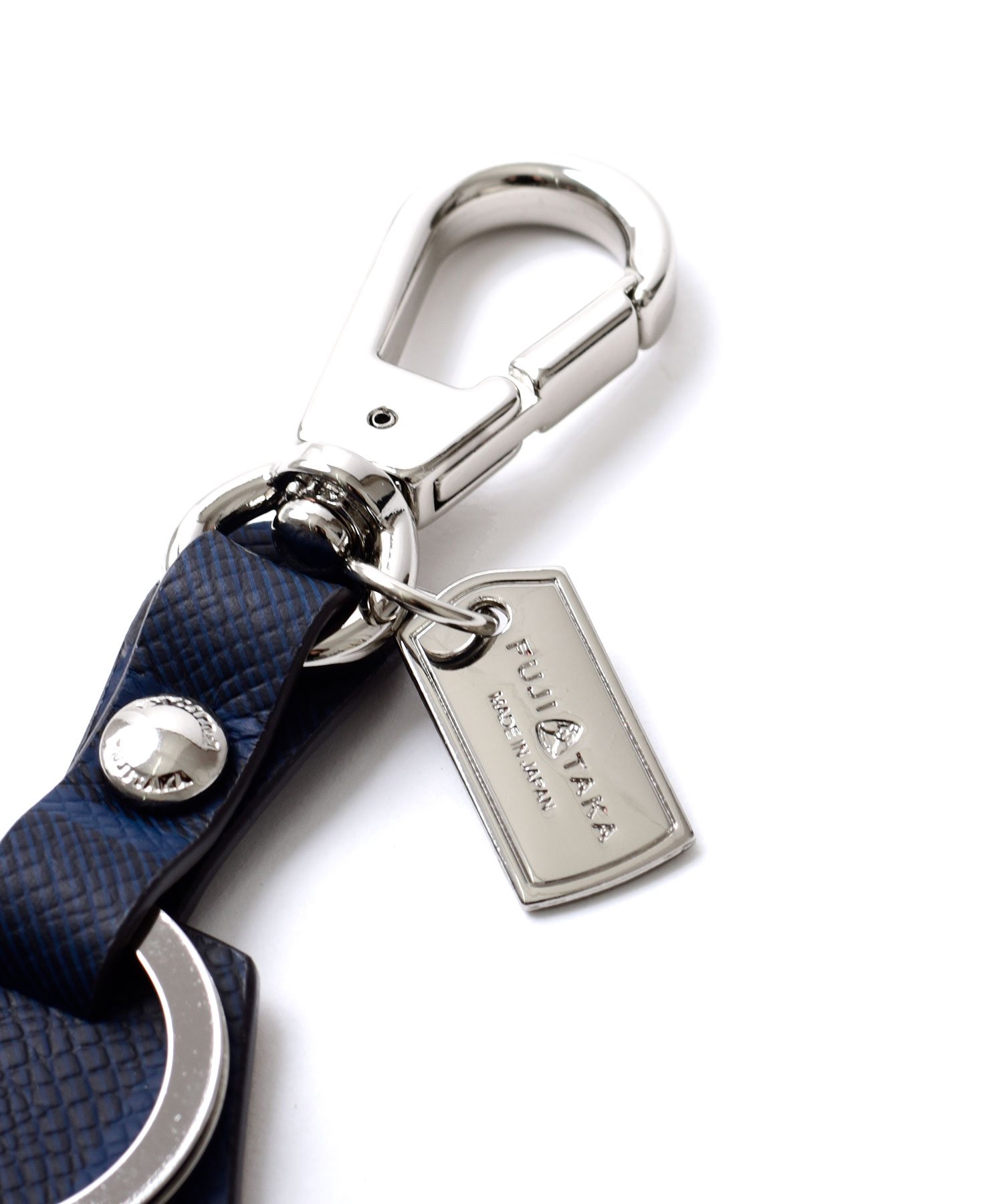 ブランドオリジナルの紋章である【富士山】をかたどった、フジタカのキーホルダー。シンプルで上品な型押しを施し、高級感のある仕上がりになっています。表裏で違ったカラーを楽しめるのもポイント。二重リングとナスカンが付いているので様々な場所に付けていただけます。