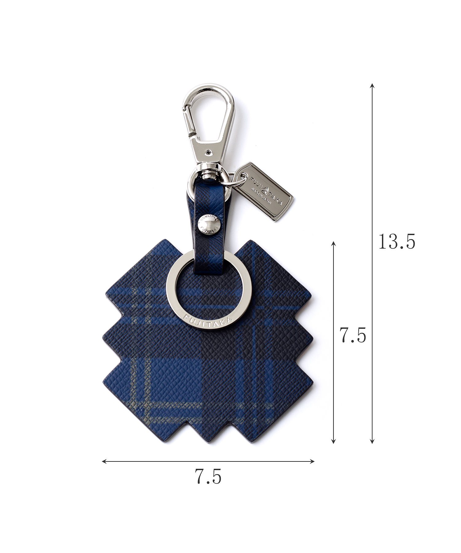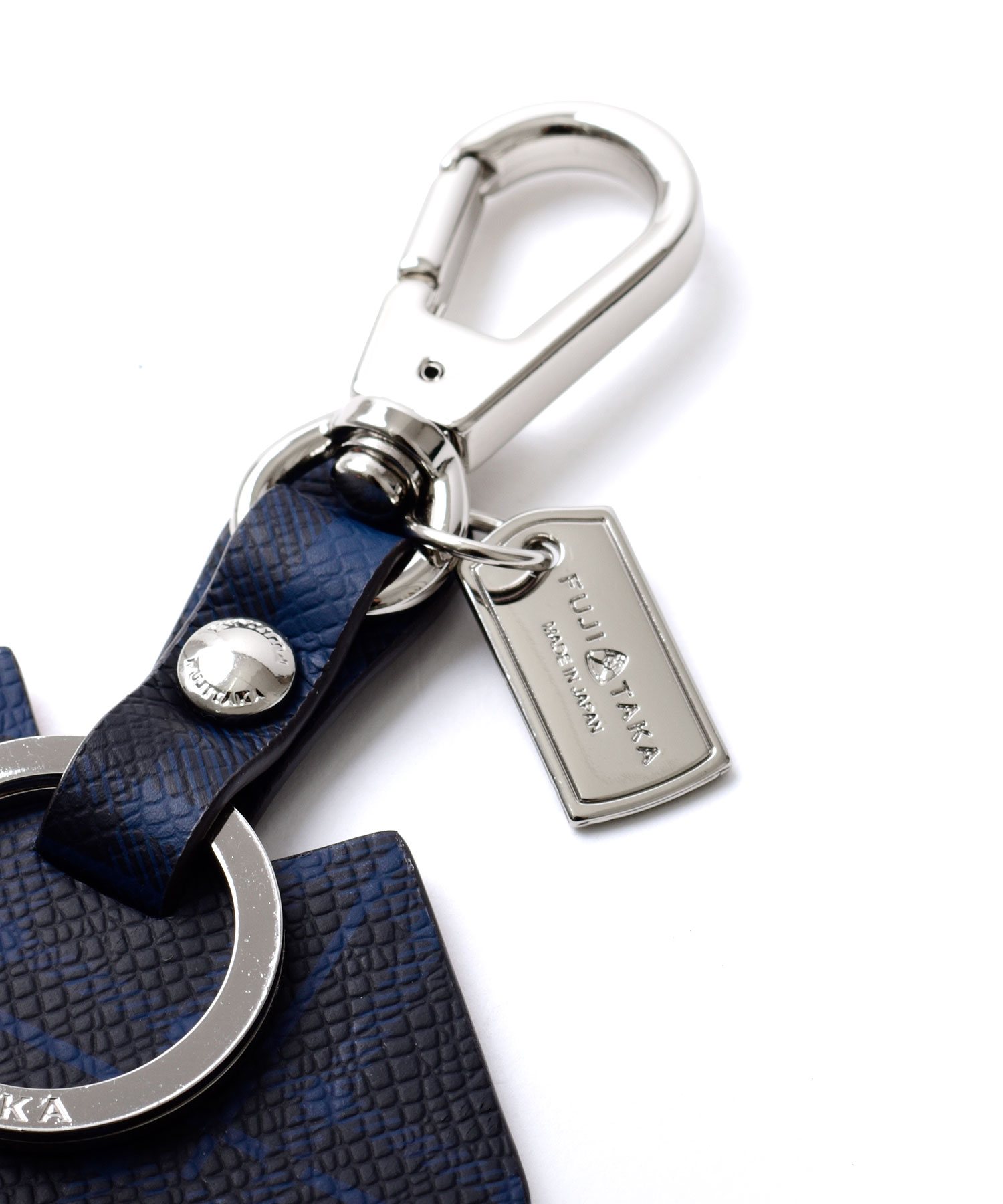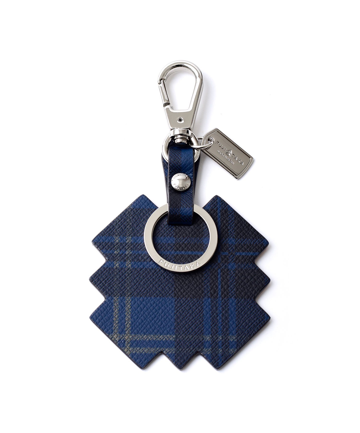 豚革にチェック柄をプリントした、高級感あふれるフジタカのキーホルダー。ブランドオリジナルの紋章をモチーフにしています。一枚ずつ丁寧にプリントしている為、1つ1つ表情が違うところも魅力です。