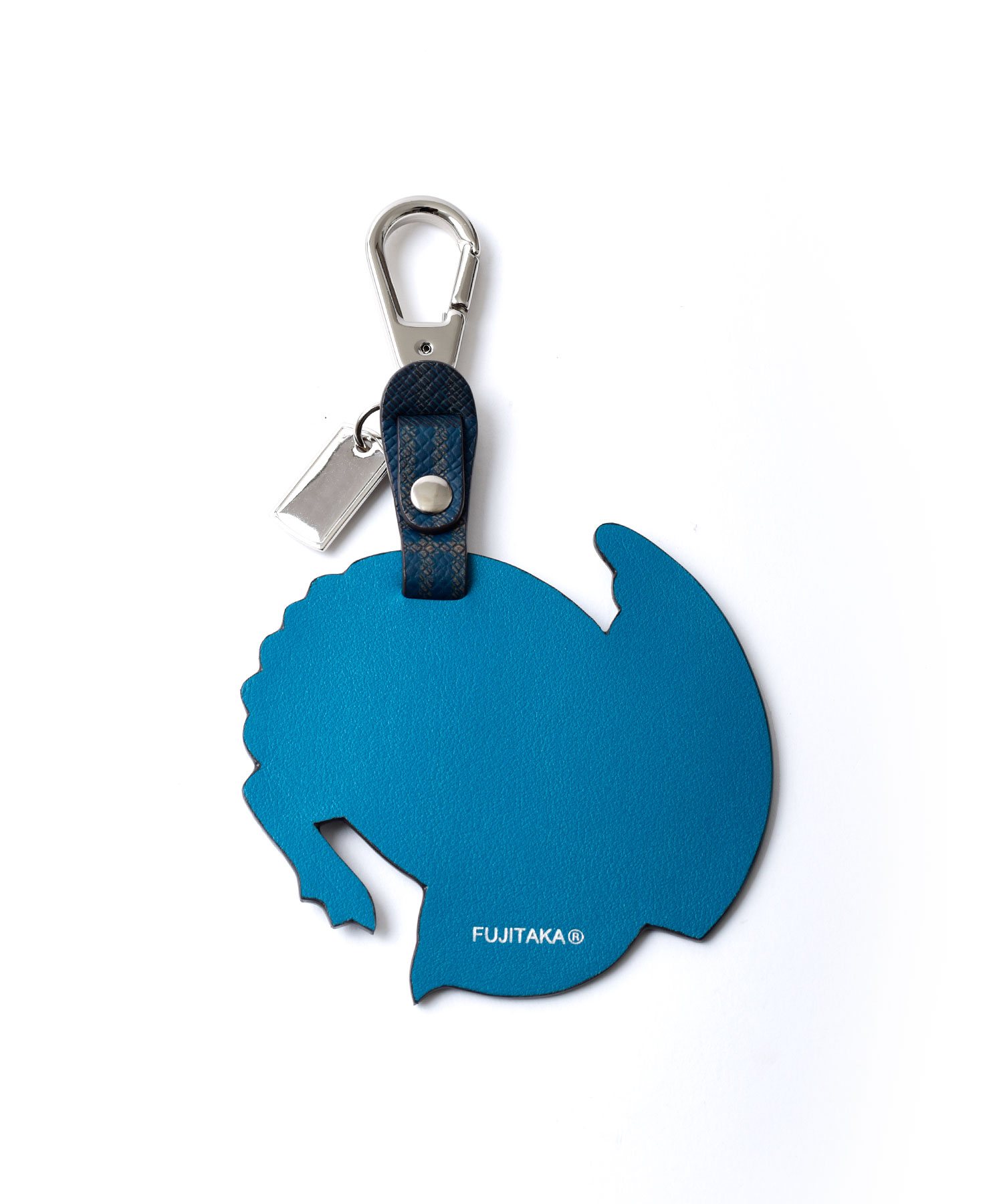 ブランドオリジナルの紋章である【鷹】をかたどった、フジタカのキーホルダー。シンプルで上品な型押しを施し、高級感のある仕上がりになっています。表裏で違ったカラーを楽しめるのもポイント。二重リングとナスカンが付いているので様々な場所に付けていただけます。