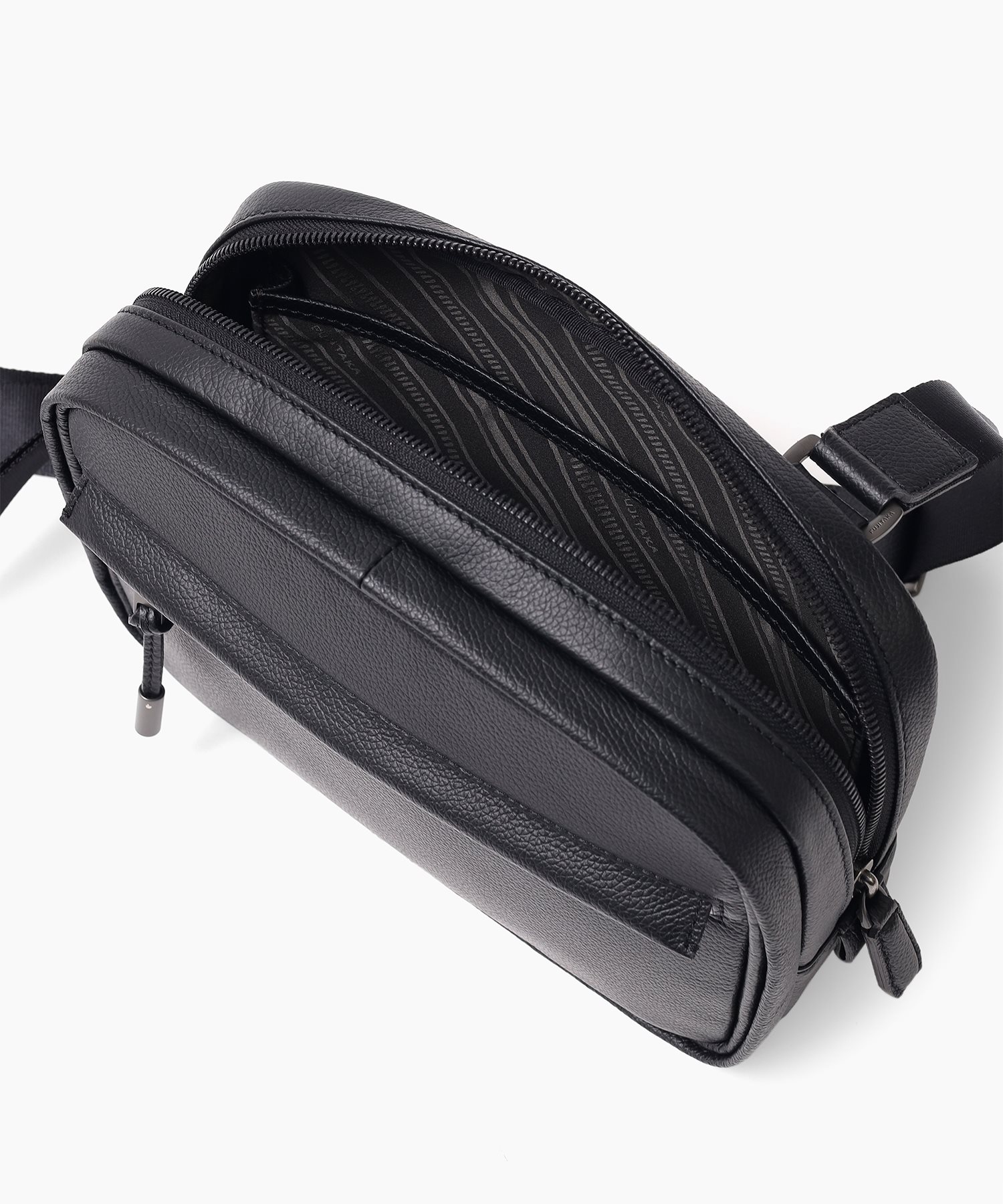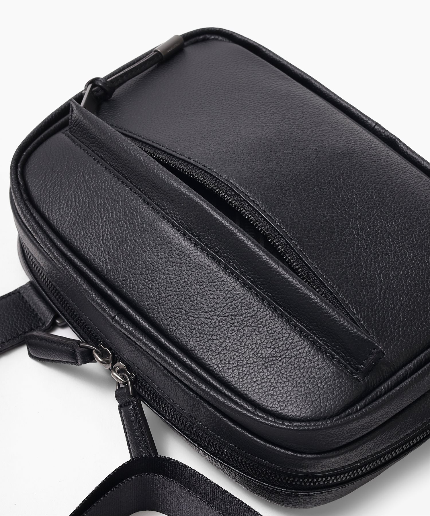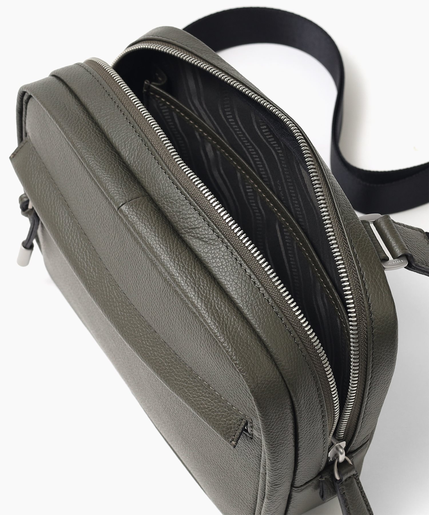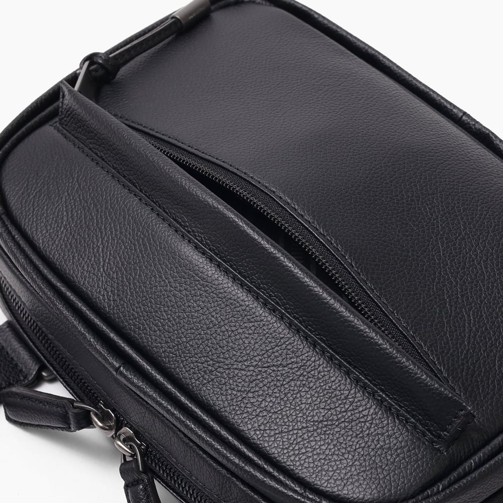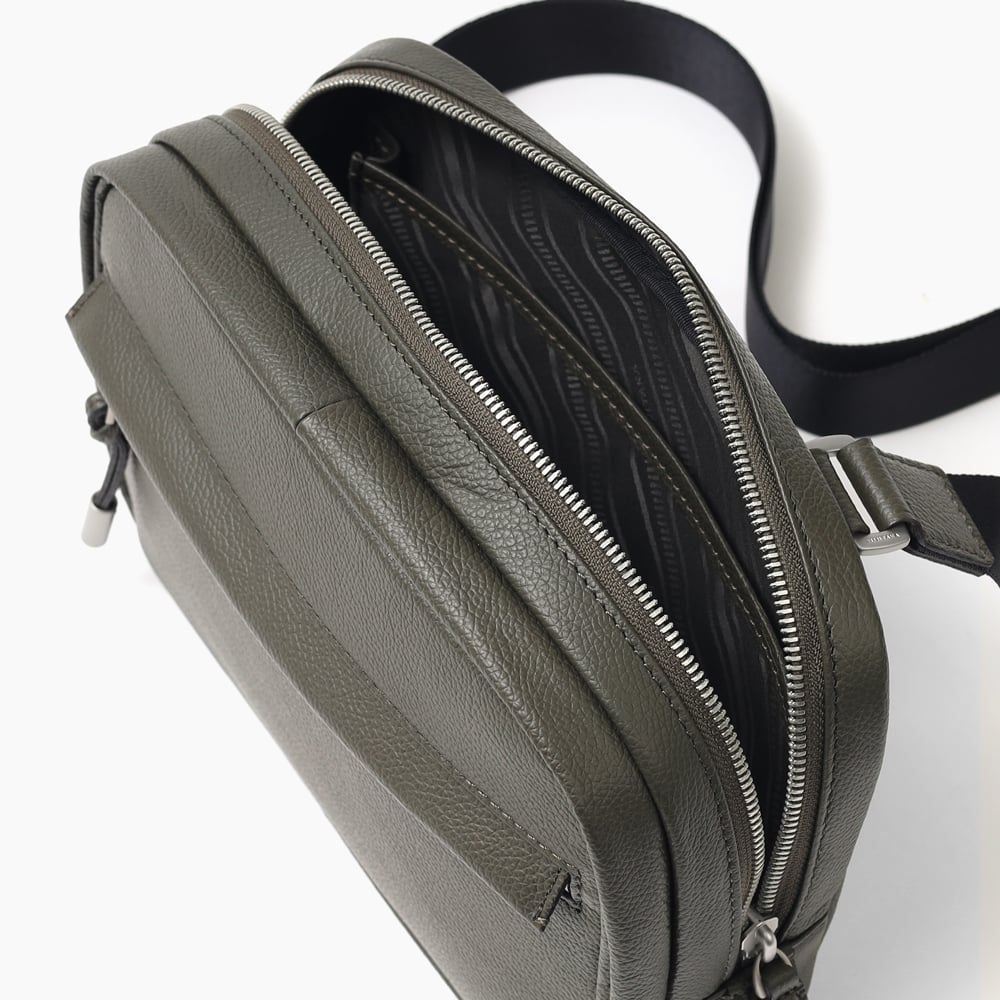 デバイスの収納に適したフジタカのコンパクトサイズのレザースリングバッグ。メインルームにはミニタブレット用のポケットを備えており、コンパクトながらも500mlのペットボトルも収納可能です。マットな仕上げの柔らかい手触りが印象的で、高スペックながらやさしいクラス感のある雰囲気を醸し出しています。