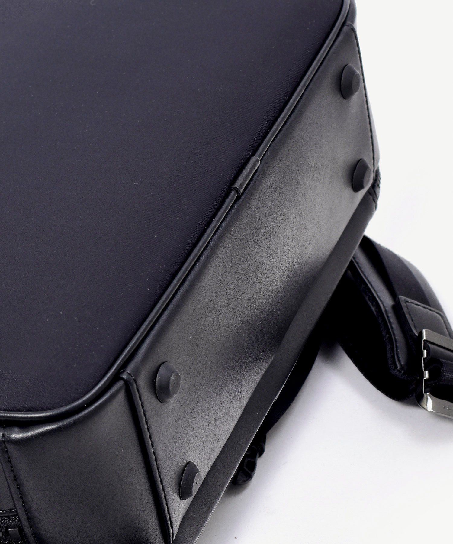 鞄正面のファスナーより上部とハンドル部分に使われている付属革はスコッチガード撥水加工が施されています。
