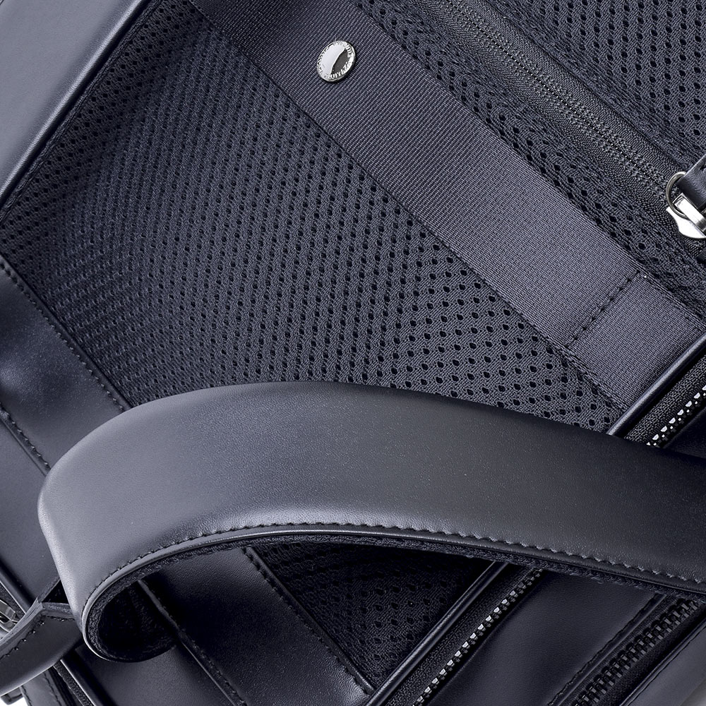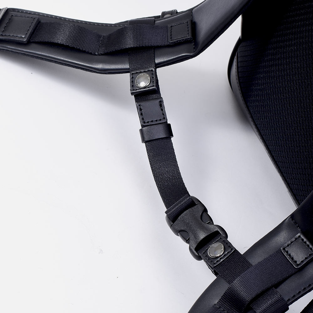 また、背面の素材には蒸れにくいメッシュ素材を使い掛け心地を向上、さらに貴重品の収納に最適なファスナーポケットを設けています。
