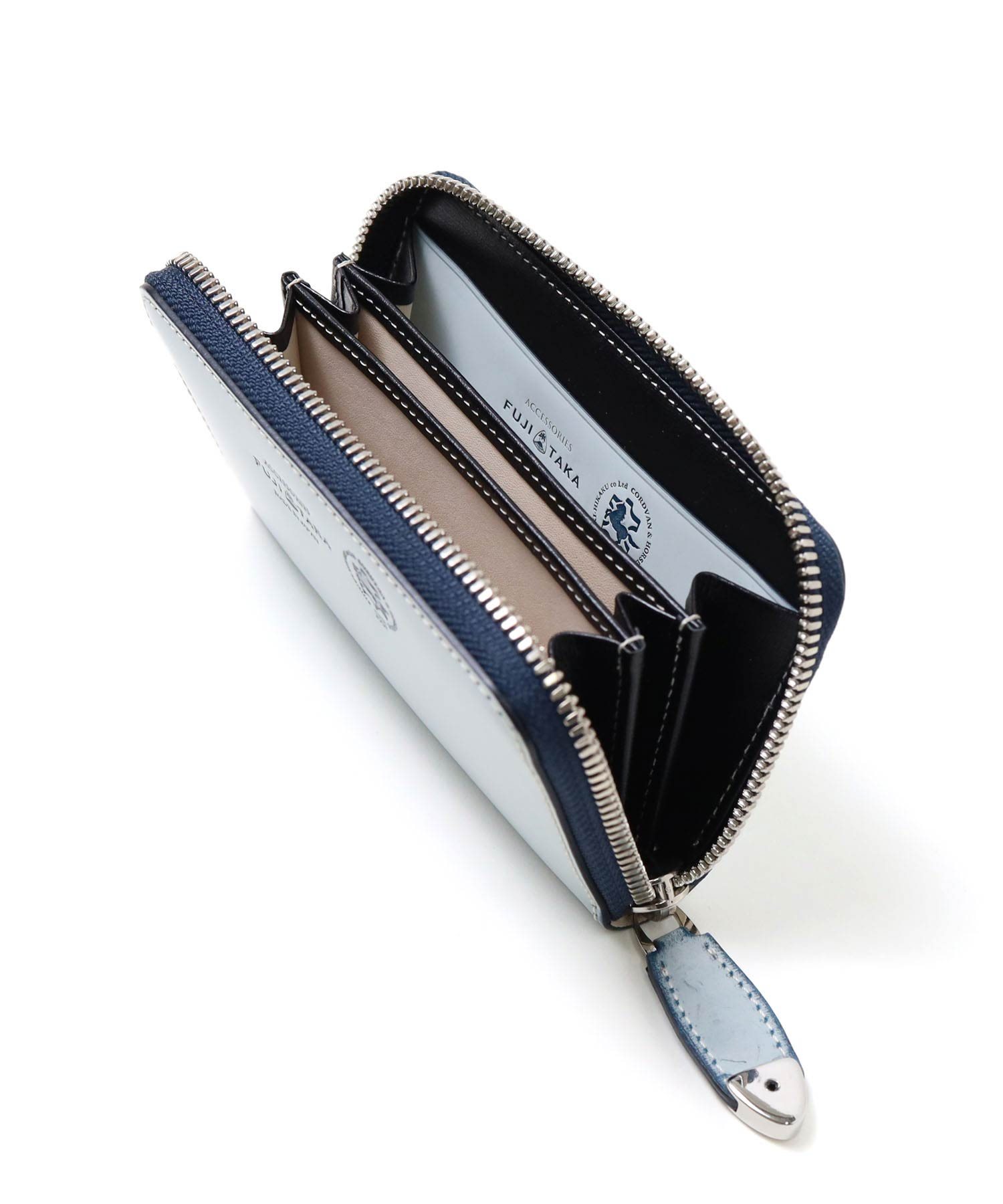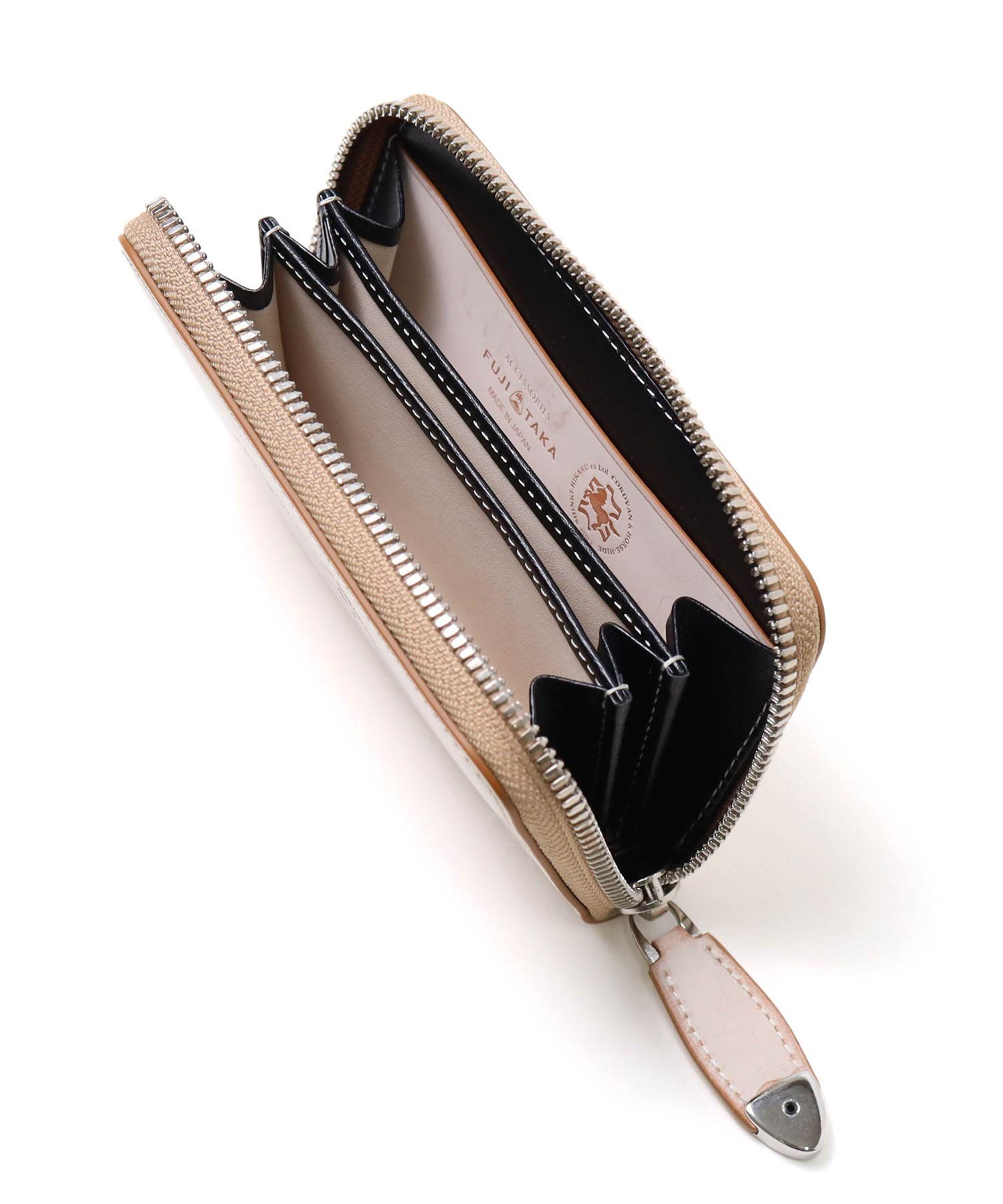 より自分で育てることを楽しんでいただくために、「ホワイトワックス」で仕上げたカラーコードバン財布をお作りしました。