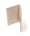 表面は、ホワイトワックスにより白くスムースな状態になっています。ワックスを吹き付けただけの状態なのでとてもデリケートにできており、少し爪を立てただけでワックスがとれ、傷のように見えてしまいます。深くひっかけばひっかくほど、ワックスを貫通し革本体が削れてしまう場合もあり、磨き続けても傷っぽく残ってしまいます。さらに水に大変弱く、すぐに拭き取っても水ぶくれのようになってしまうほどかなりデリケートにできています。
